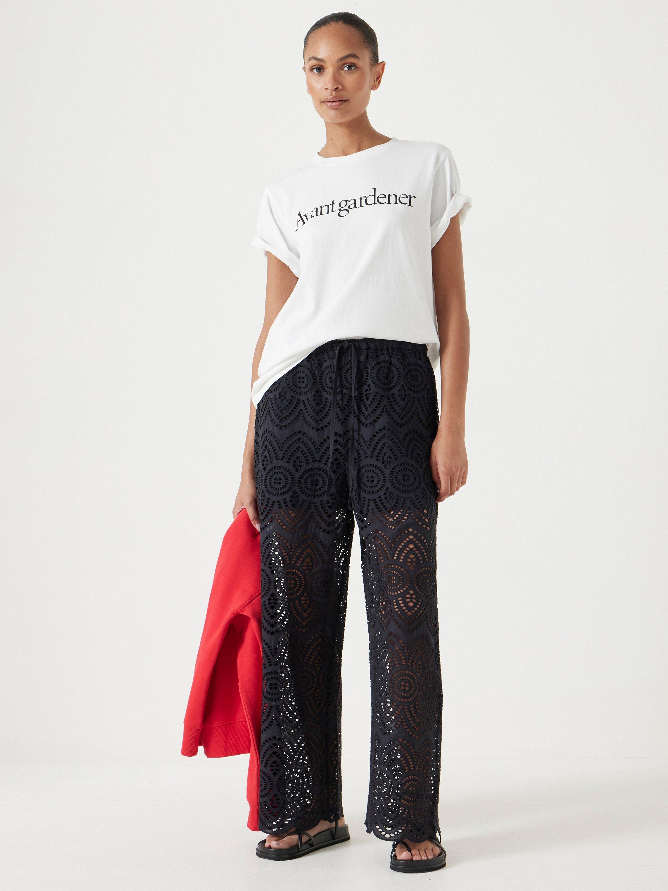 HUSH has used the classic cut-out pattern on these wide-leg trousers, which are also made from soft cotton to keep things extra breathable. Scalloped detailing at the hem adds a unique finishing touch.