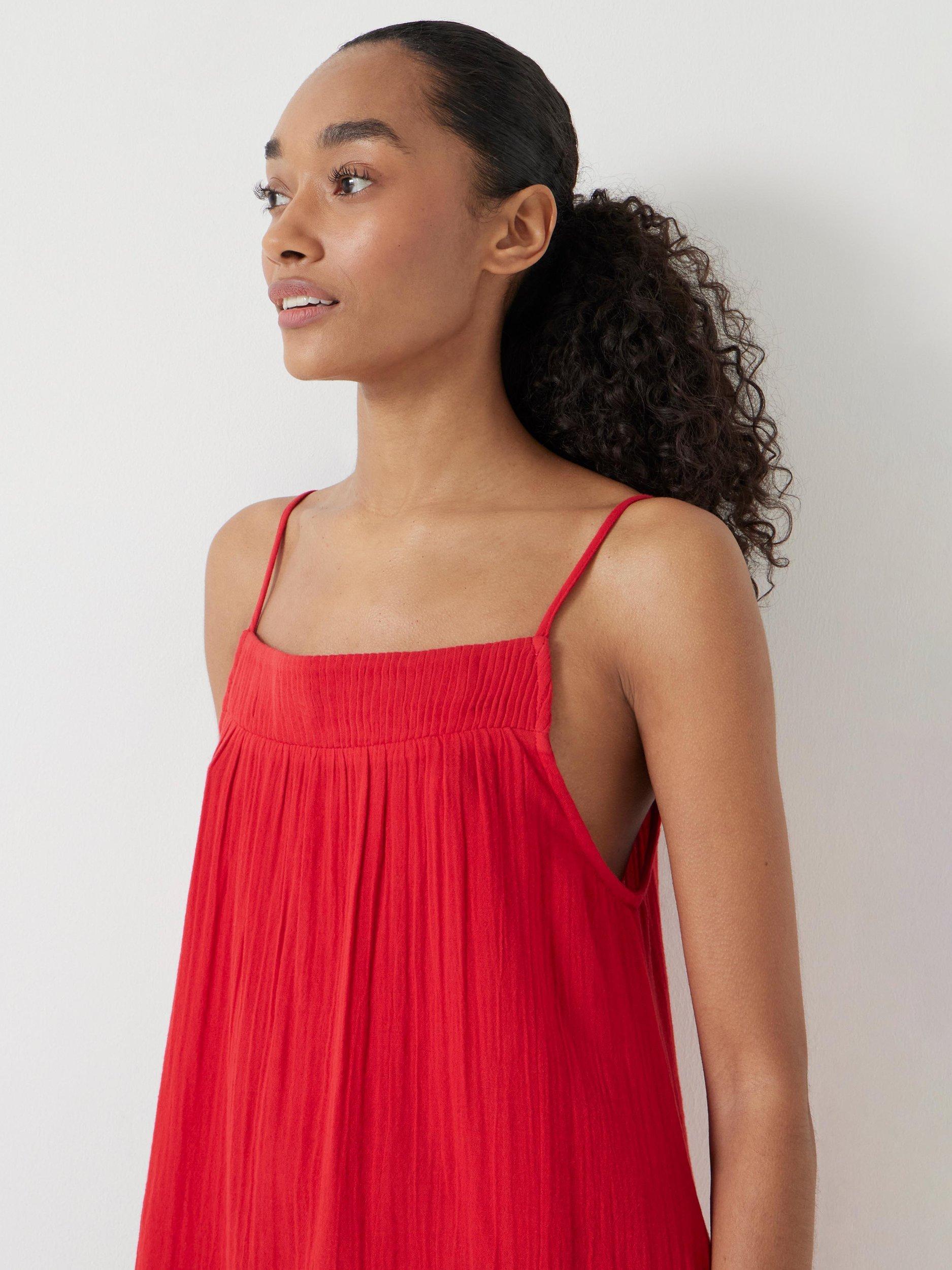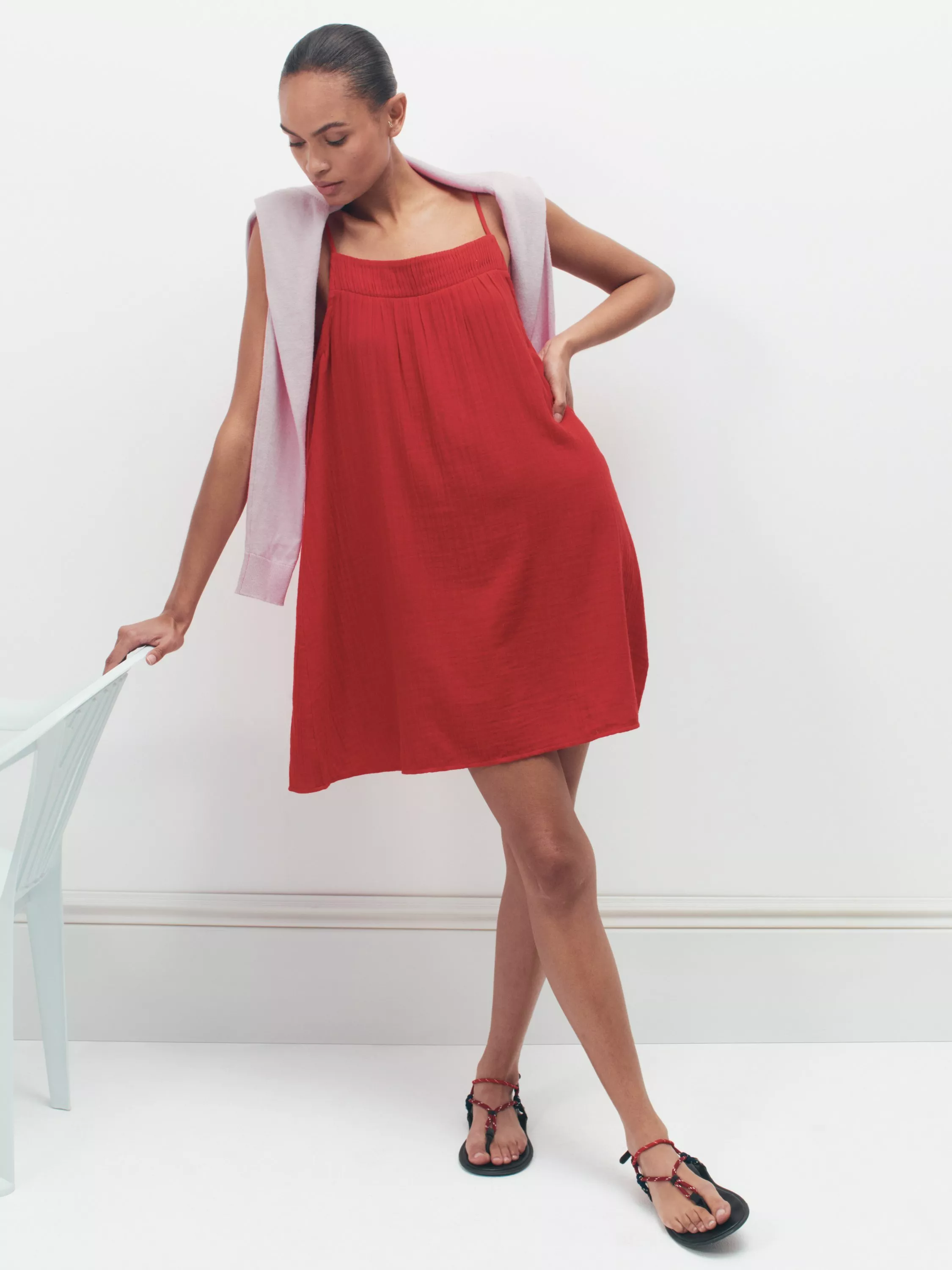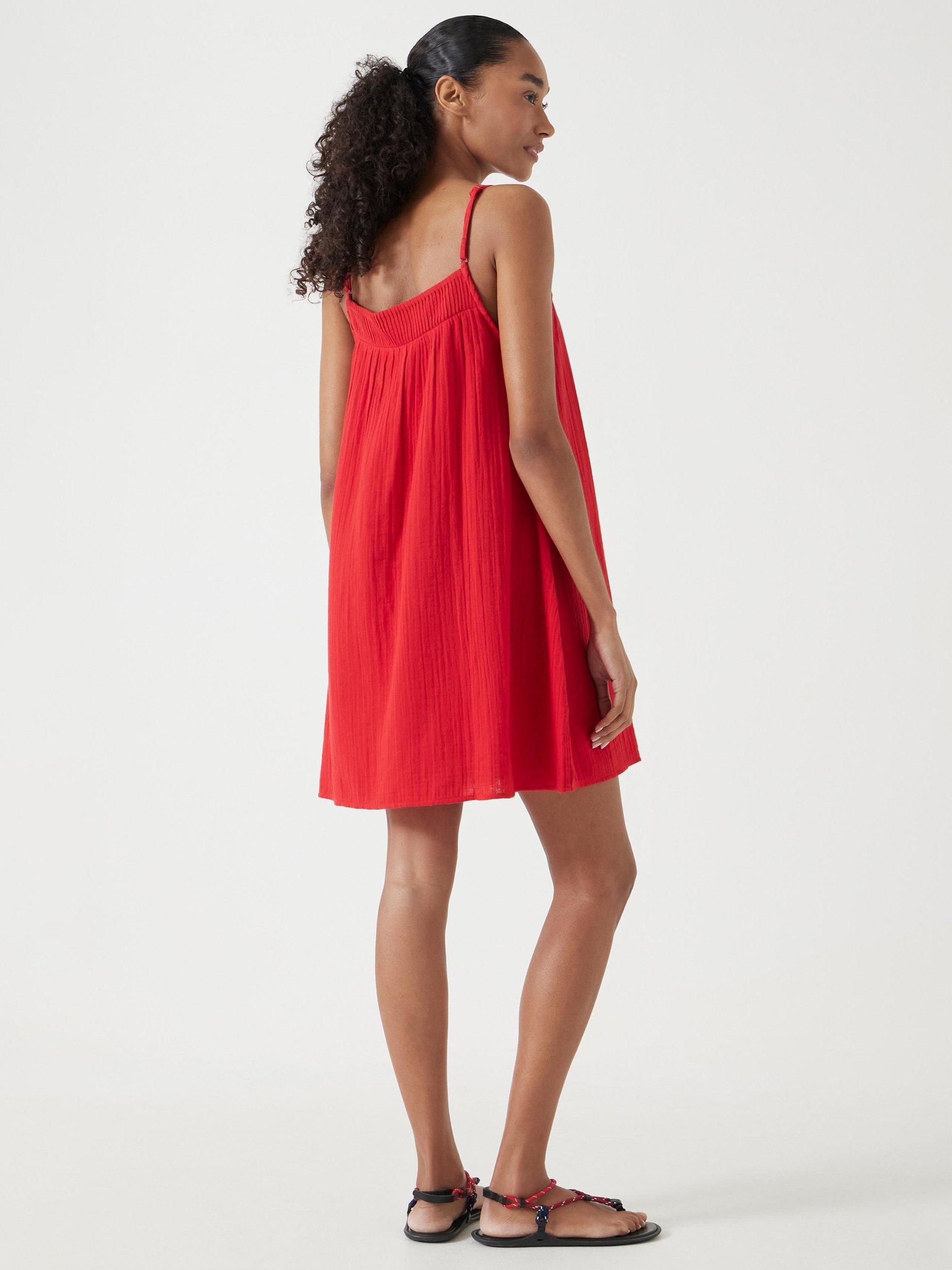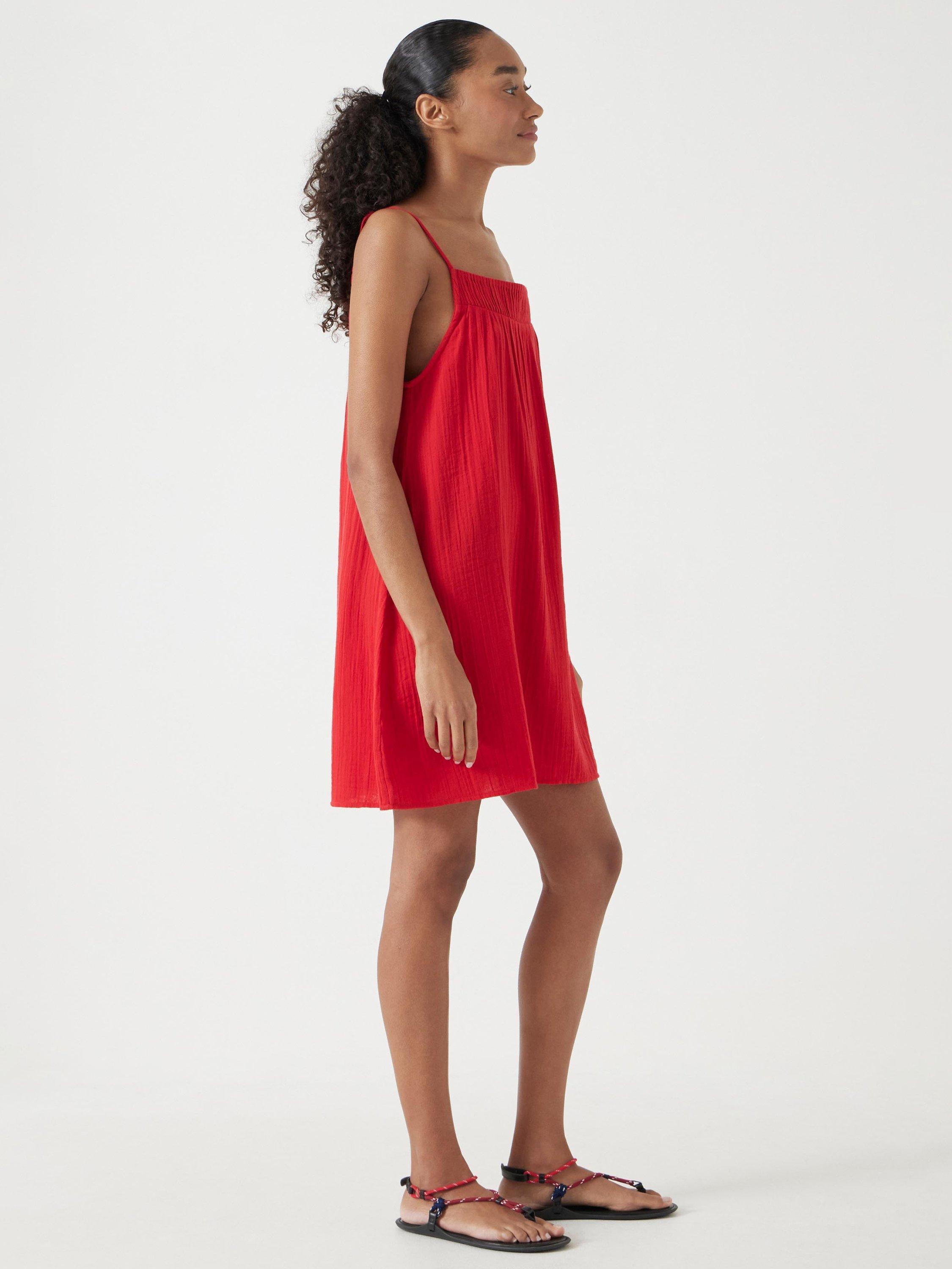 How to still look chic when it's baking hot outside? Wear Cali - the mini we pull on when we'd really rather be wearing nothing. It's woven from crease-resistant gauzy cotton in an airy shape, meaning it's perfect for keeping us cool when the sun is beating down, and we've added a pleated band to the neckline.