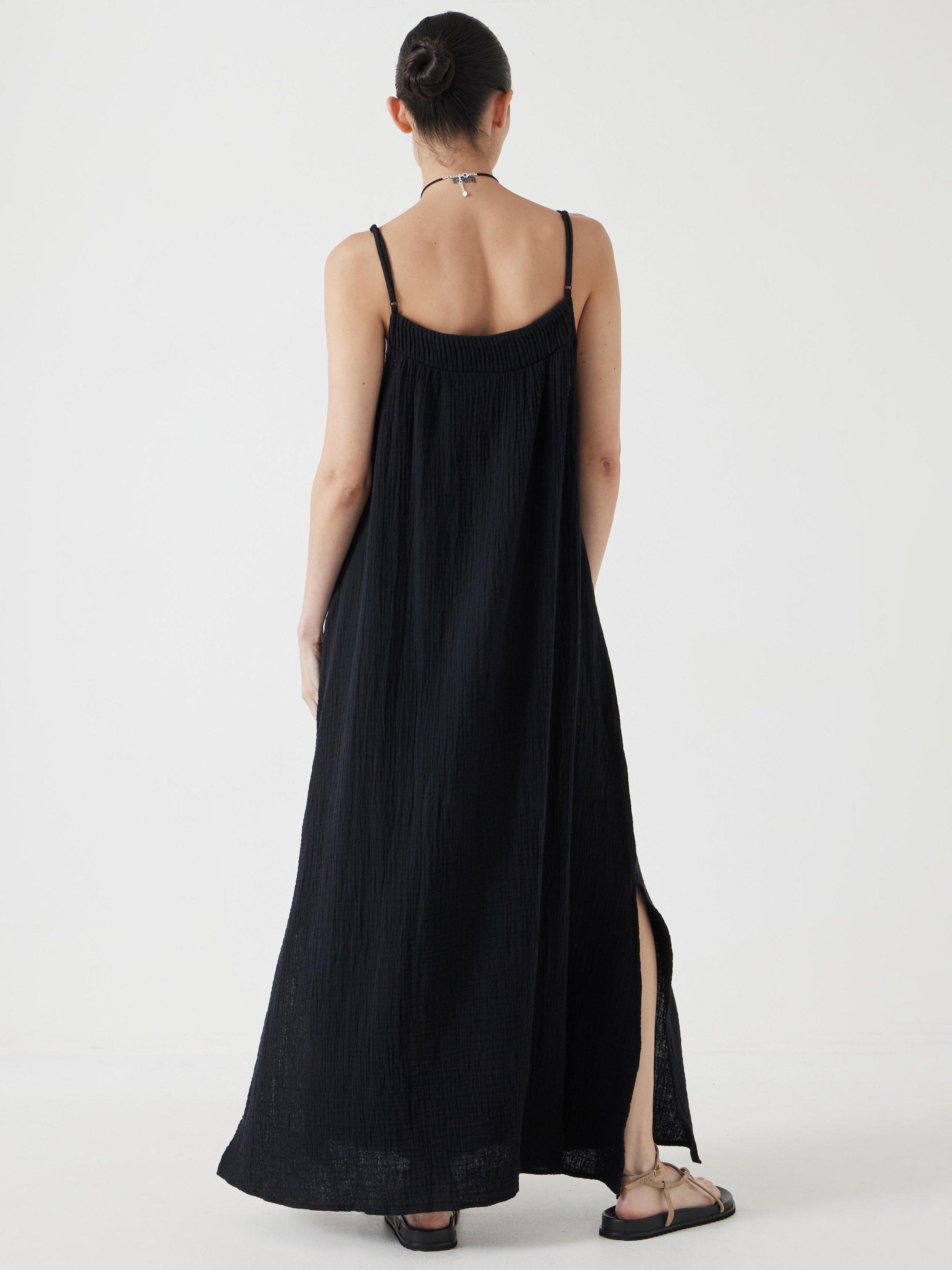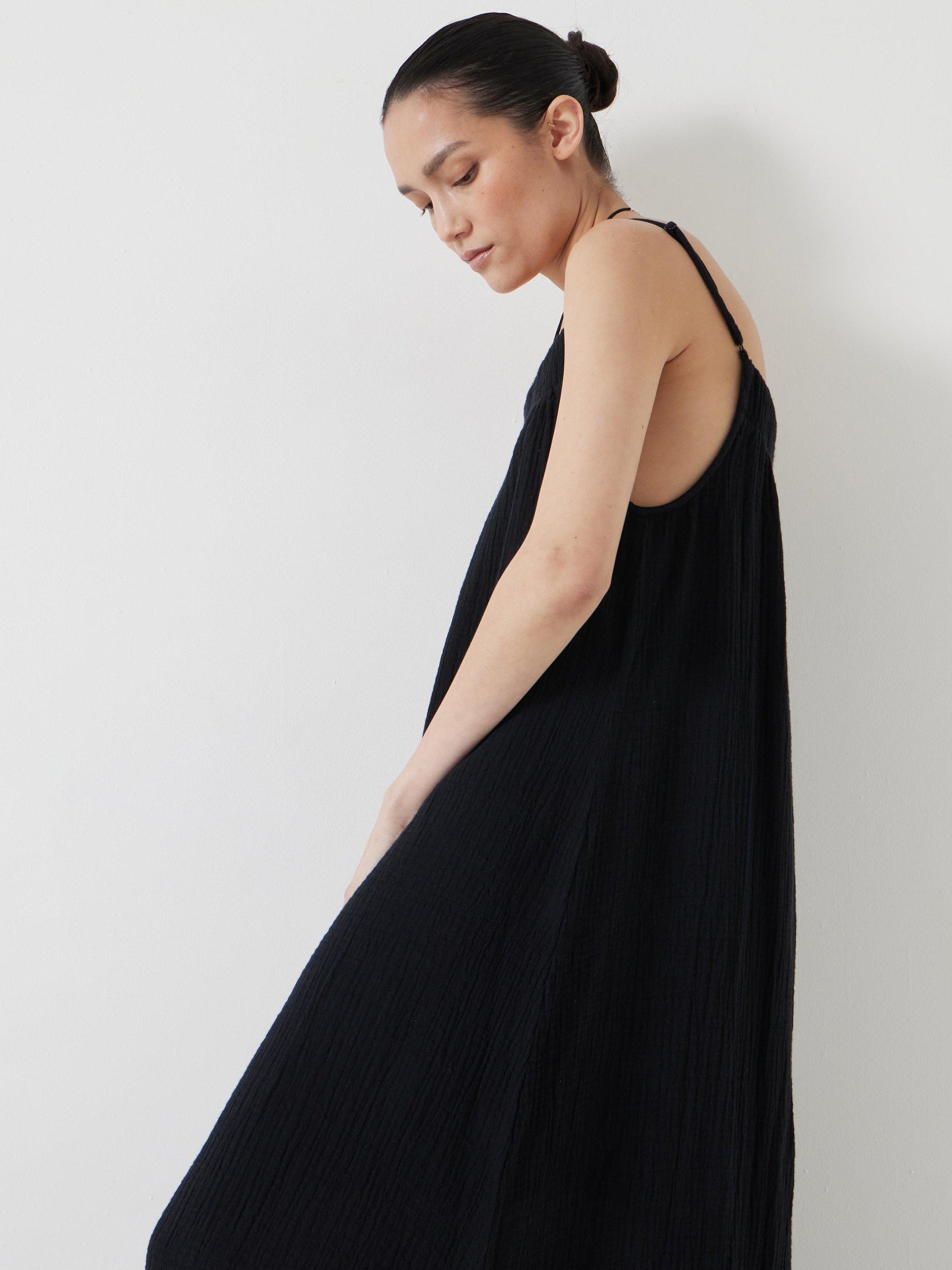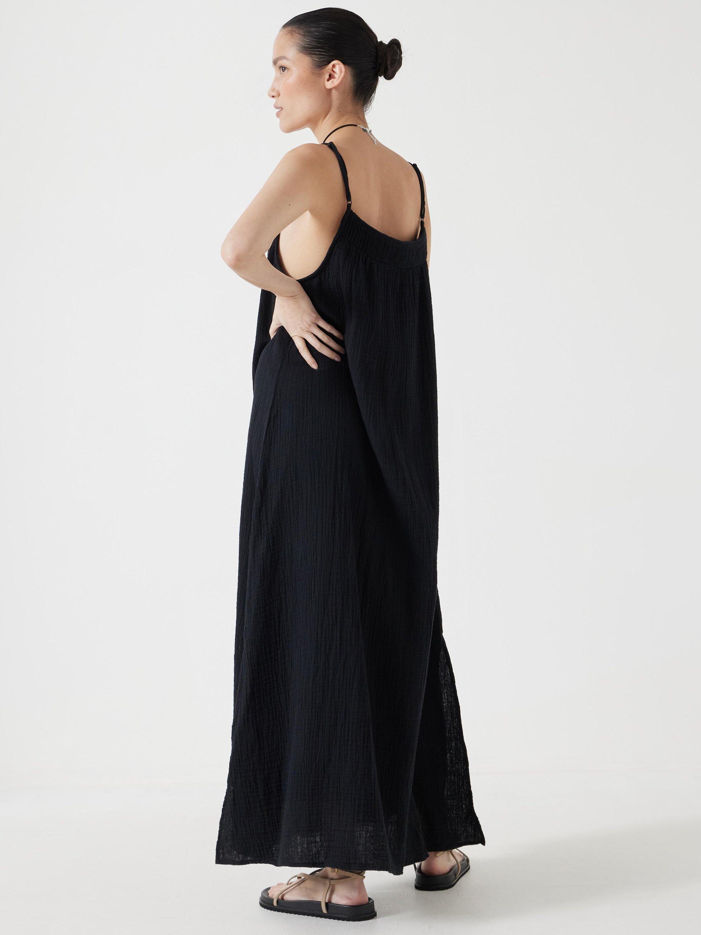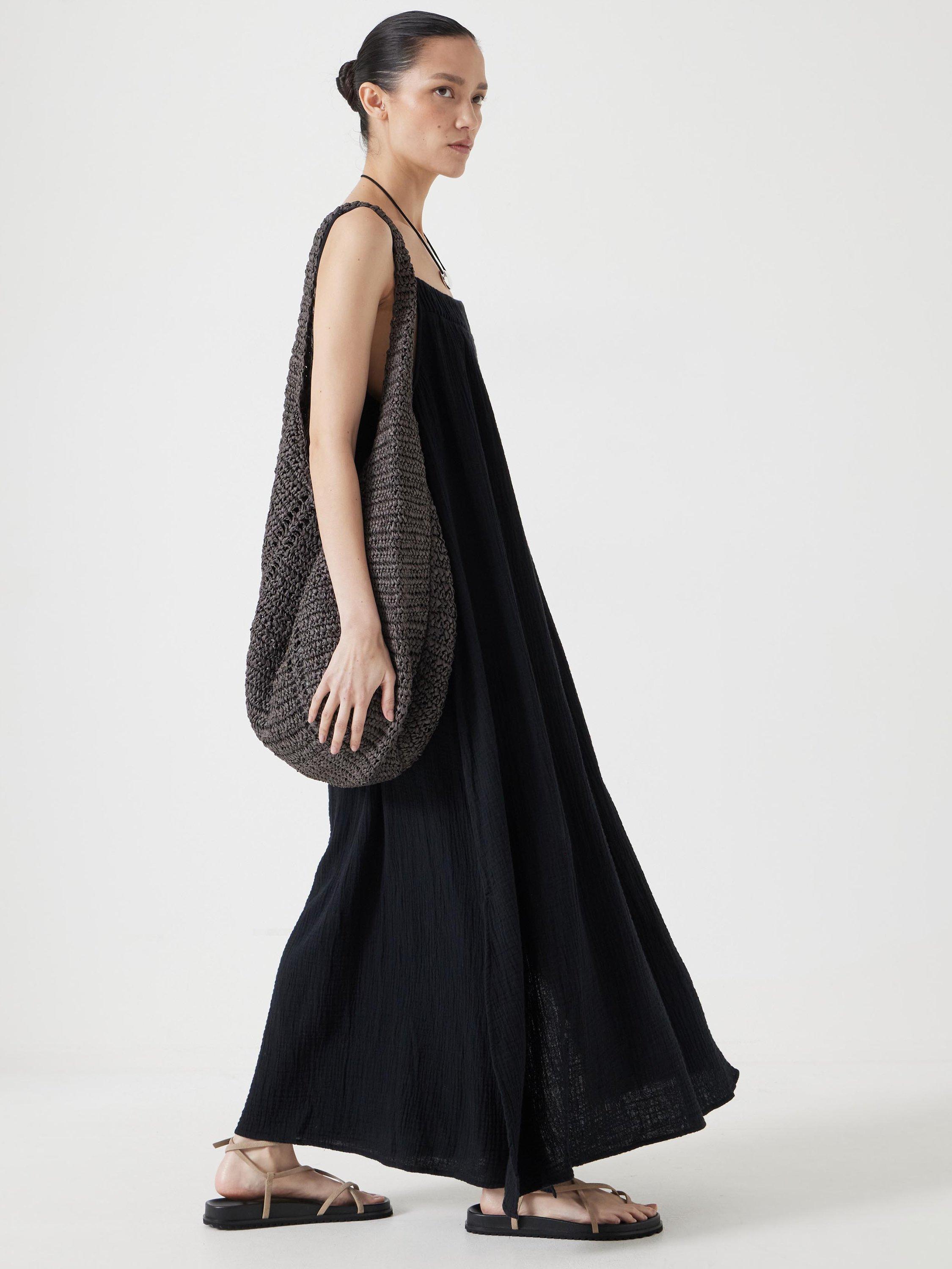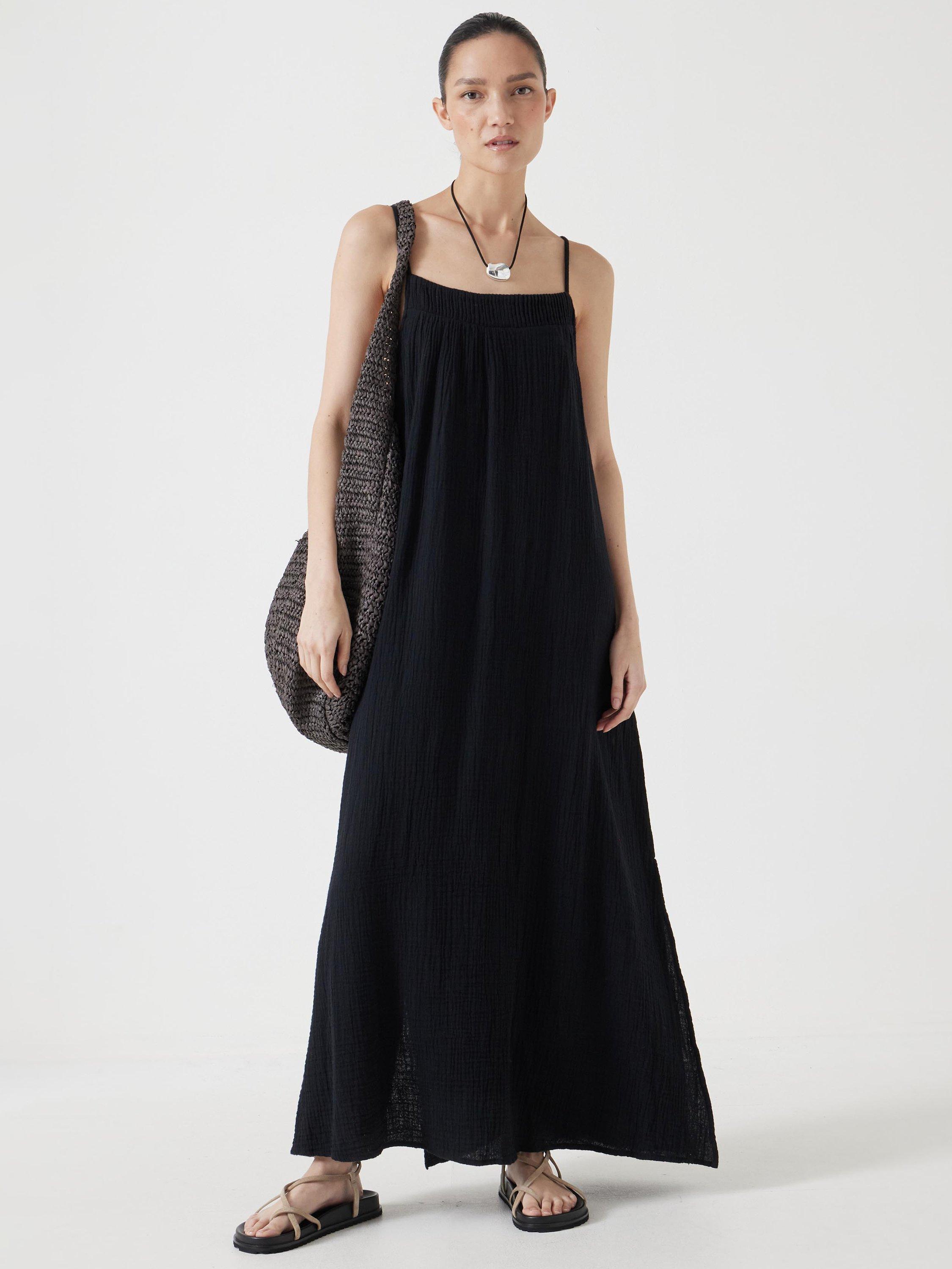 How to still look chic when it's baking hot outside? Wear Carmen - the maxi we pull on when we'd really rather be wearing nothing. It's woven from crease-resistant gauzy cotton in an airy shape and is finished with a pleated band on the neckline. This means it's perfect for keeping us cool when the sun is beating down.
