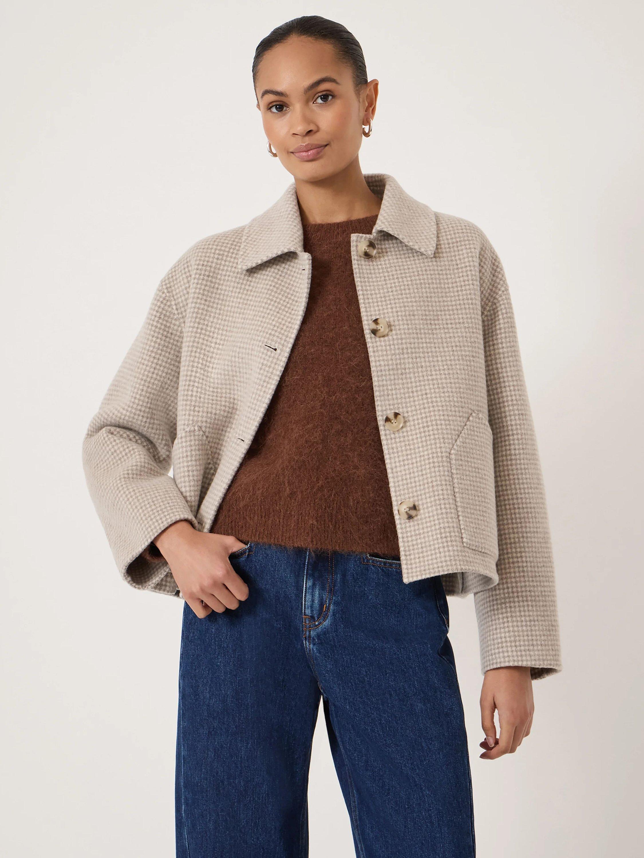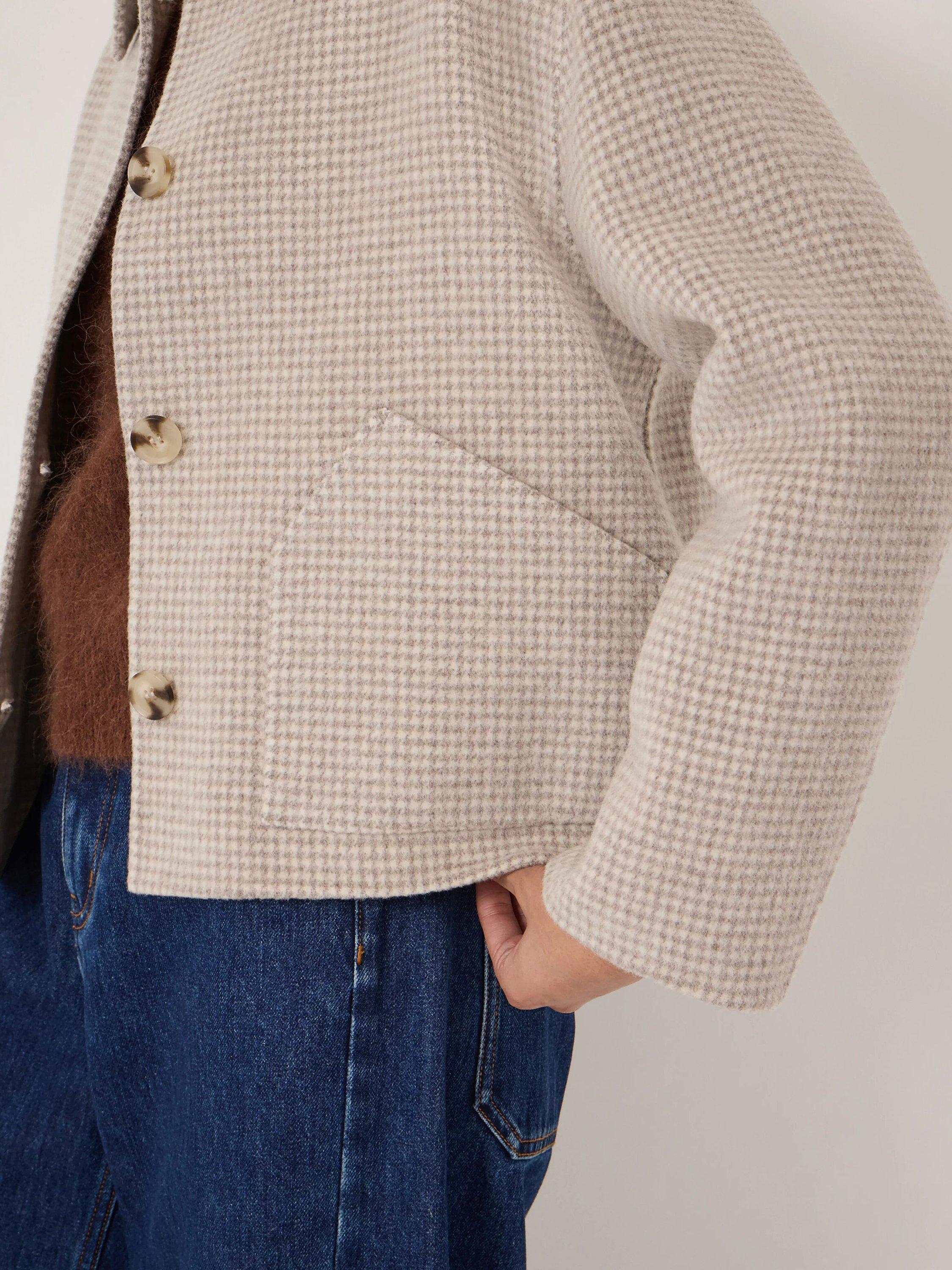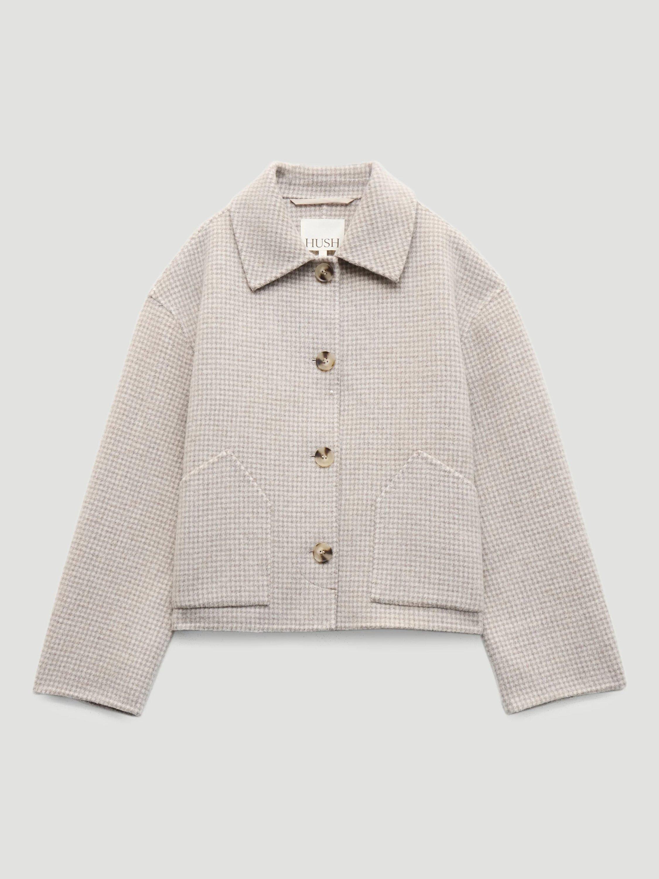 A double faced jacket by HUSH, made from a wool rich blend. Subtly textured with a check finish, layer up over your looks for instant smartness.