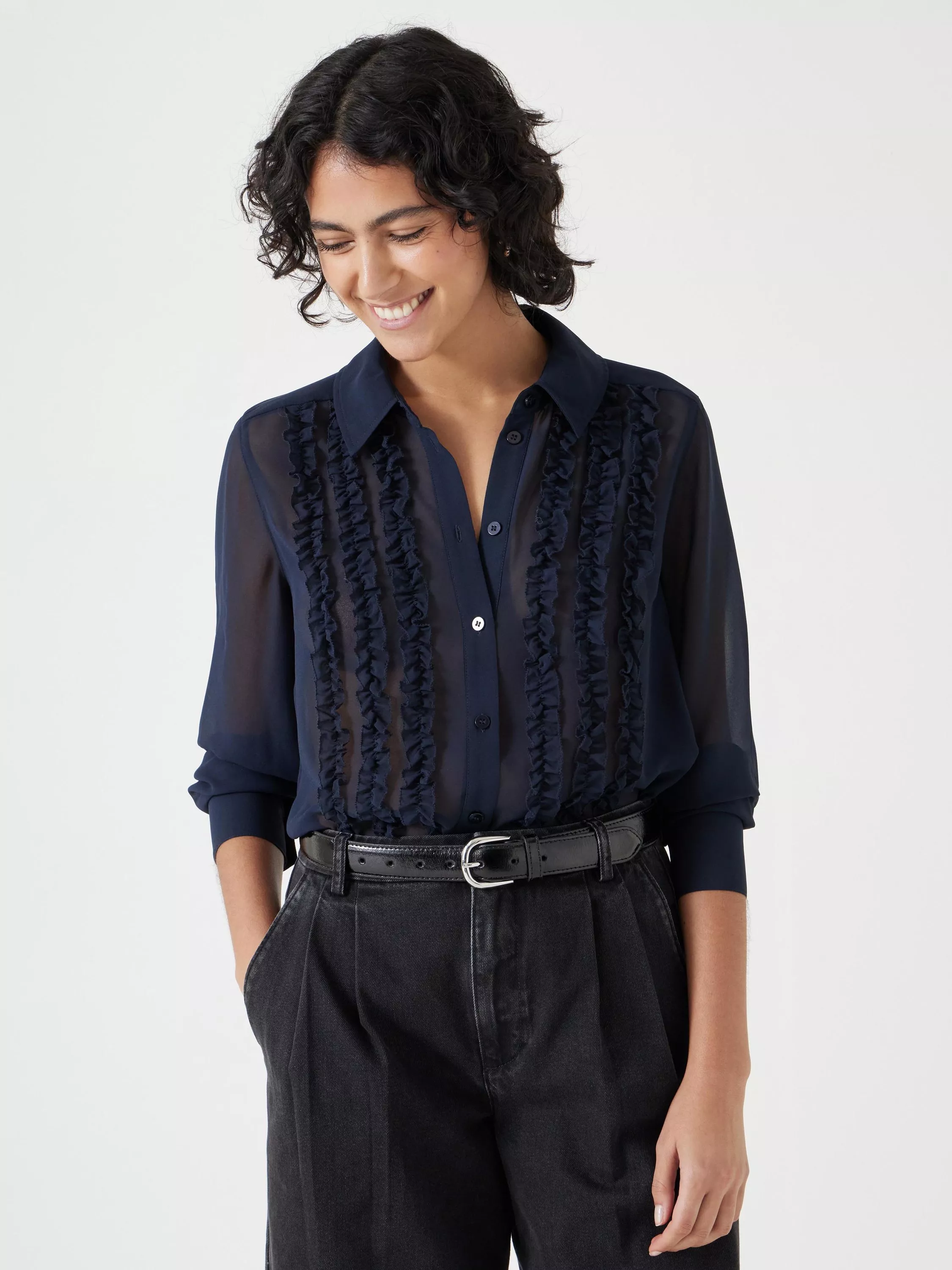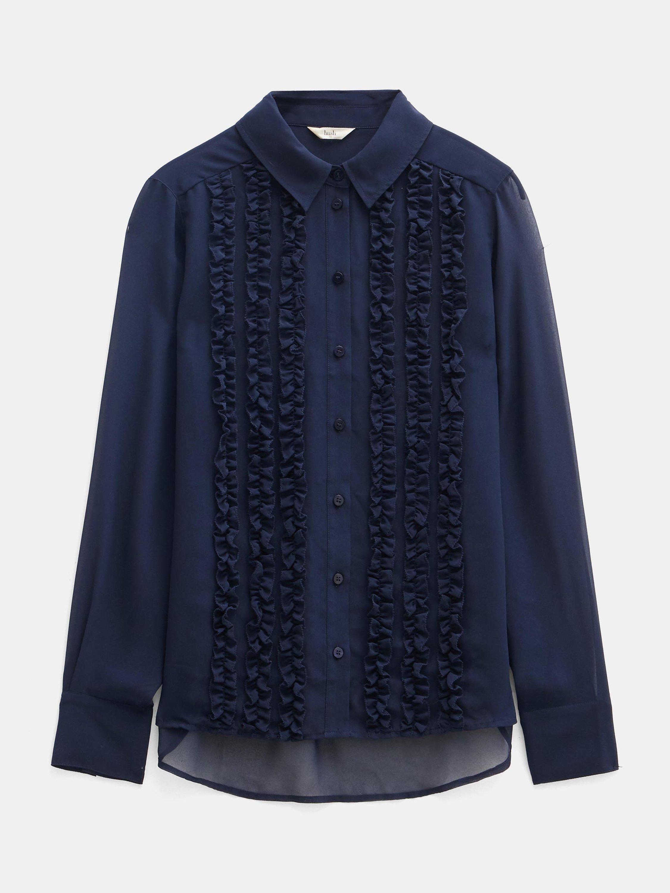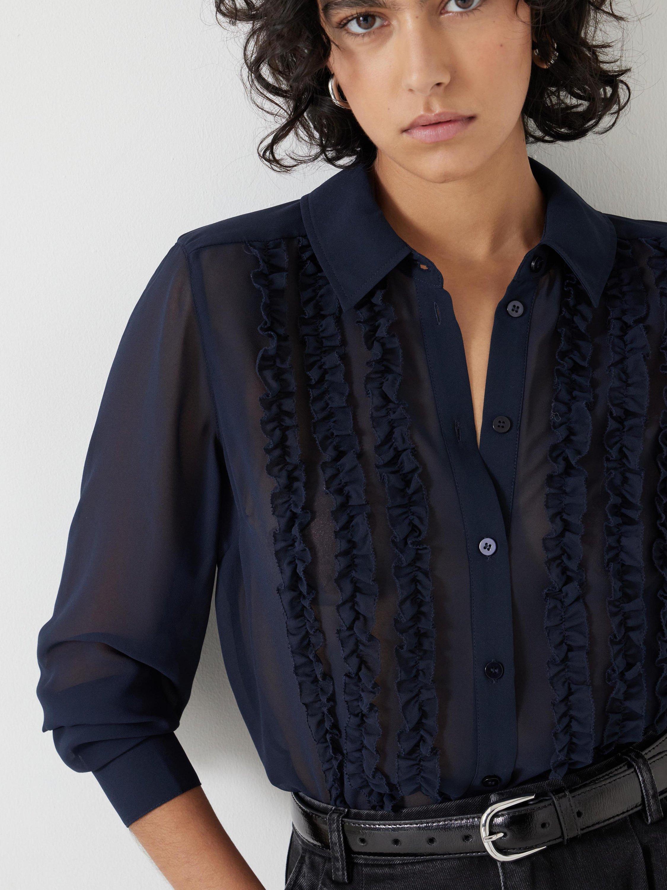Sheer fabrics and soft ruffles - perfection, no? This long-sleeved shirt does all the hard work for you with its detailed front placket, but HUSH have made sure it still feels really wearable by keeping the rest of the design pared-back and minimal. HUSH's favourite way to style it is with laid-back trousers and sandals for a dressed-down take.
