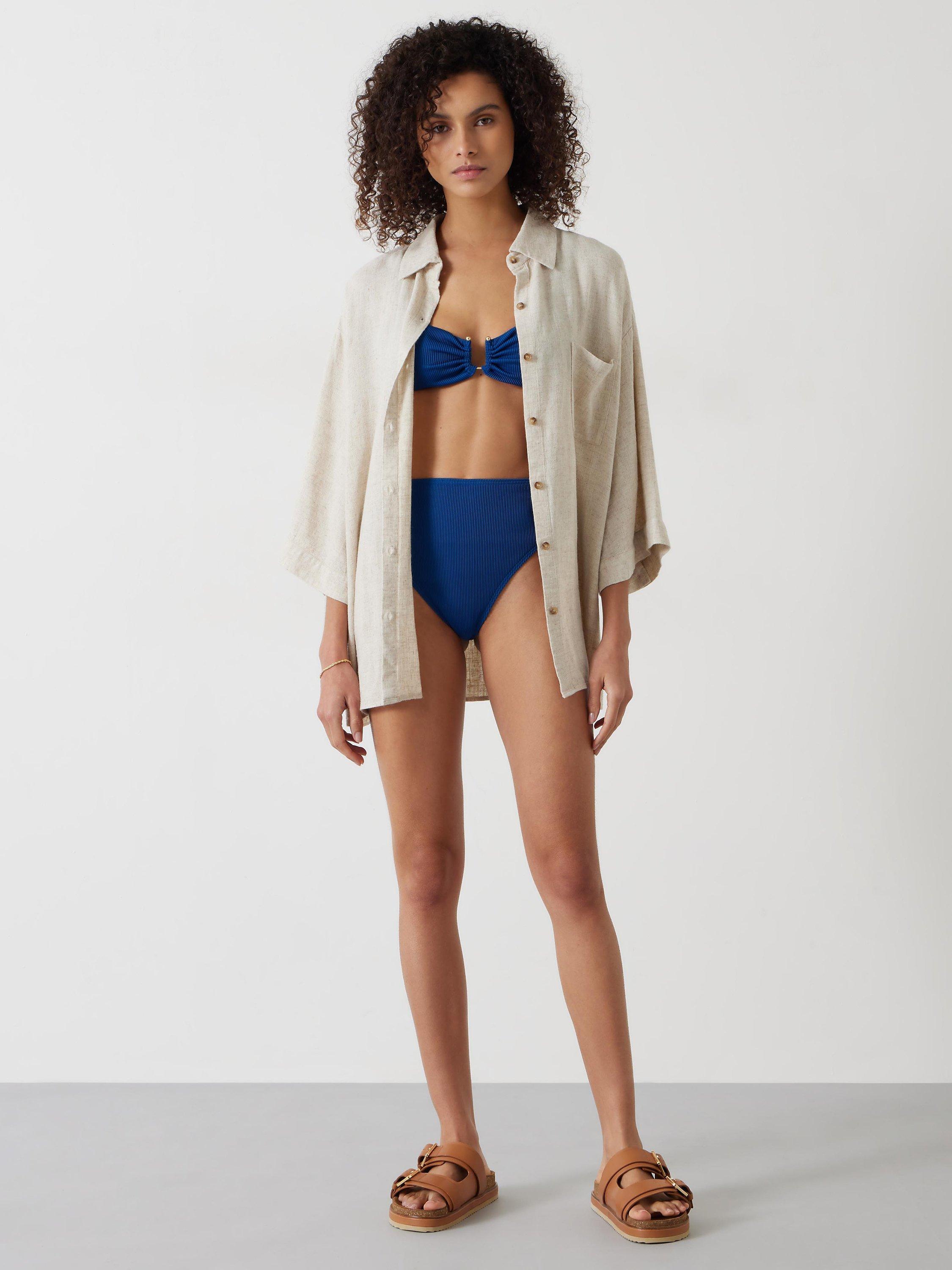 Keeping things simple with a stylish plain canvas, this bikini top by HUSH is flattering with a bandeau design, an open back and self-tie straps that untie for all-important sunbathing. Team yours with the corresponding bottoms or mix and match with contrasting colours for a truly unique look.