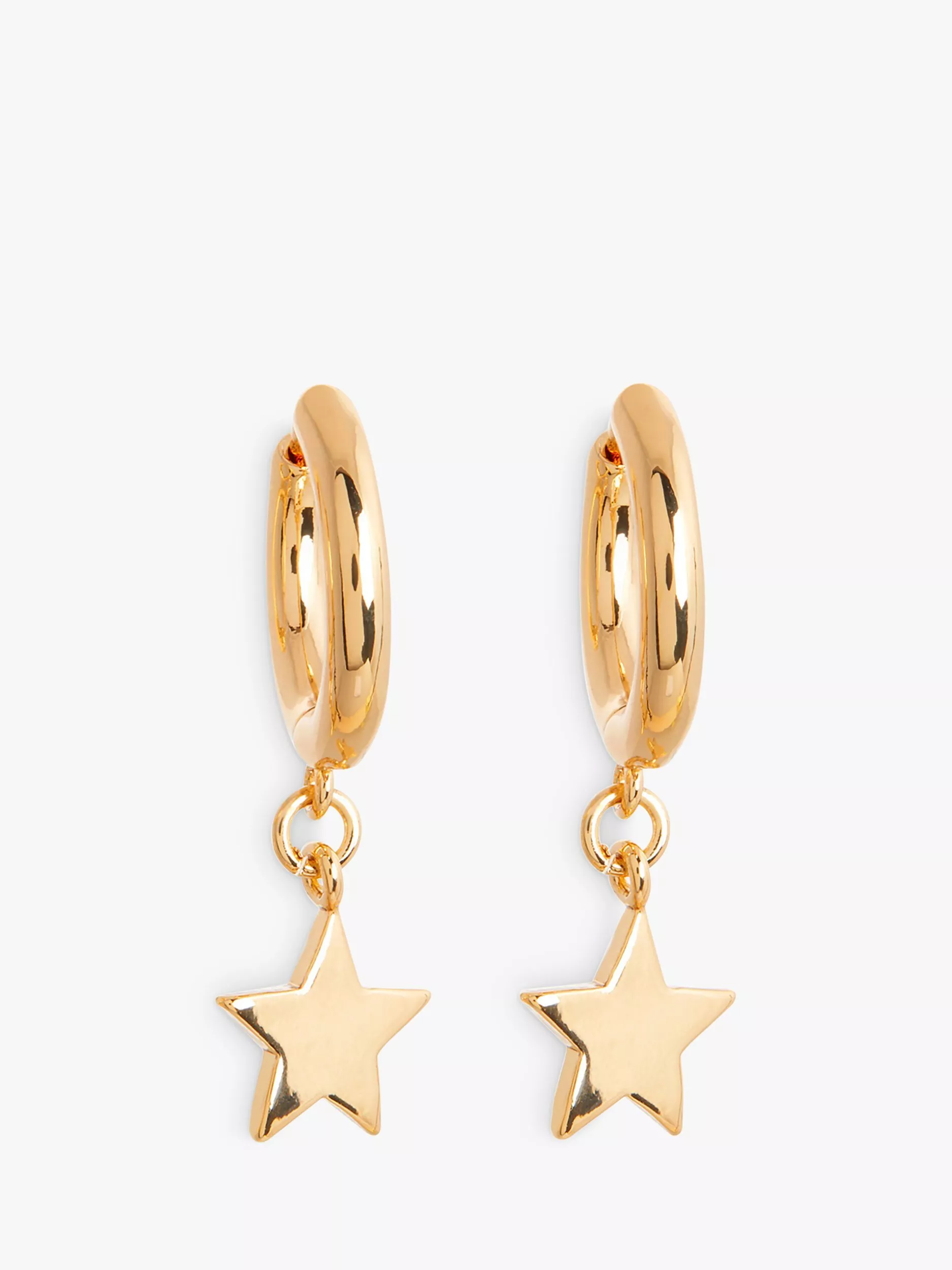 Shine like the star you are with these Chrysi huggie hoop earrings from HUSH. A simple star shape hangs from a traditional huggie hoop earring making these simple enough for everyday wear. The earrings are for pierced ears only.