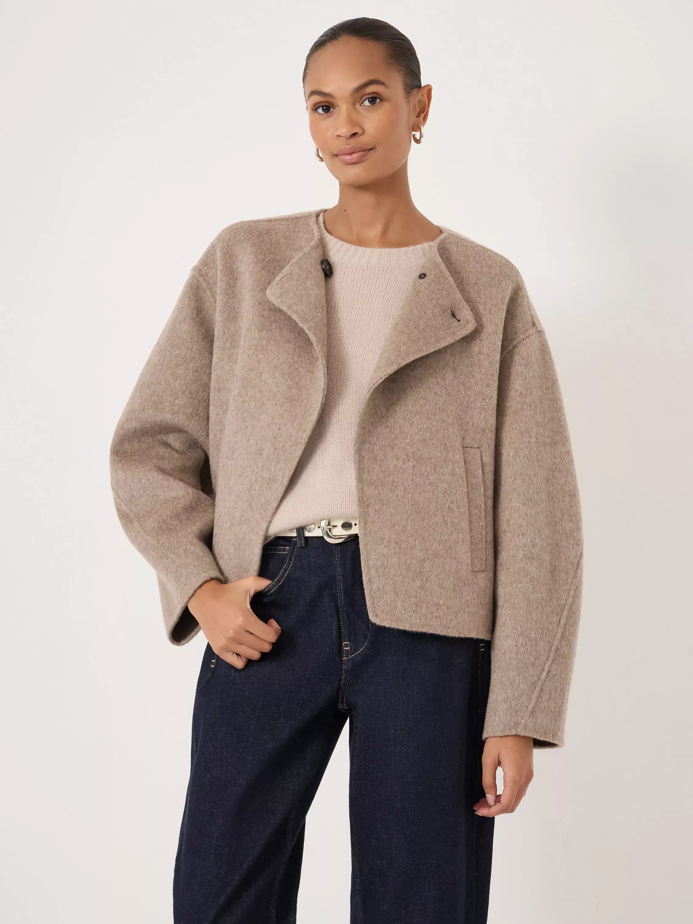 Designed with a refined wrap neckline, it is made from pure wool for ultimate warmth.