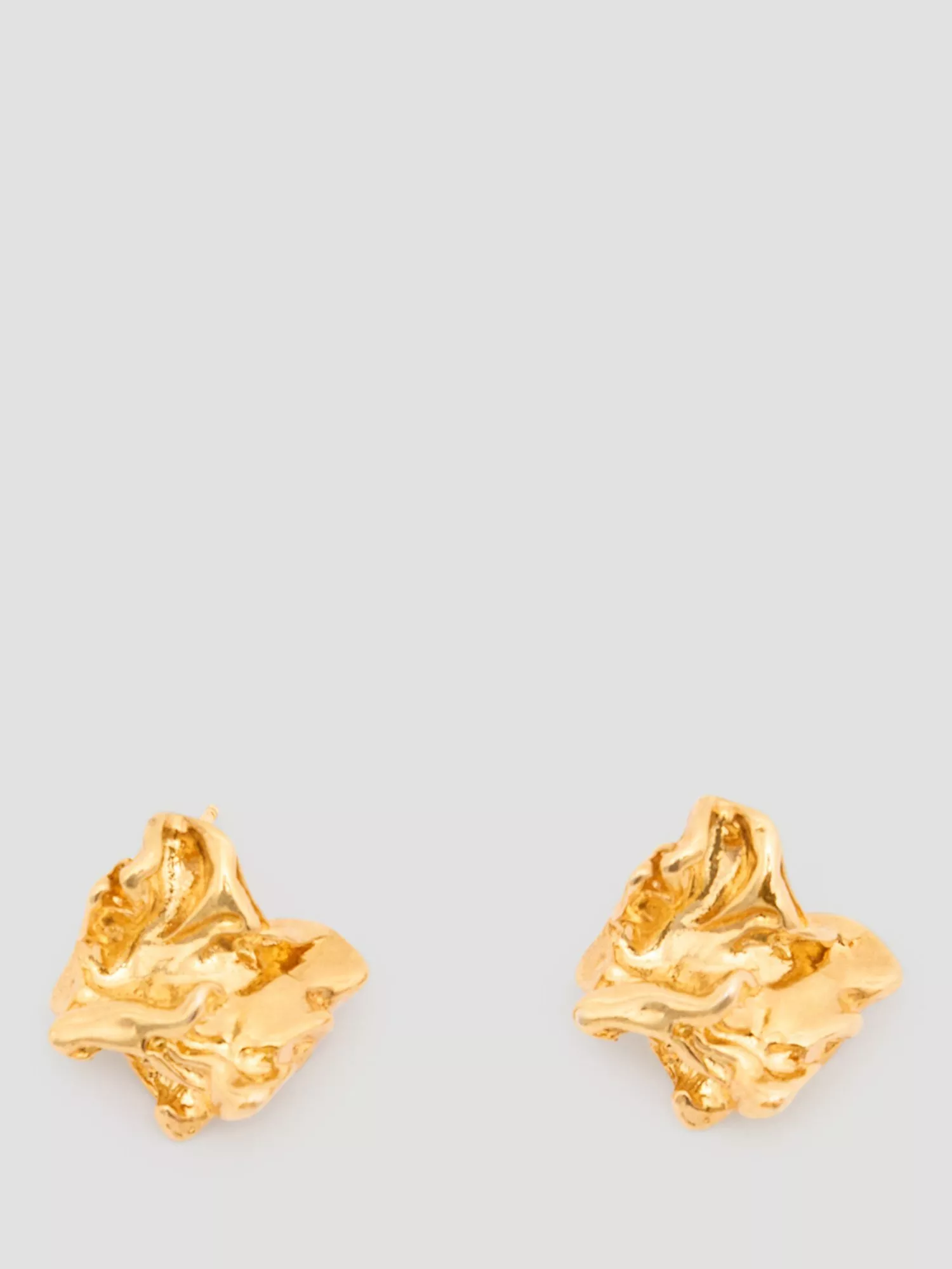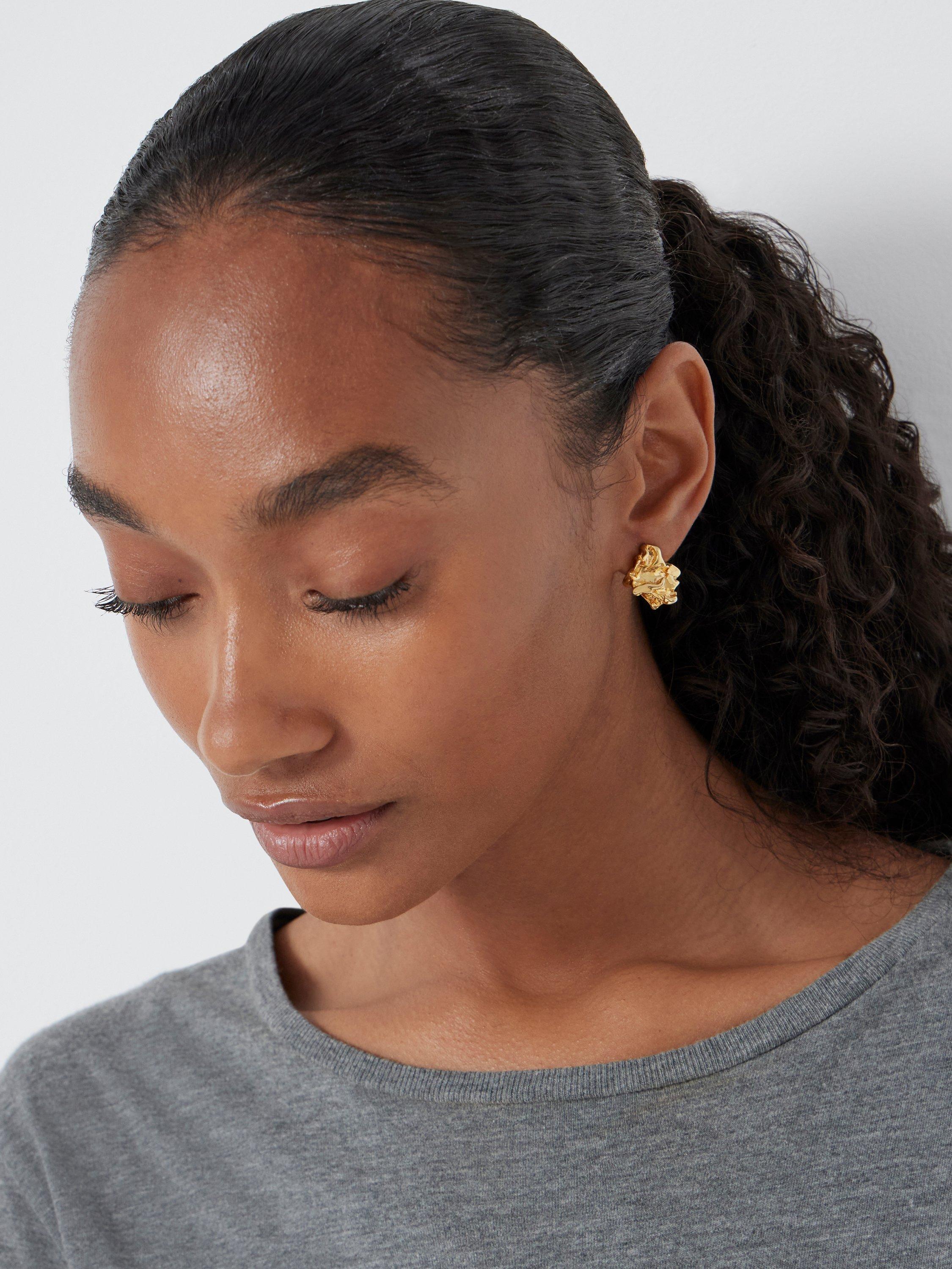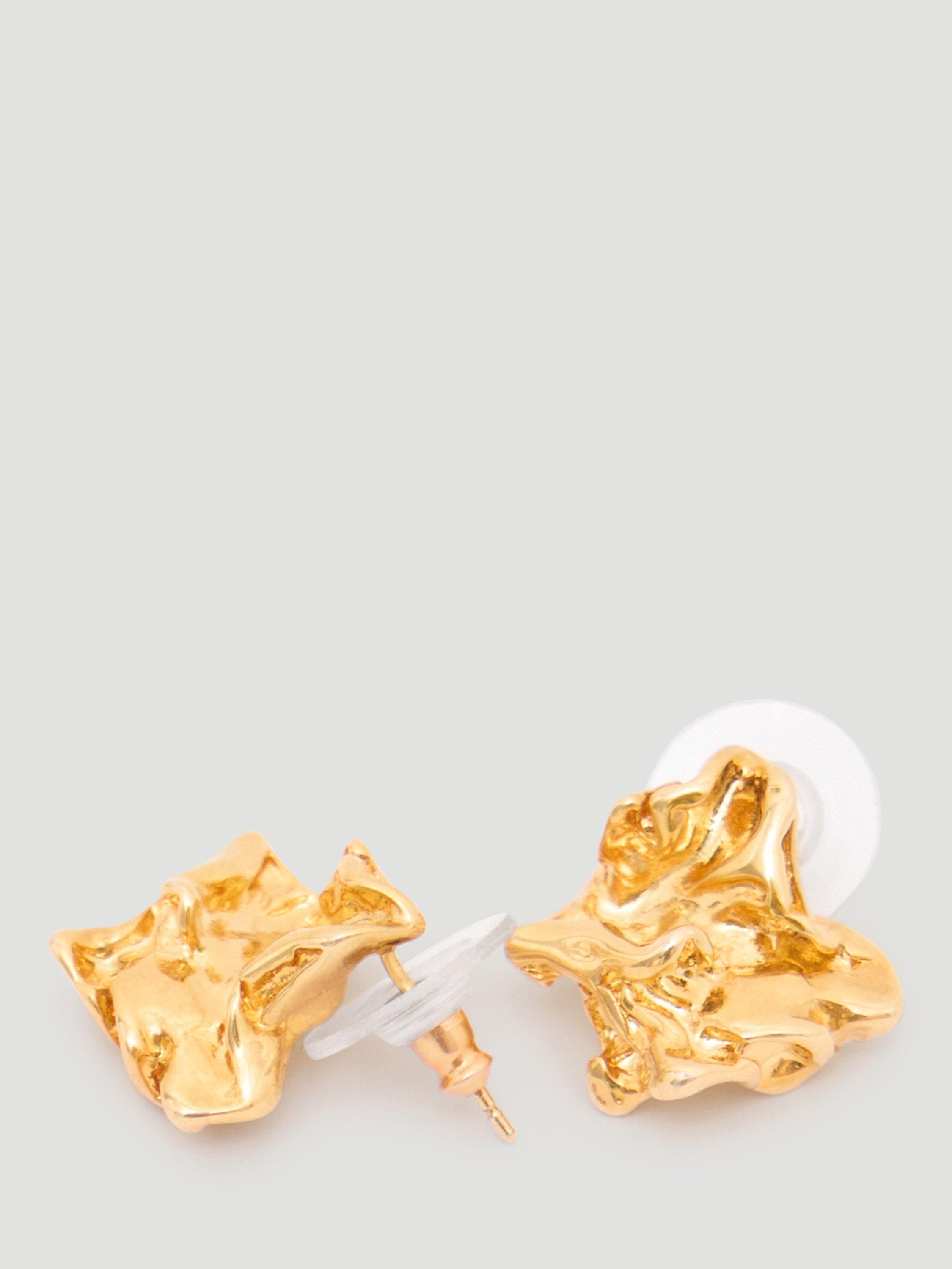 Crafted in gold-plated brass, these stud earrings feature a crumpled effect, adding another dynamic to your collection. Secured on a post fitting, they are suitable for pierced ears only.