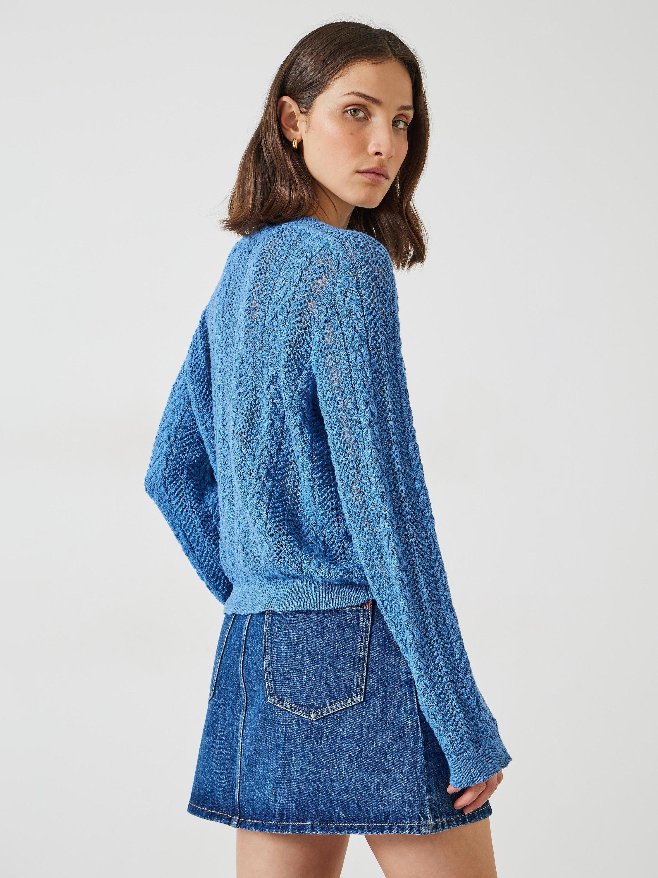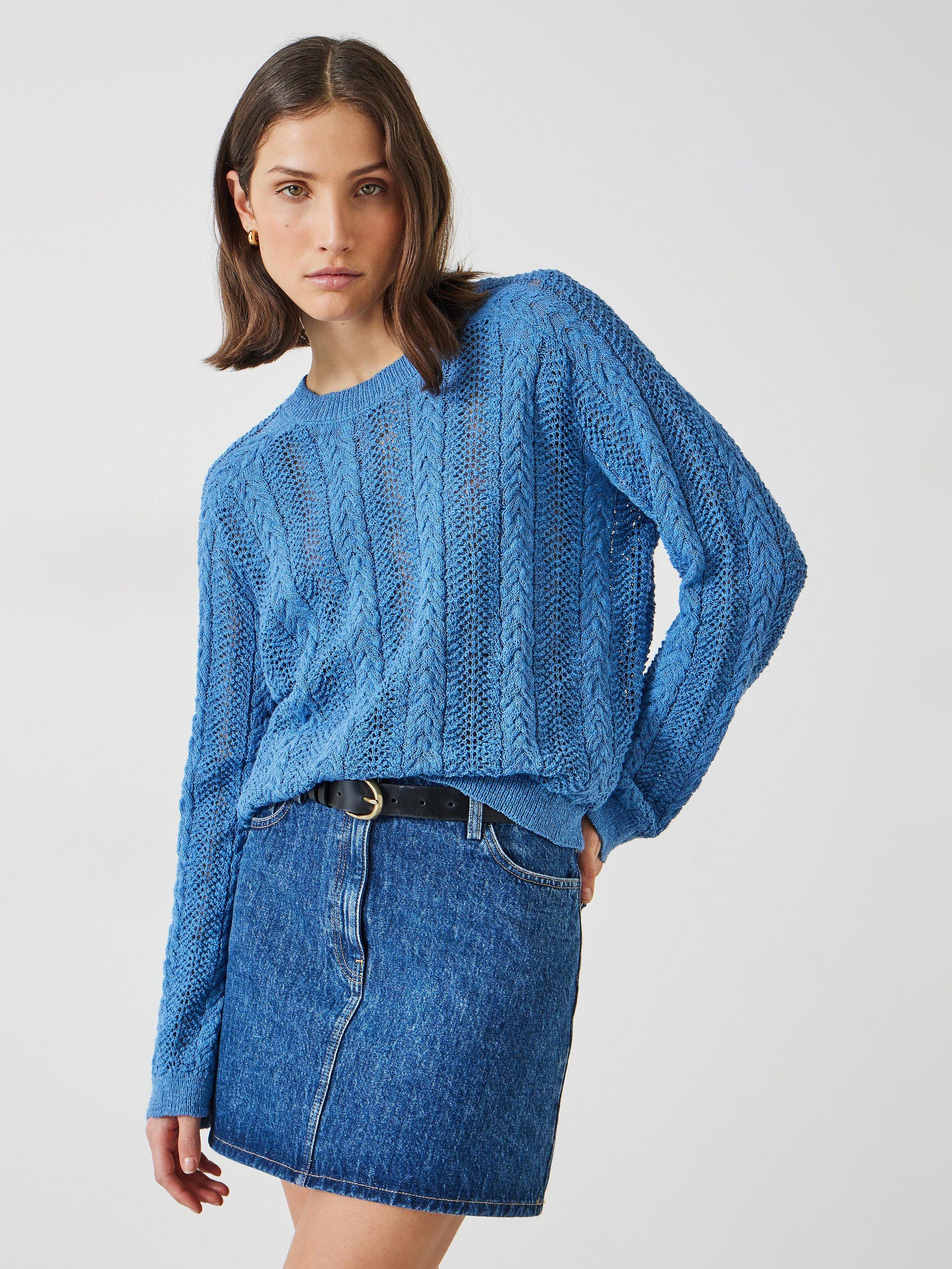 The Dot jumper is the perfect springtime knit. Why? Because it's made from cotton-rich yarns with open stitchwork, so it's not too hot but still feels cosy. Basically, we won't be taking it off this season.