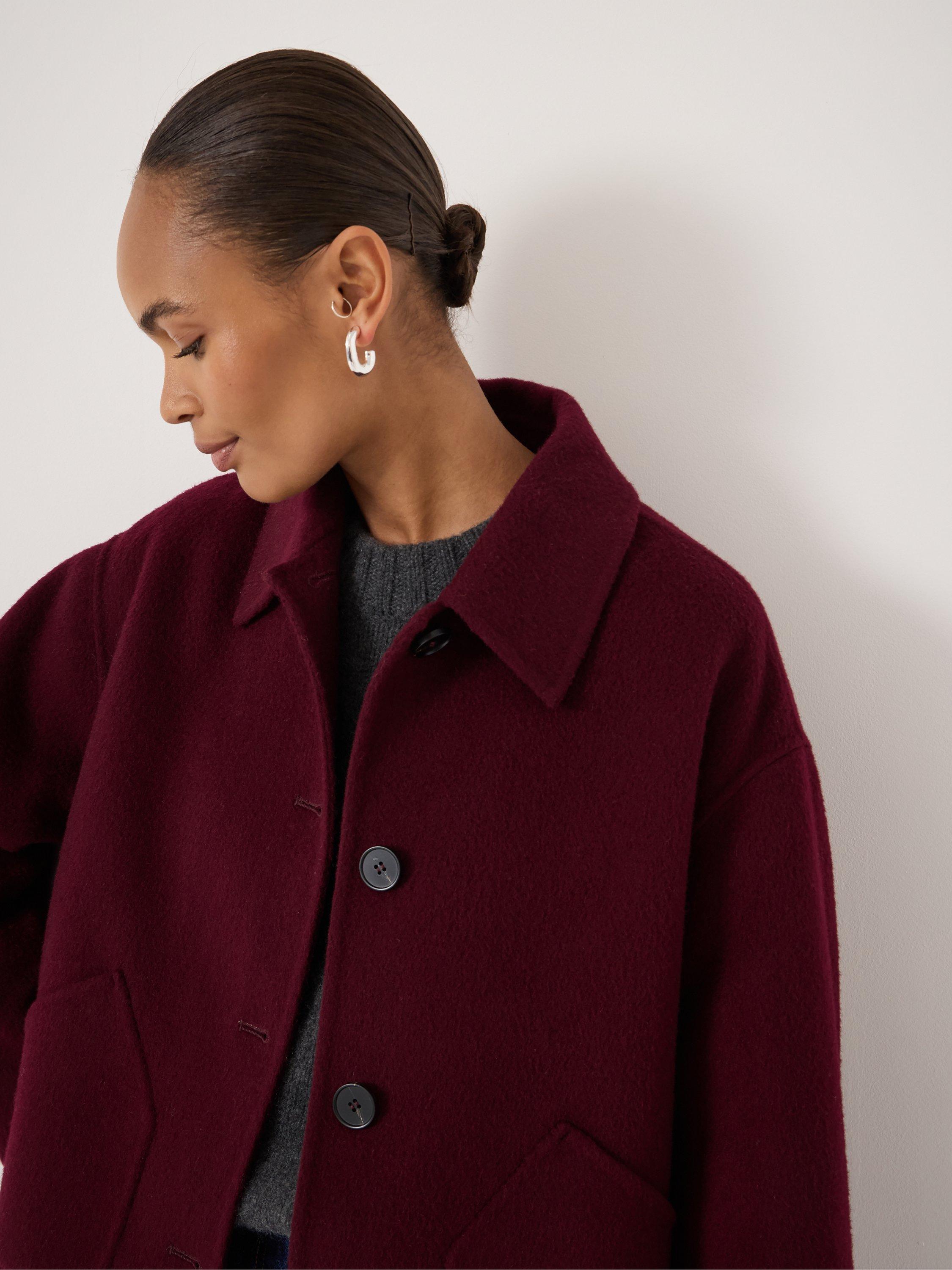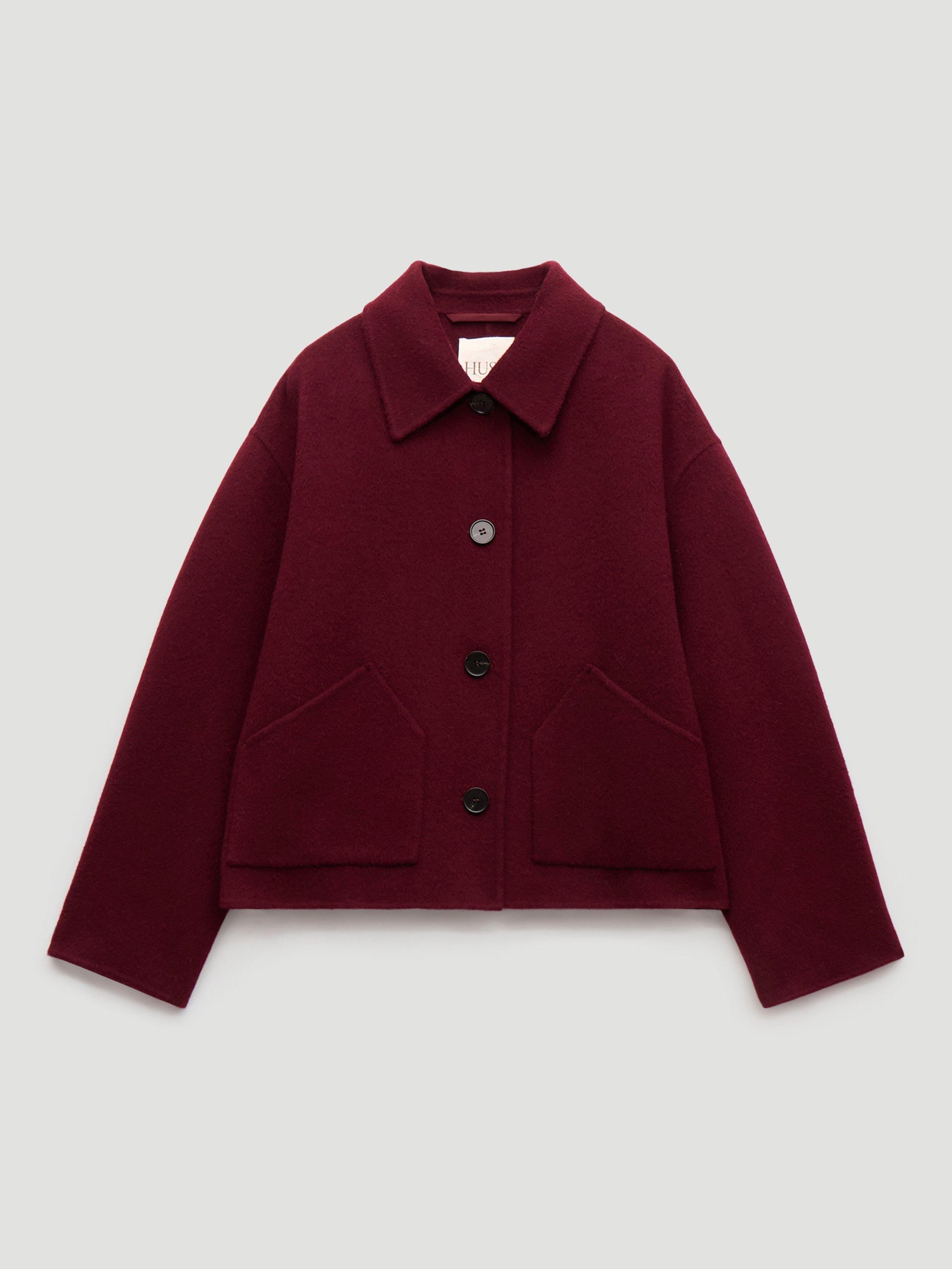 HUSHDouble Faced Pure Wool Jacket, Dark Wine Red