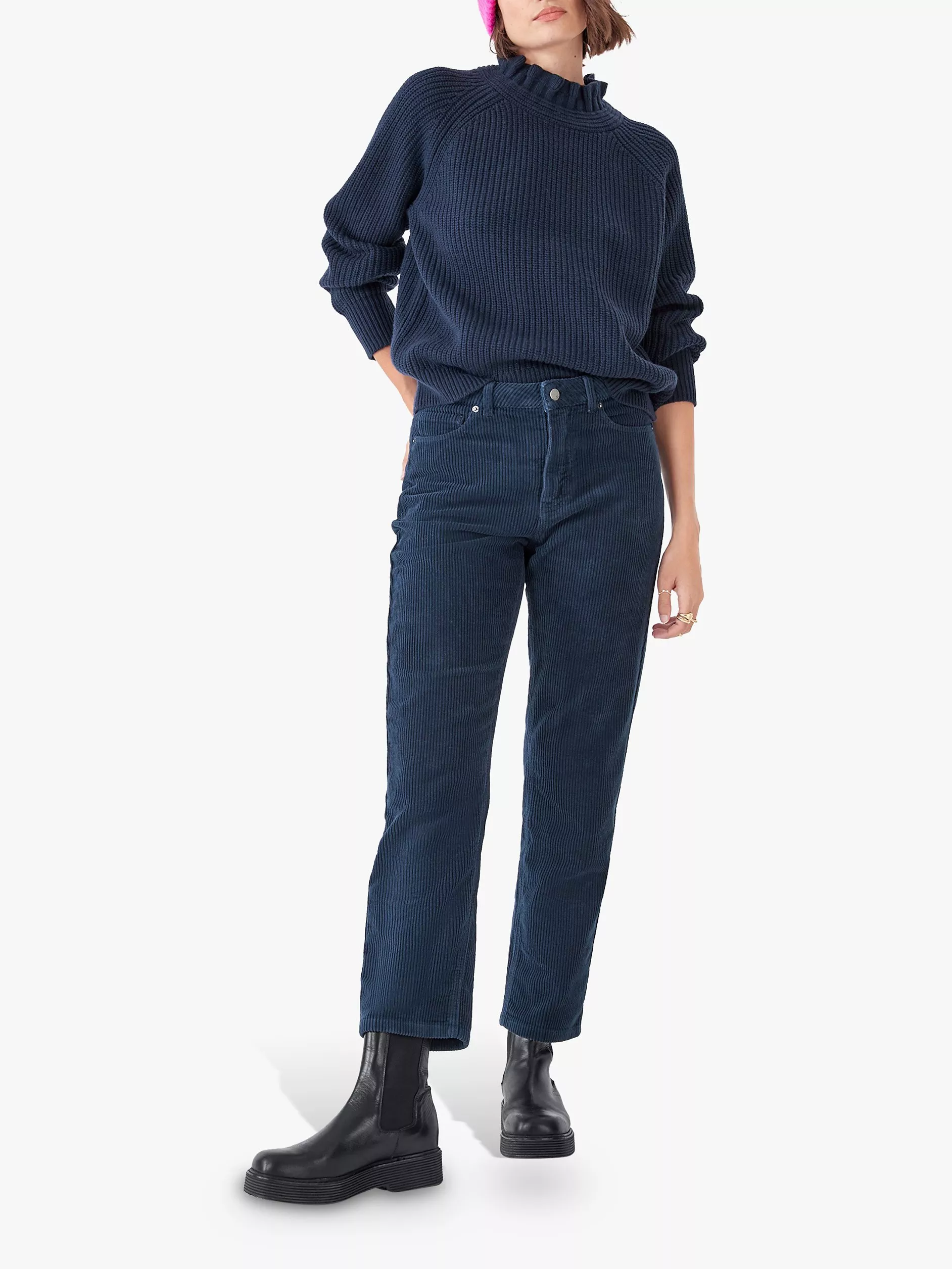 HUSHDylan Frill Neck Jumper, Midnight Navy