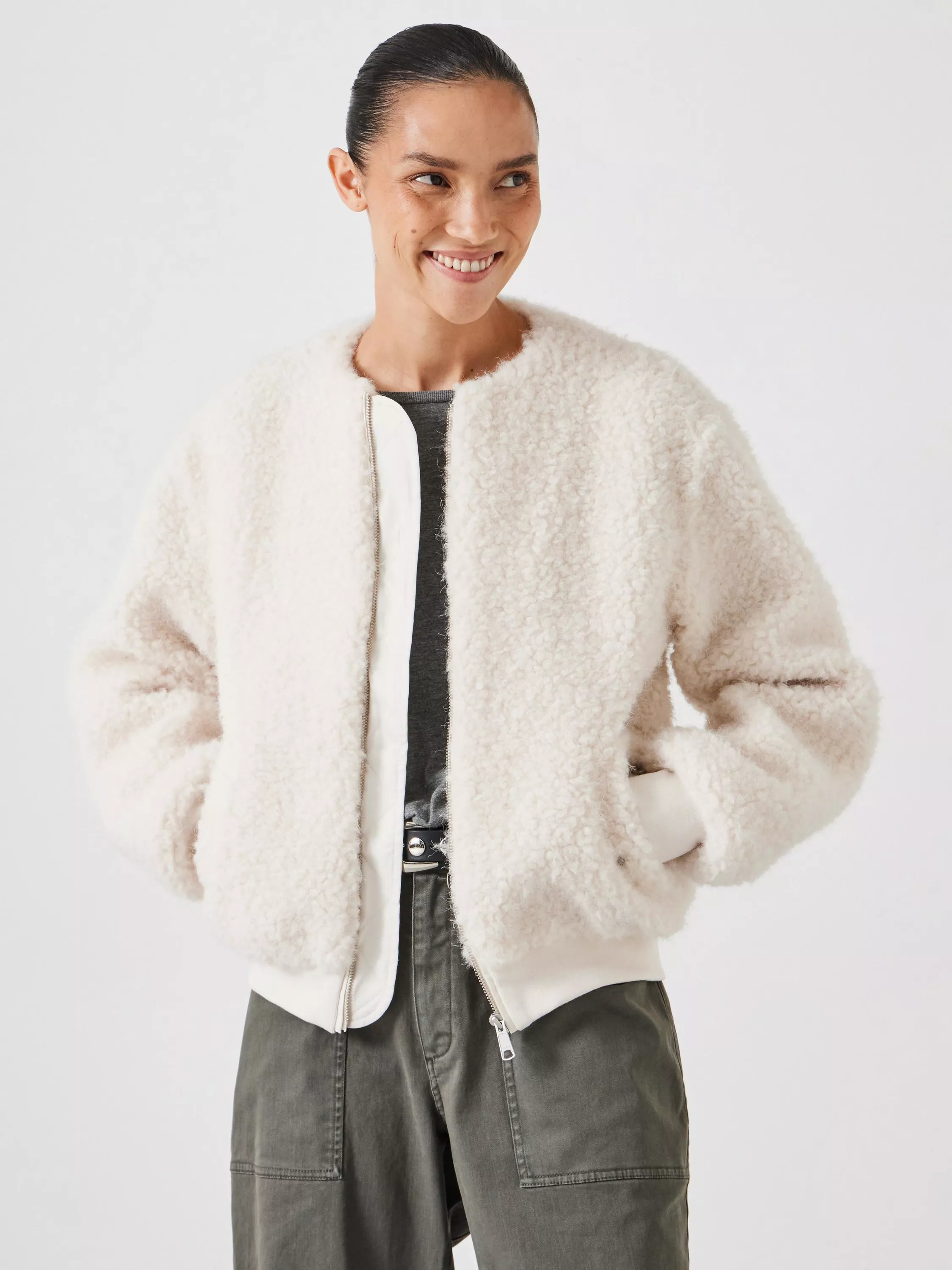 Safe in the knowledge that you’ll be warm (and probably the most stylish on your morning commute), this faux fur jacket from HUSH falls to a regular length.