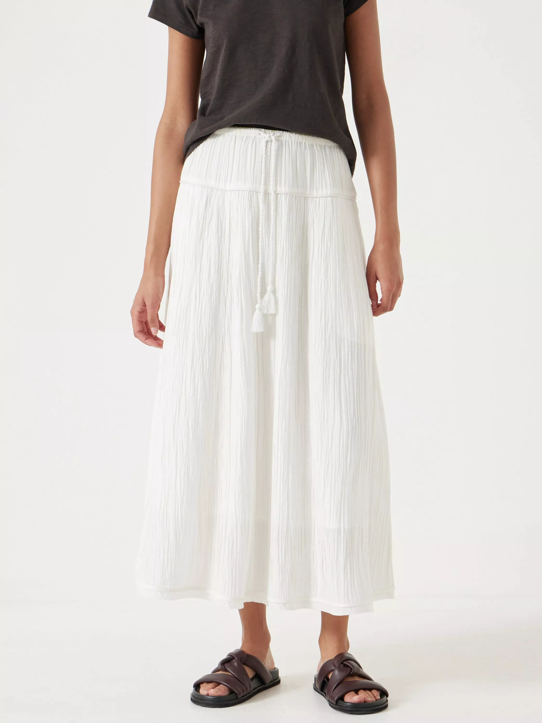 HUSH loves a look that is super comfortable but still looks put-together. This maxi skirt passes the check with its airy profile, while a fitted waist makes it feel a little more elevated.