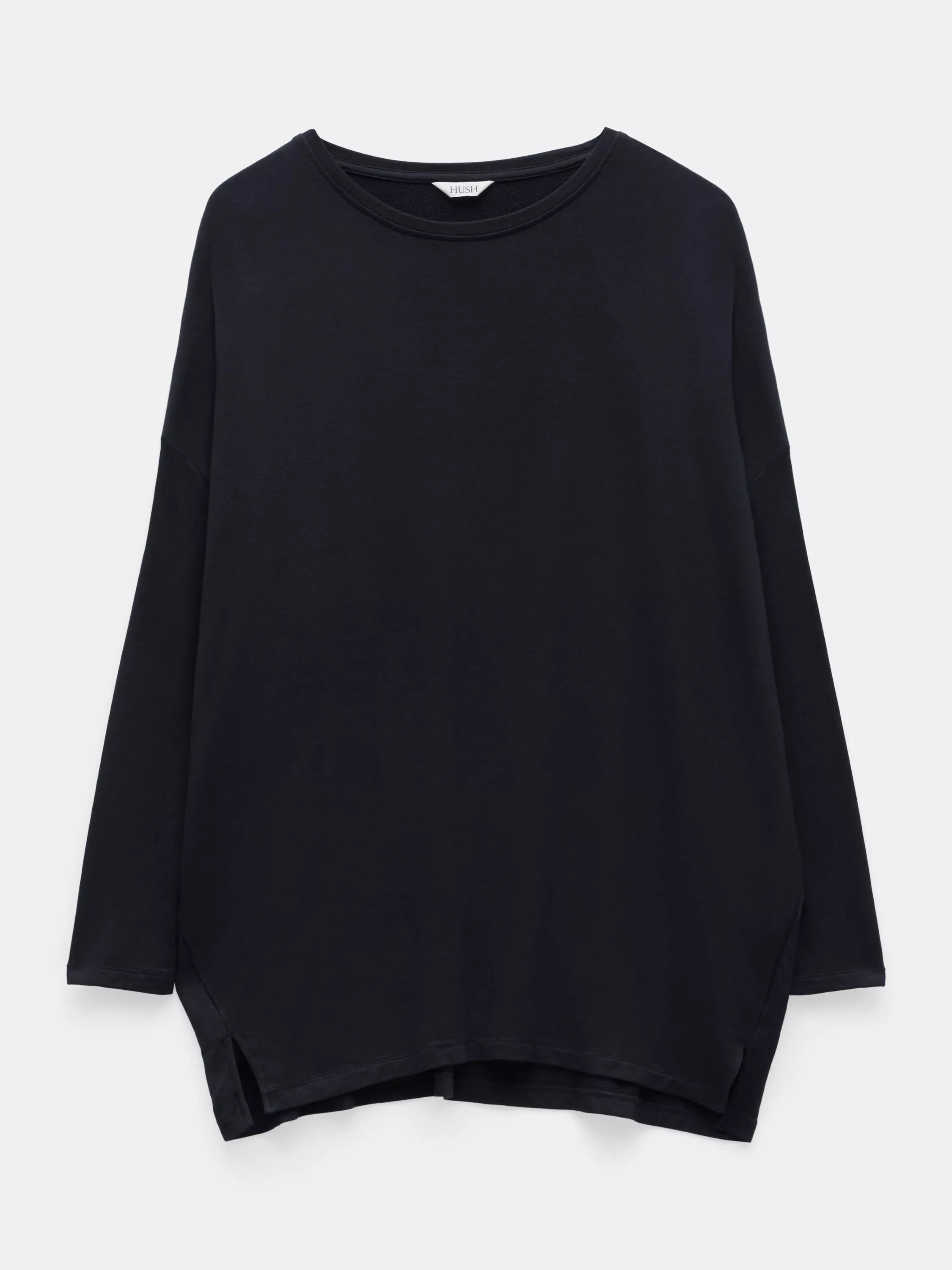 This longline jersey top is an easy wearing piece that you'll turn to again and again. Soft Ecovero material gives a slouchy feel which teams perfectly with jeans or joggers for laidback style.