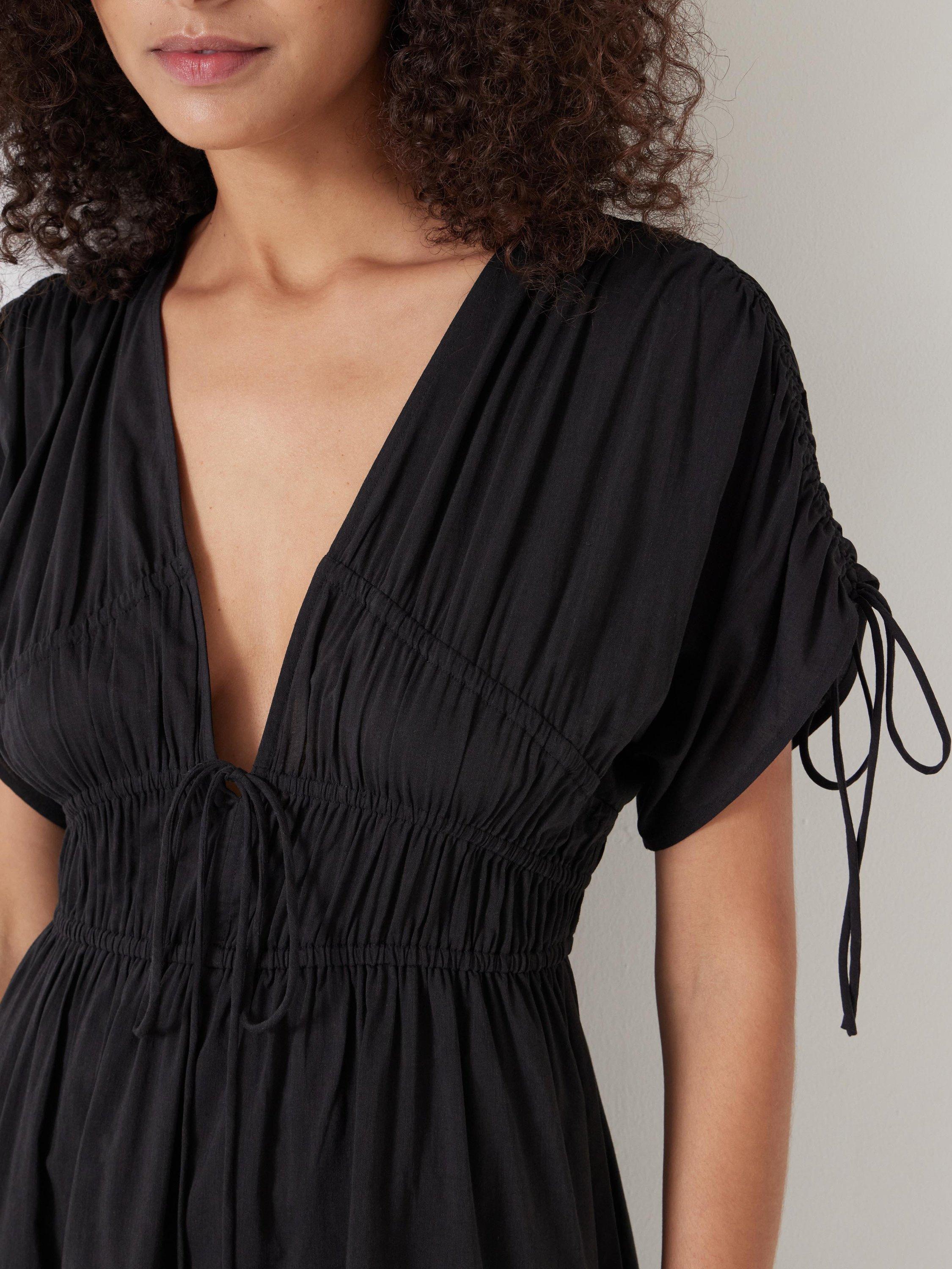 Wondering how to look chic yet effortless on the beach? The Grace dress is a great place to start, made in a breezy cotton blend that's perfect for throwing on over our swimwear. It's loosely fitted at the top before falling to a soft midi length and comes with adjustable ruching at the sleeves - so easy.
