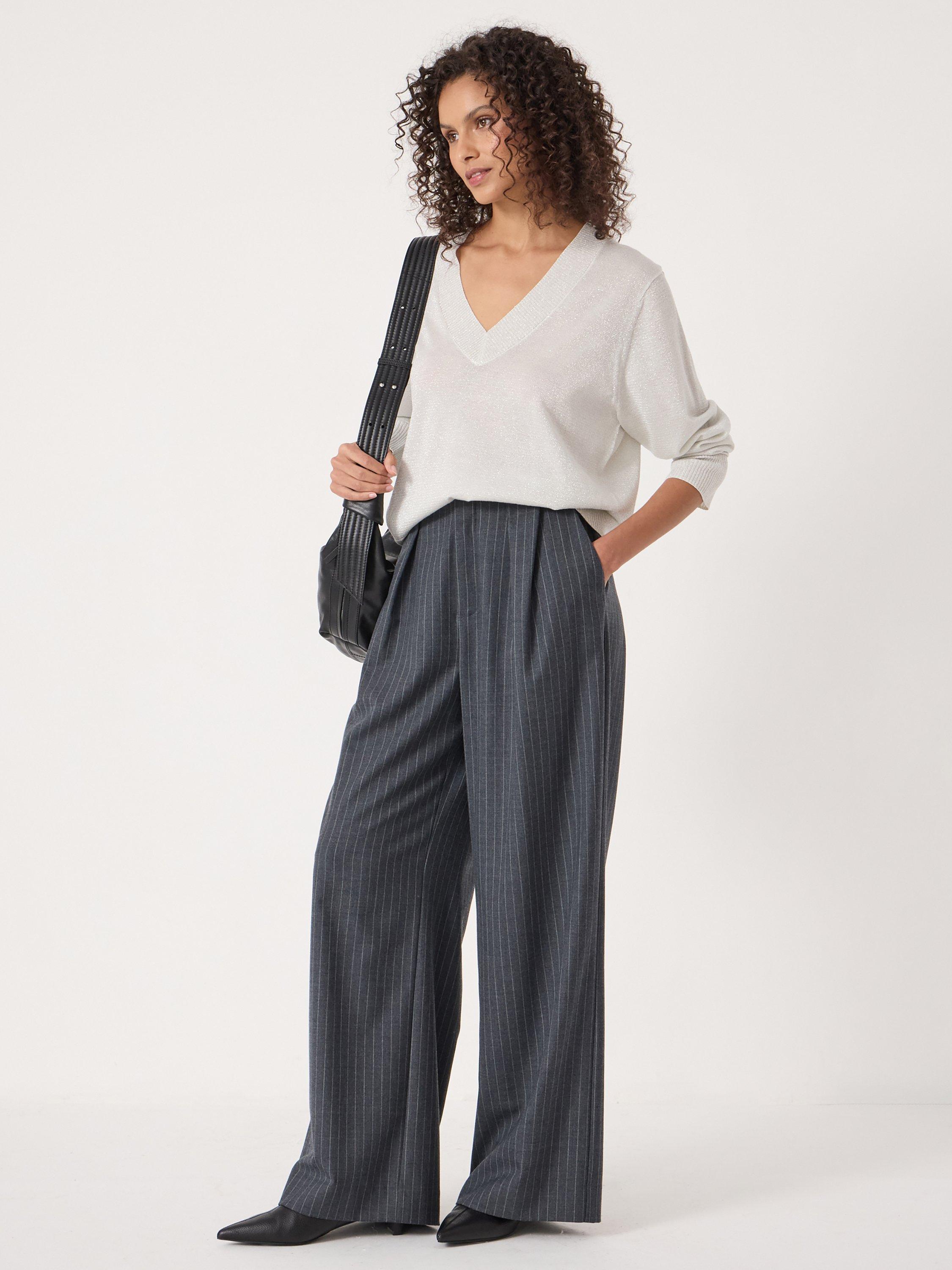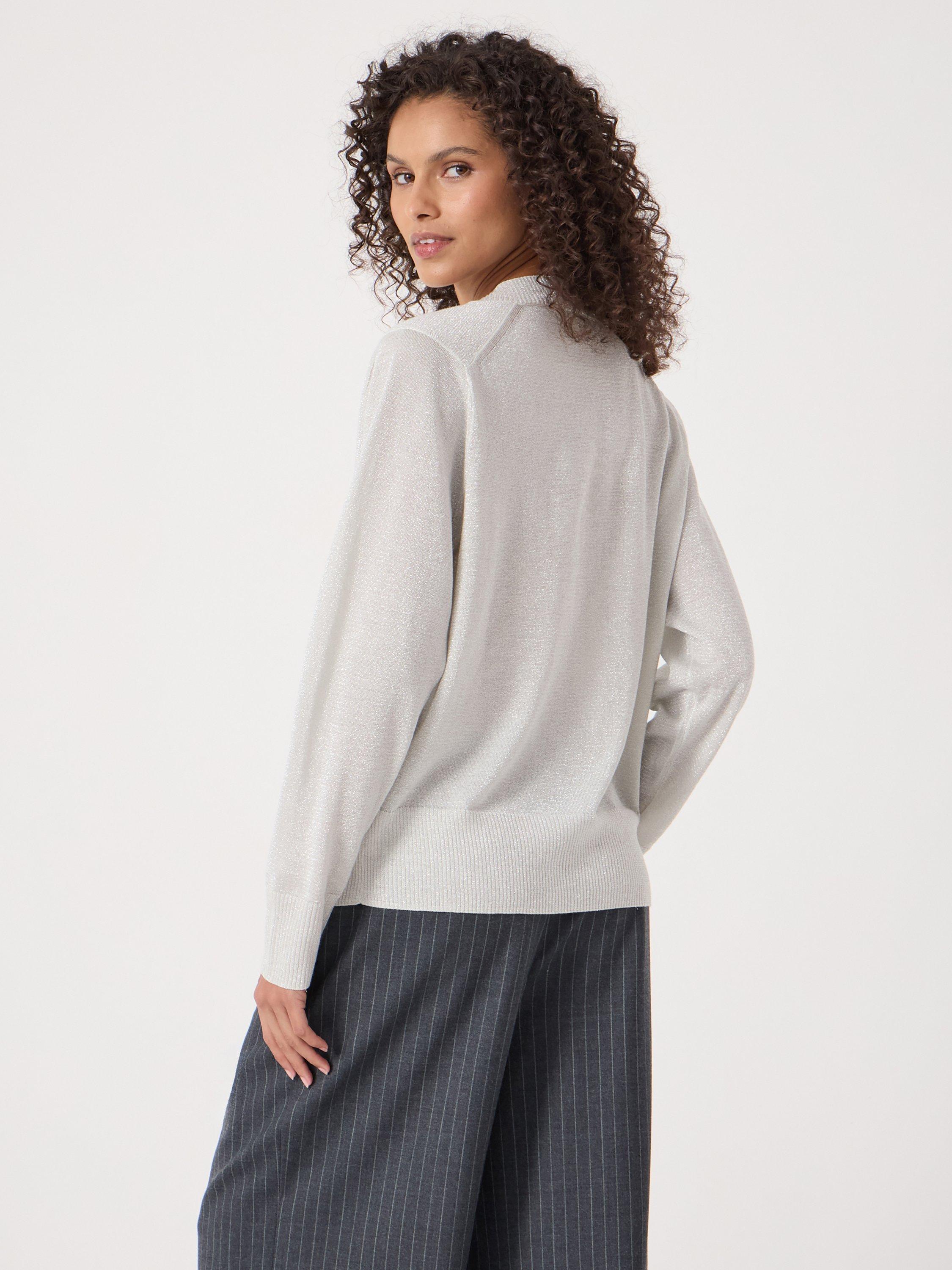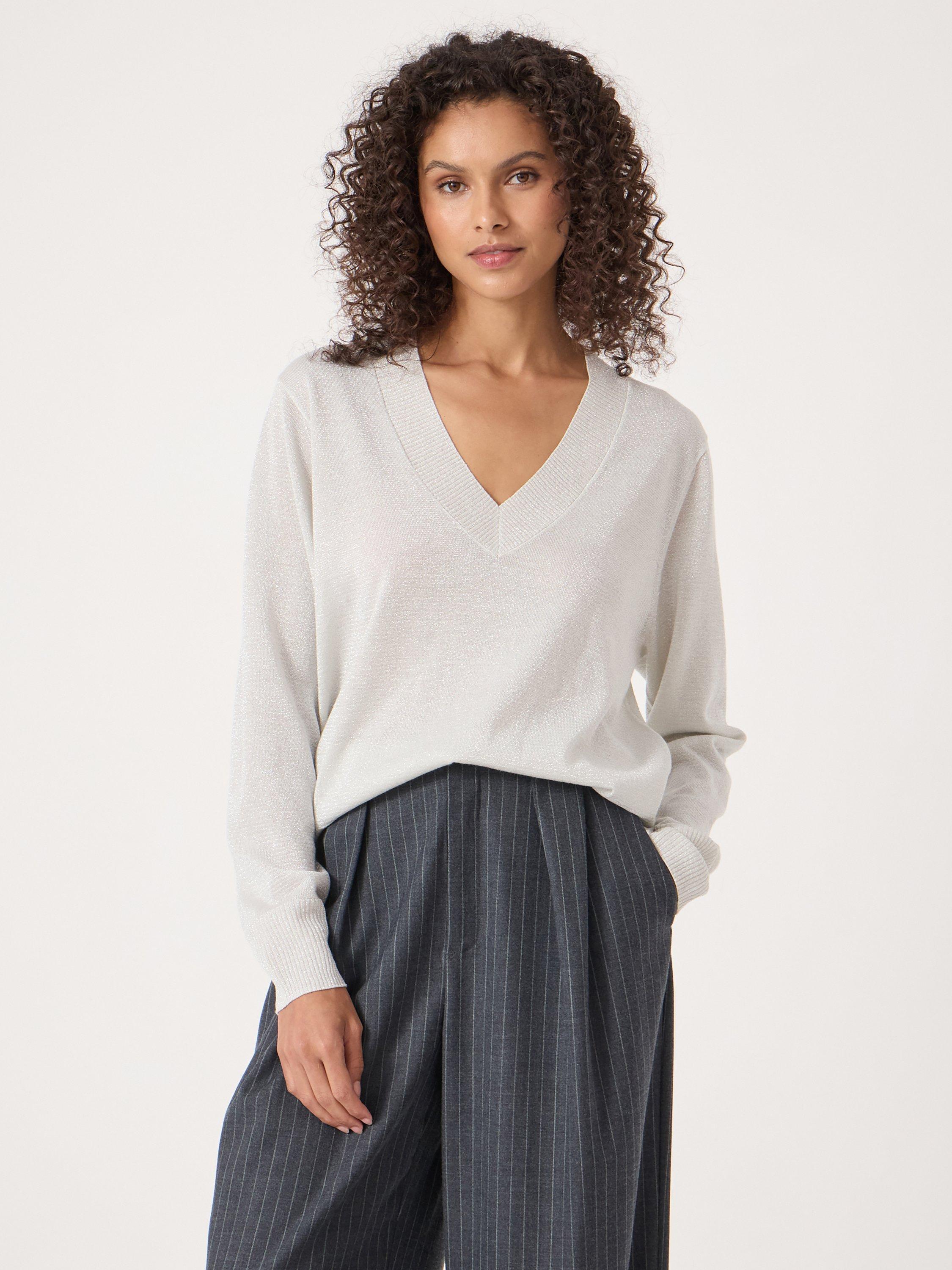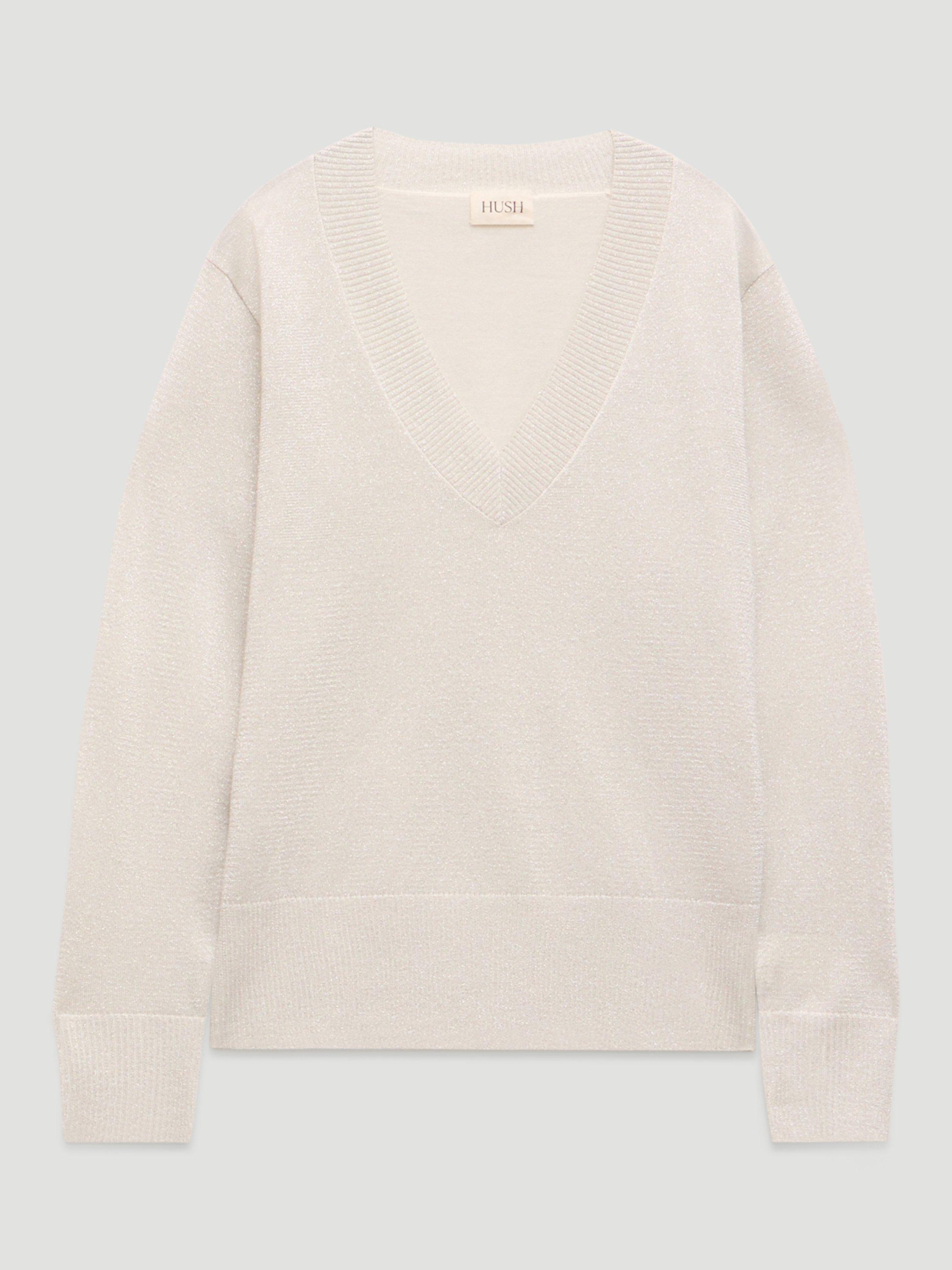 A lightweight V-neck jumper from HUSH. It's fine knit keeps you comfortable, while the metallic finish adds personality. Ideal for layering or wearing solo when you want to feel confident and at ease.