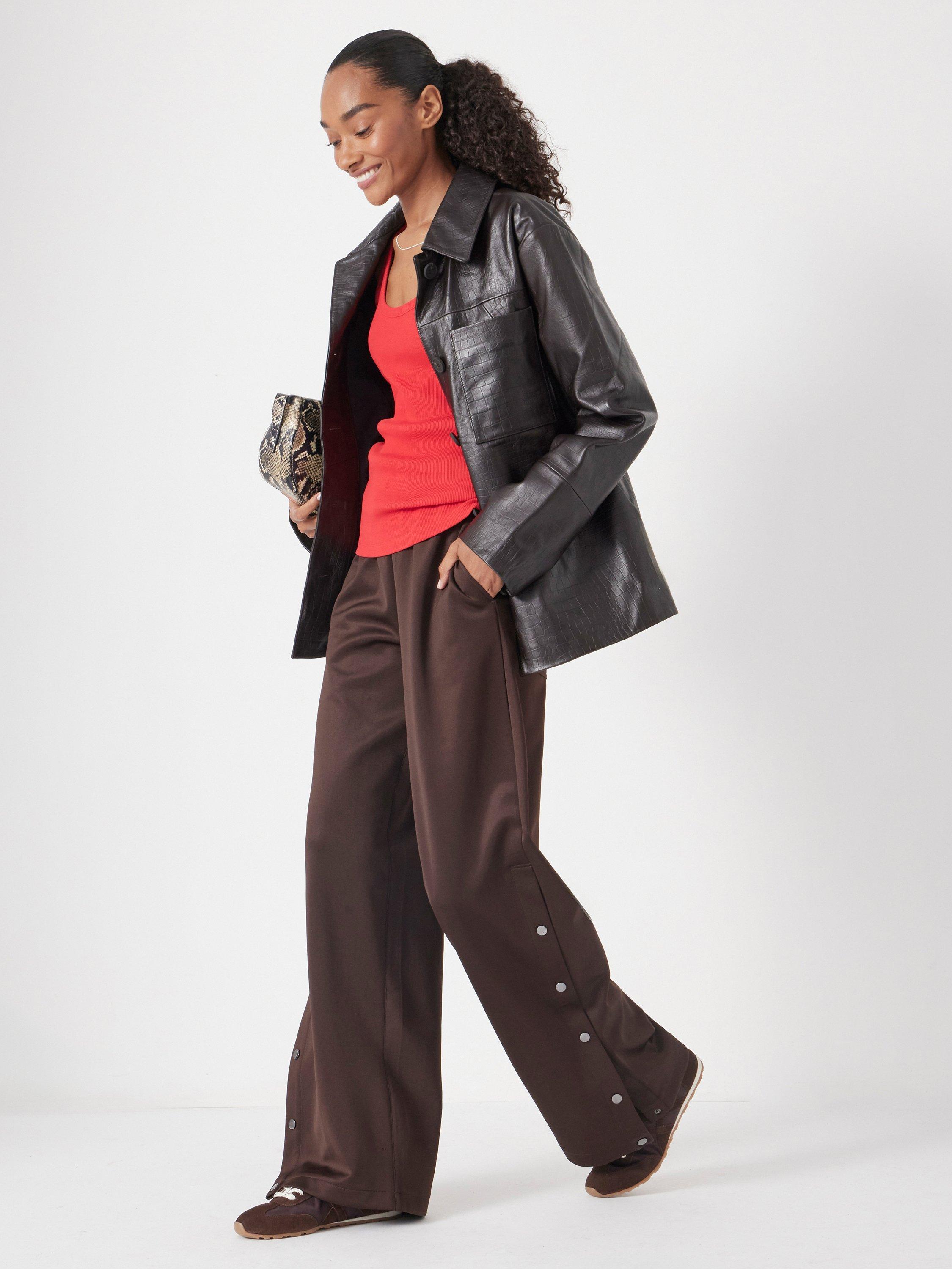 The Harrison joggers have been updated this season with chic tonal poppers on the lower leg. They retain the familiar stretch waistband and a low-sheen finish, offering an elevated take on classic sportswear.
