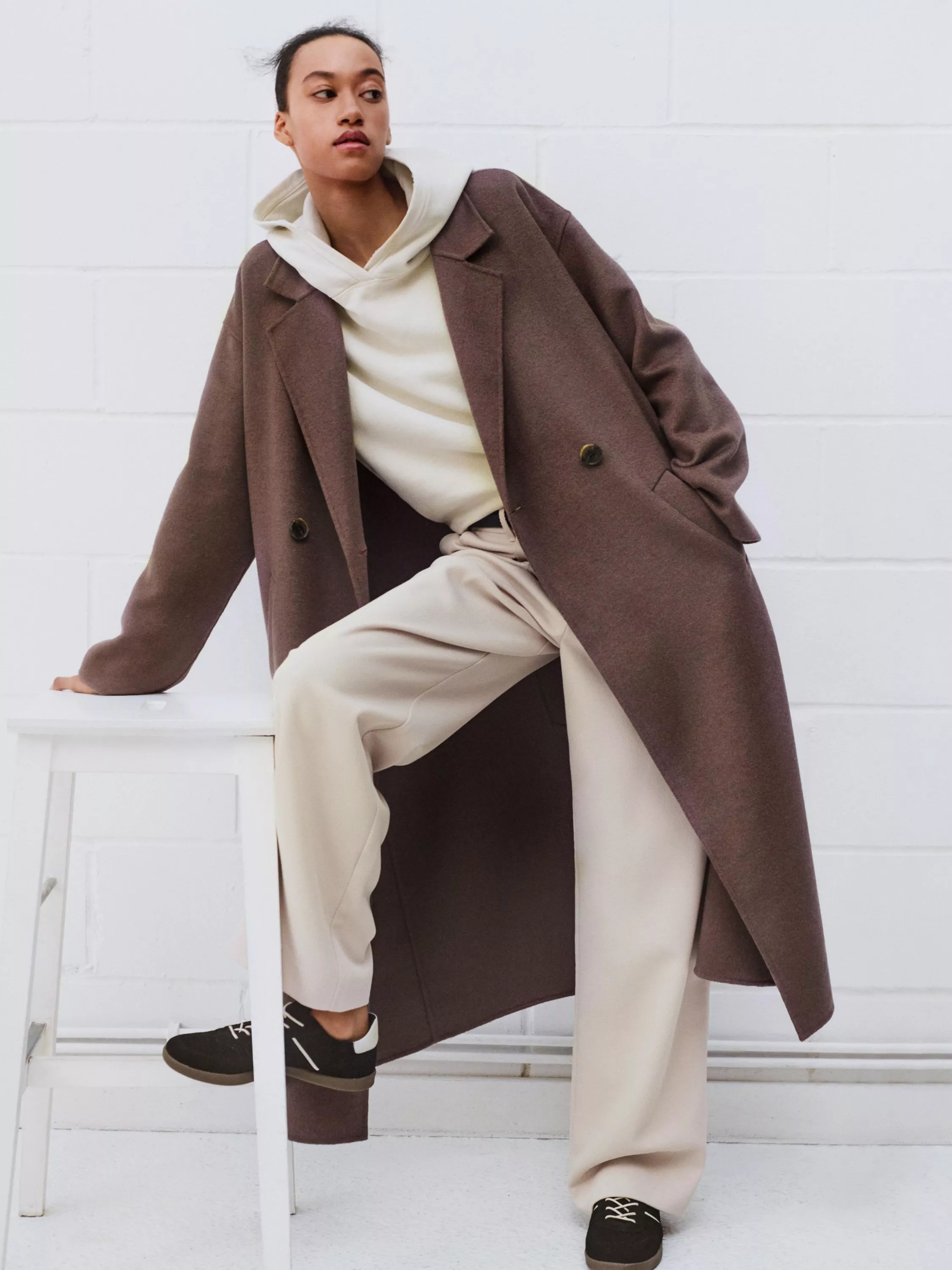With a neat collar neckline, it is blended with wool for quality that will last.