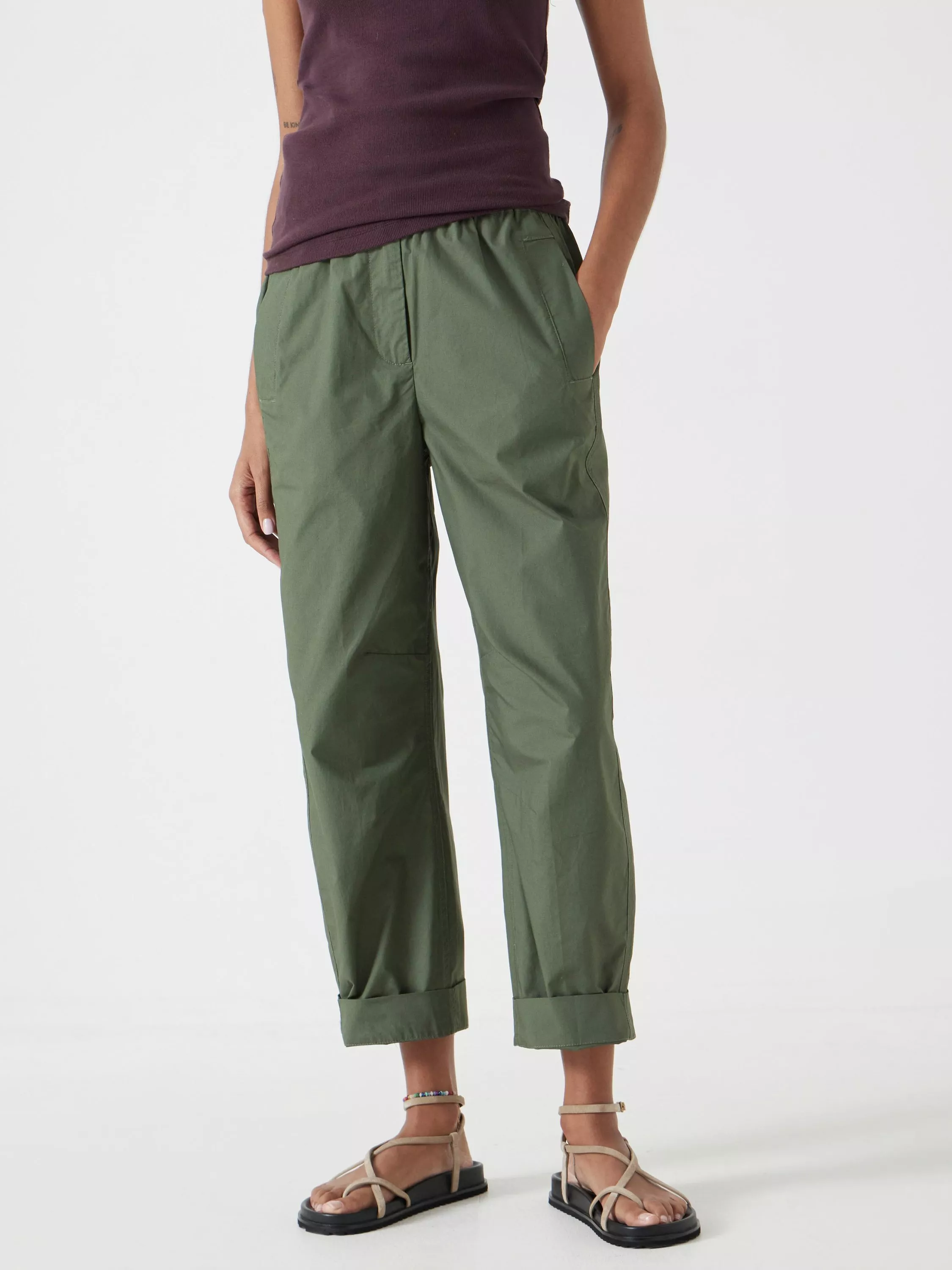 Love the curved, wide-leg shape of barrel-leg jeans? Us too, so much so that we decided to recreate them in trouser form. This pull-on pair is designed with an elasticated waistband for ultimate comfort, and we've updated the fabric to paper cotton poplin so they're lightweight enough for warmer weather.