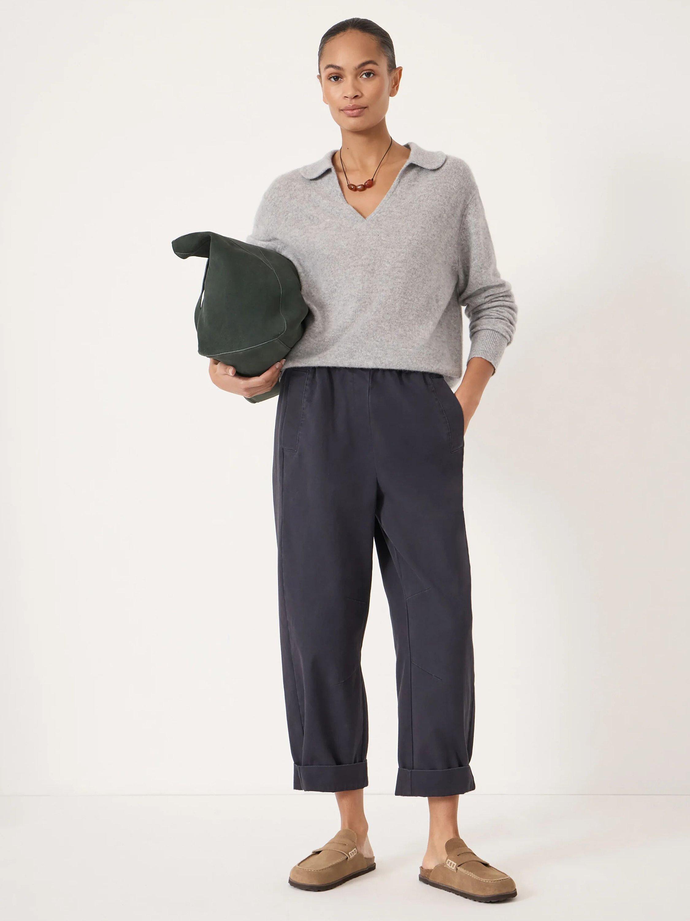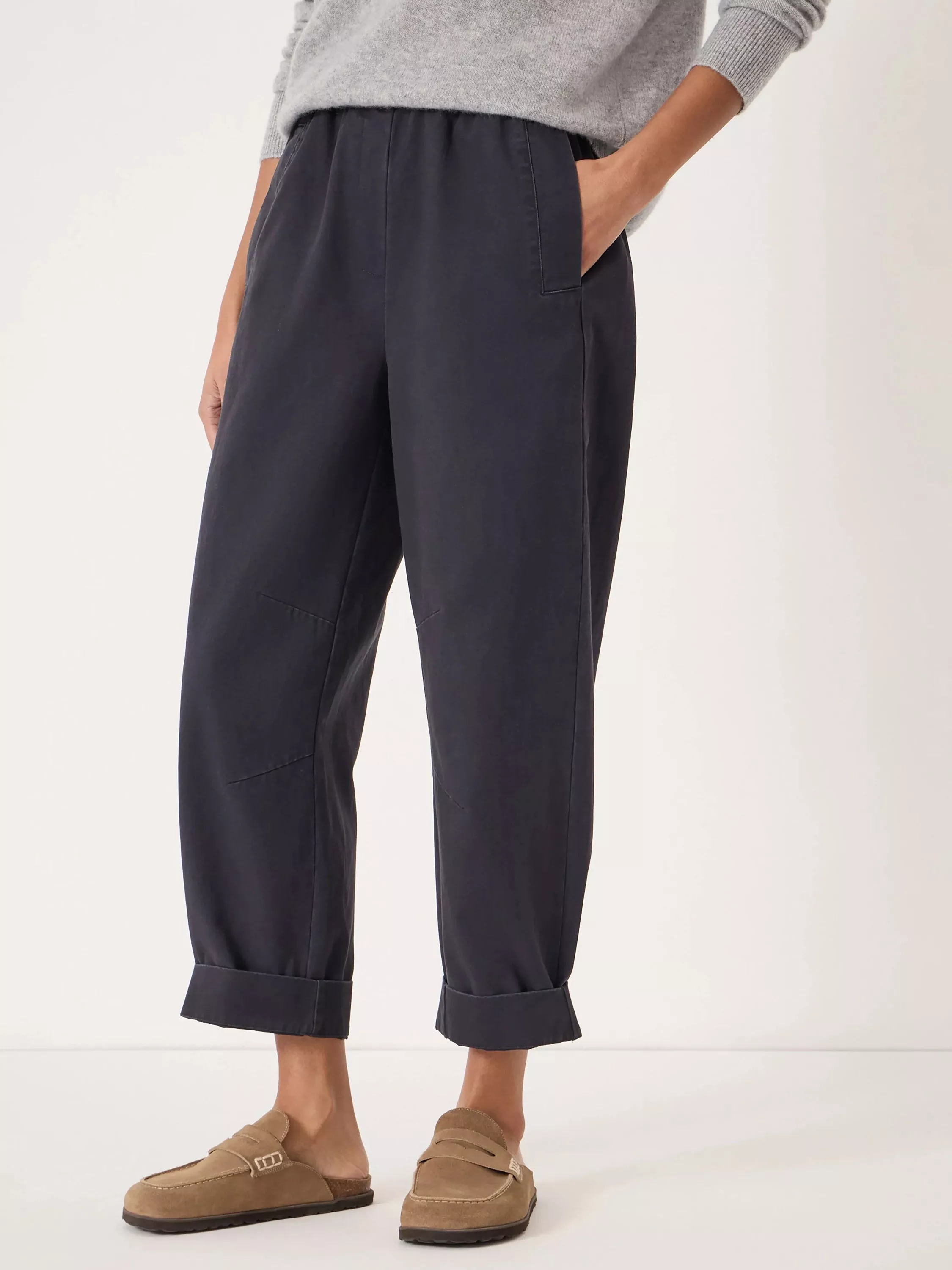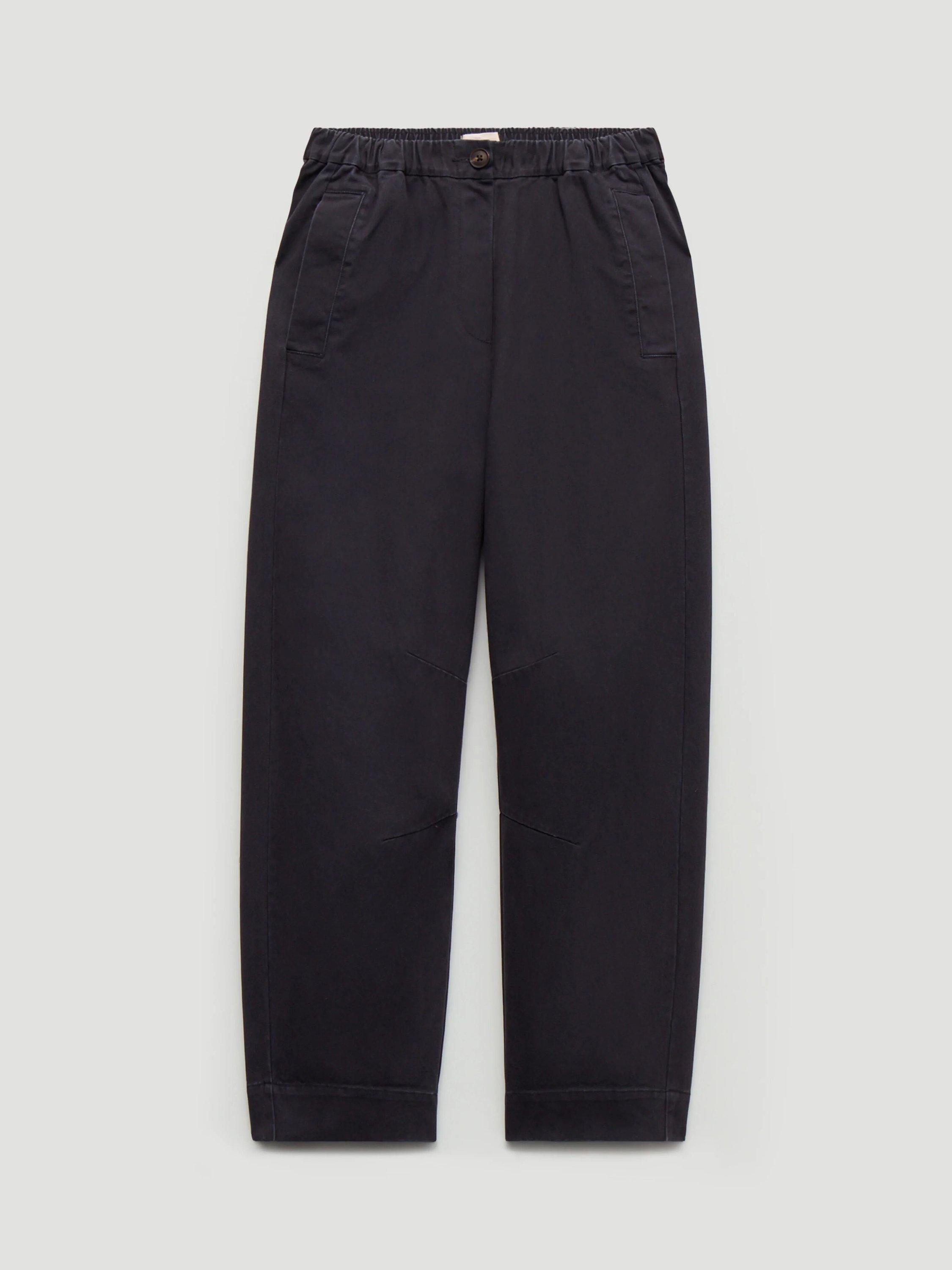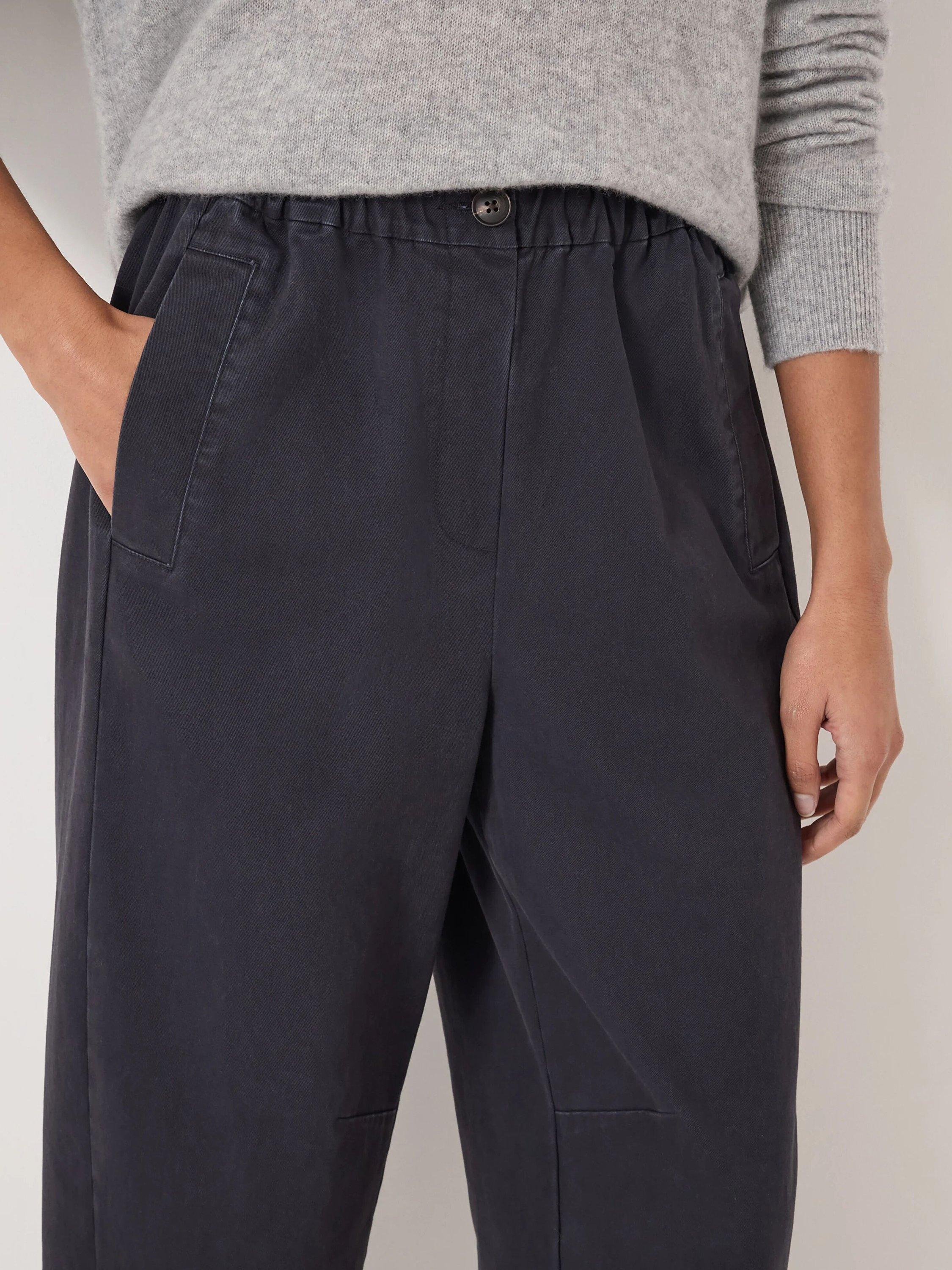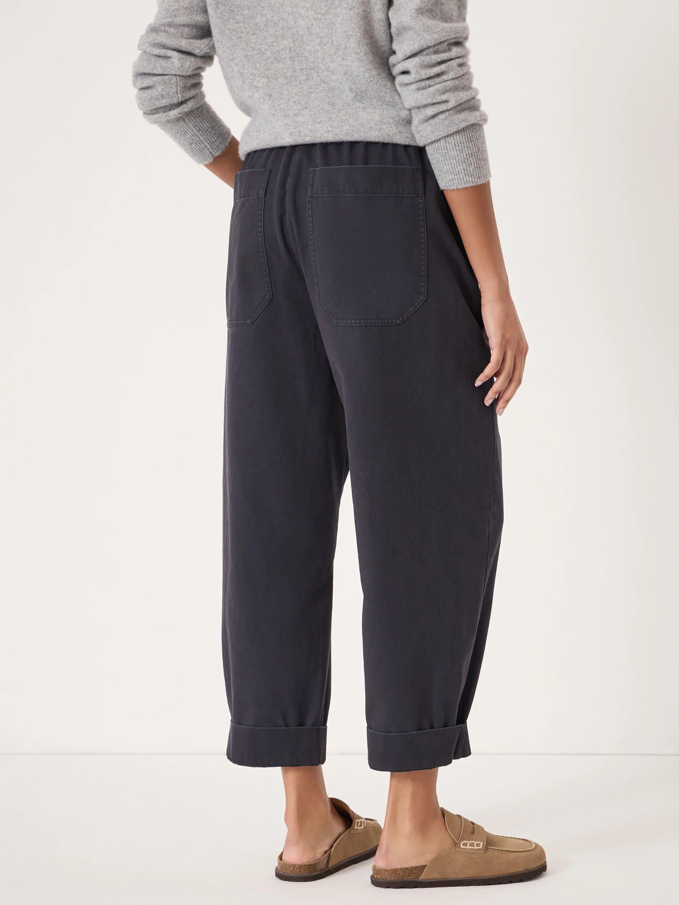 A pair of pull-on barrel-leg trousers by HUSH with a pure cotton construction They feature a mid rise with an elasticated waist and a neatly cropped length.