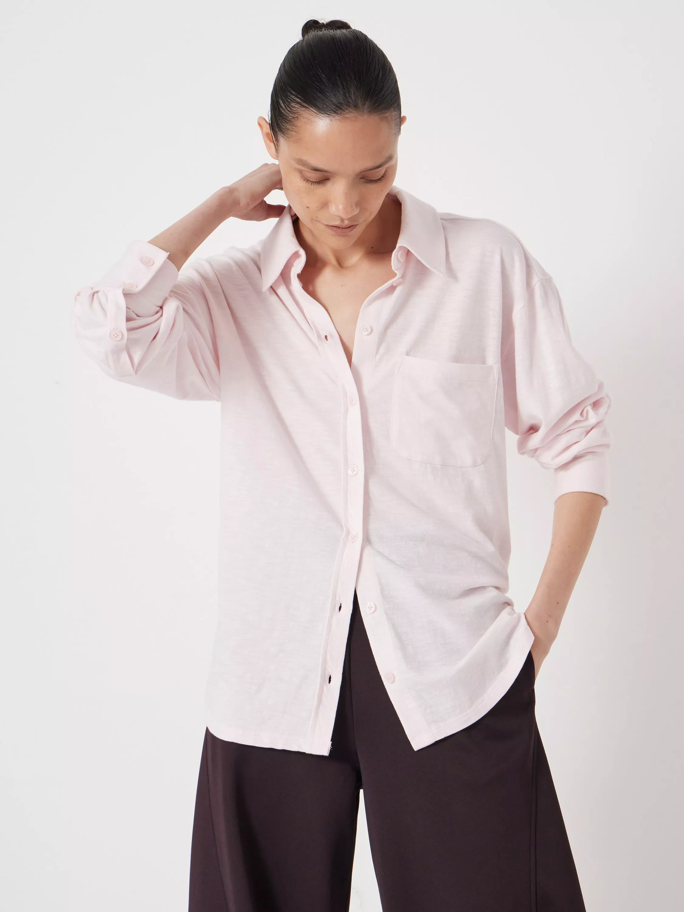 Refreshing your roster, this shirt from HUSH allows for endless styling opportunities, with a collar neckline, long sleeves, and breathable cotton jersey composition.