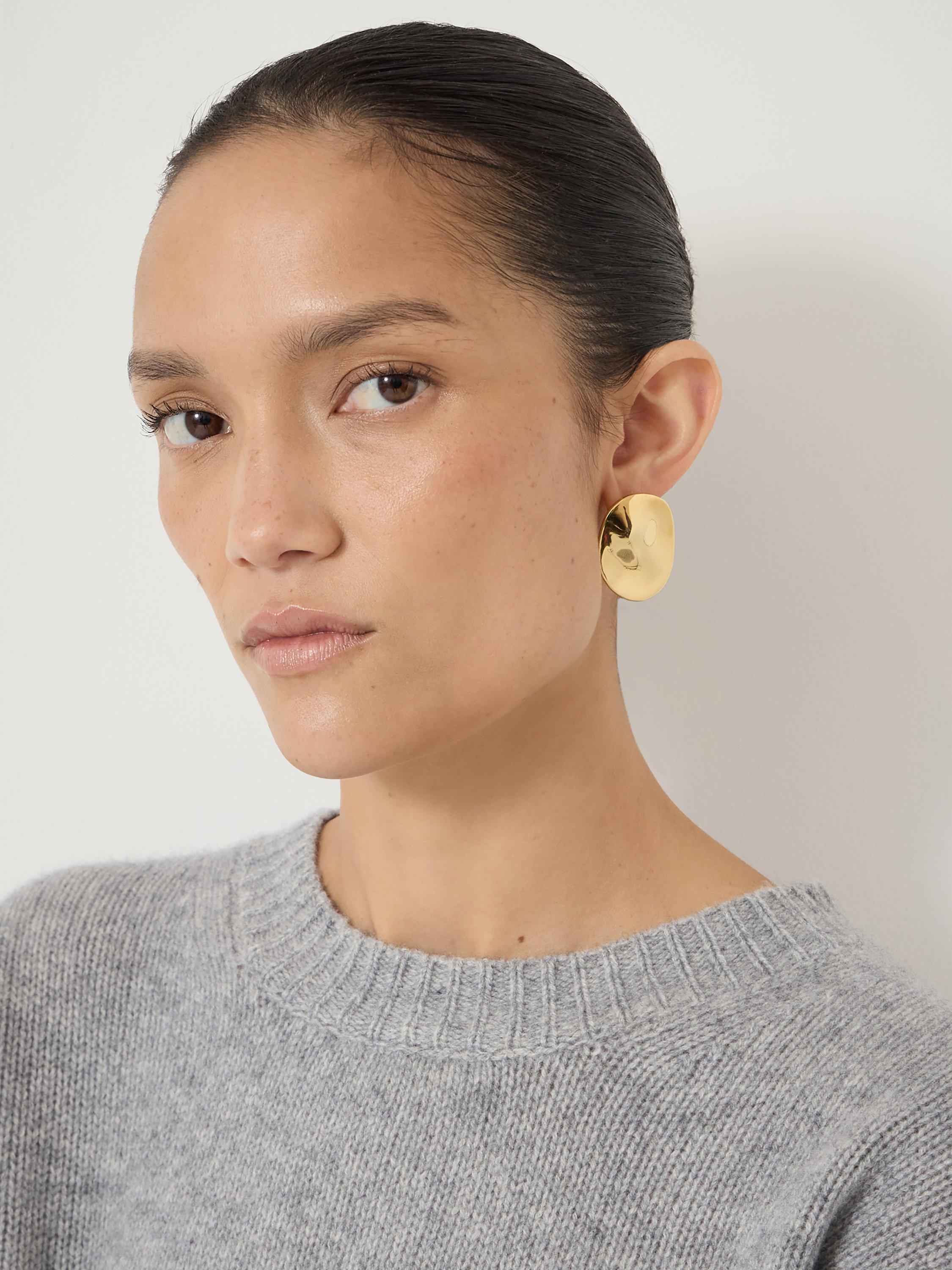 Showcasing a molten effect that catches the light, the oversized gold-plated Jett earrings add a statement feel to any collection. Fastened with a post and bullet back, they are suitable for pierced ears only.
