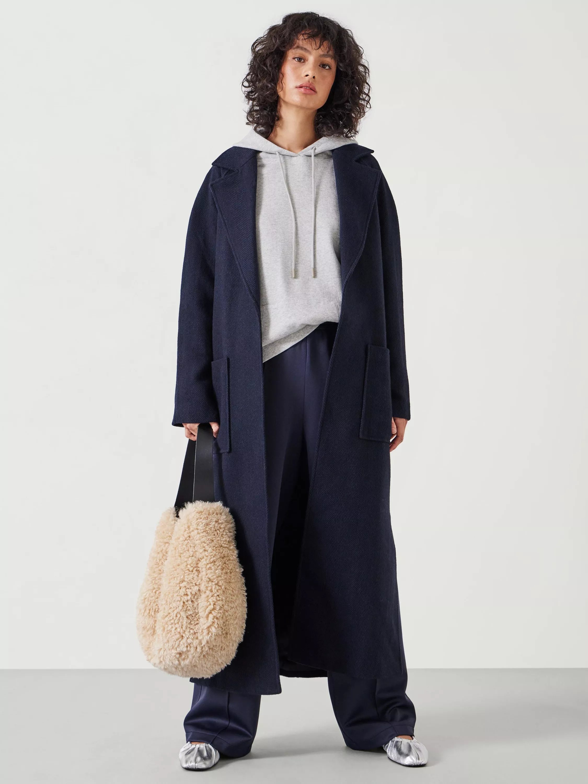 A long-line coat, made from a warm wool blend and cut to a relaxed, single-breasted silhouette. Complete with a self-tie fastening, oversized patch pockets, double belt loop detail and side splits. Fully lined.