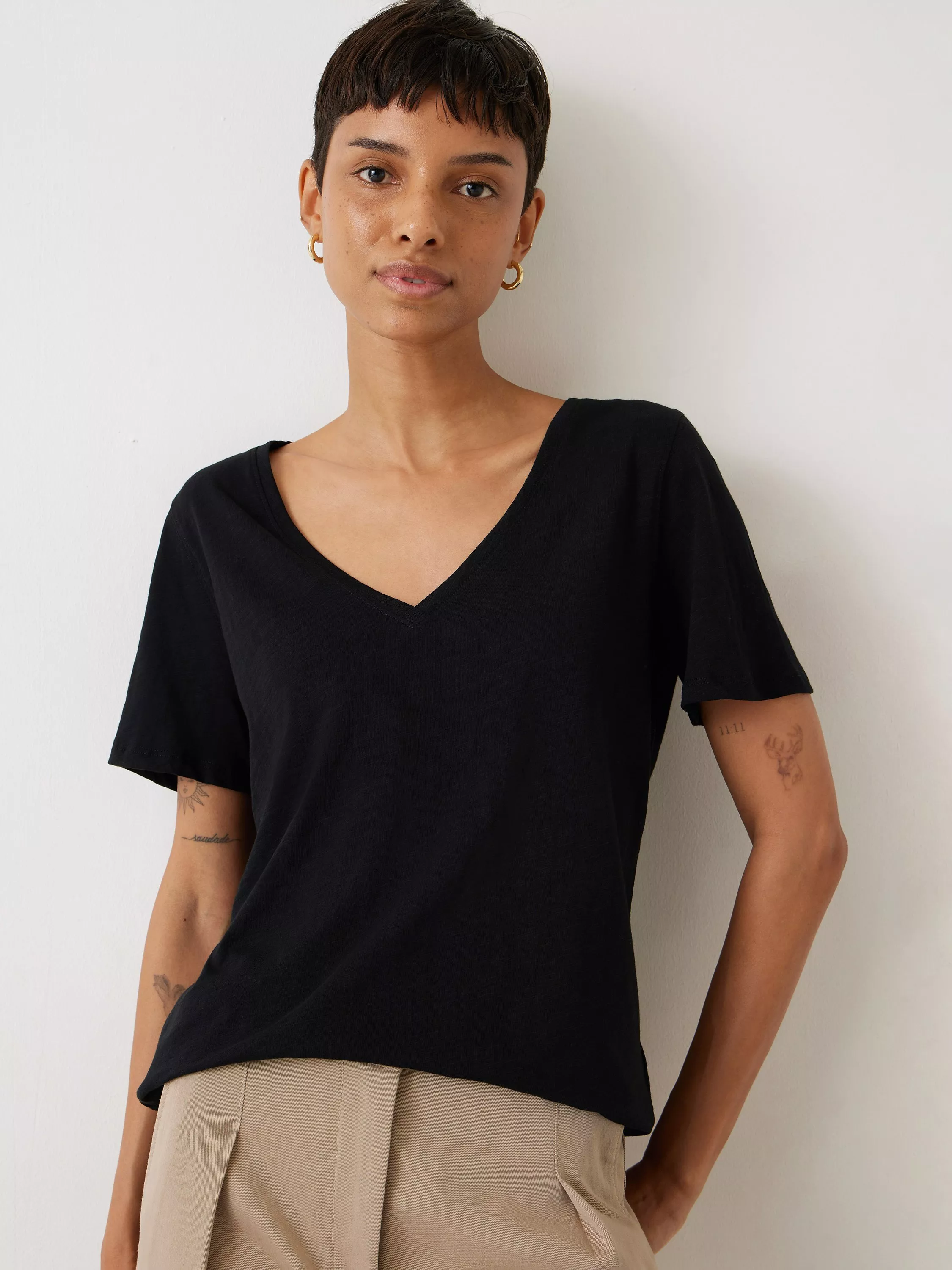 Made from soft organic cotton to a relaxed fit for comfortable wear, its v-neckline and split hem give a contemporary finish that can be worn solo or as a layering piece.