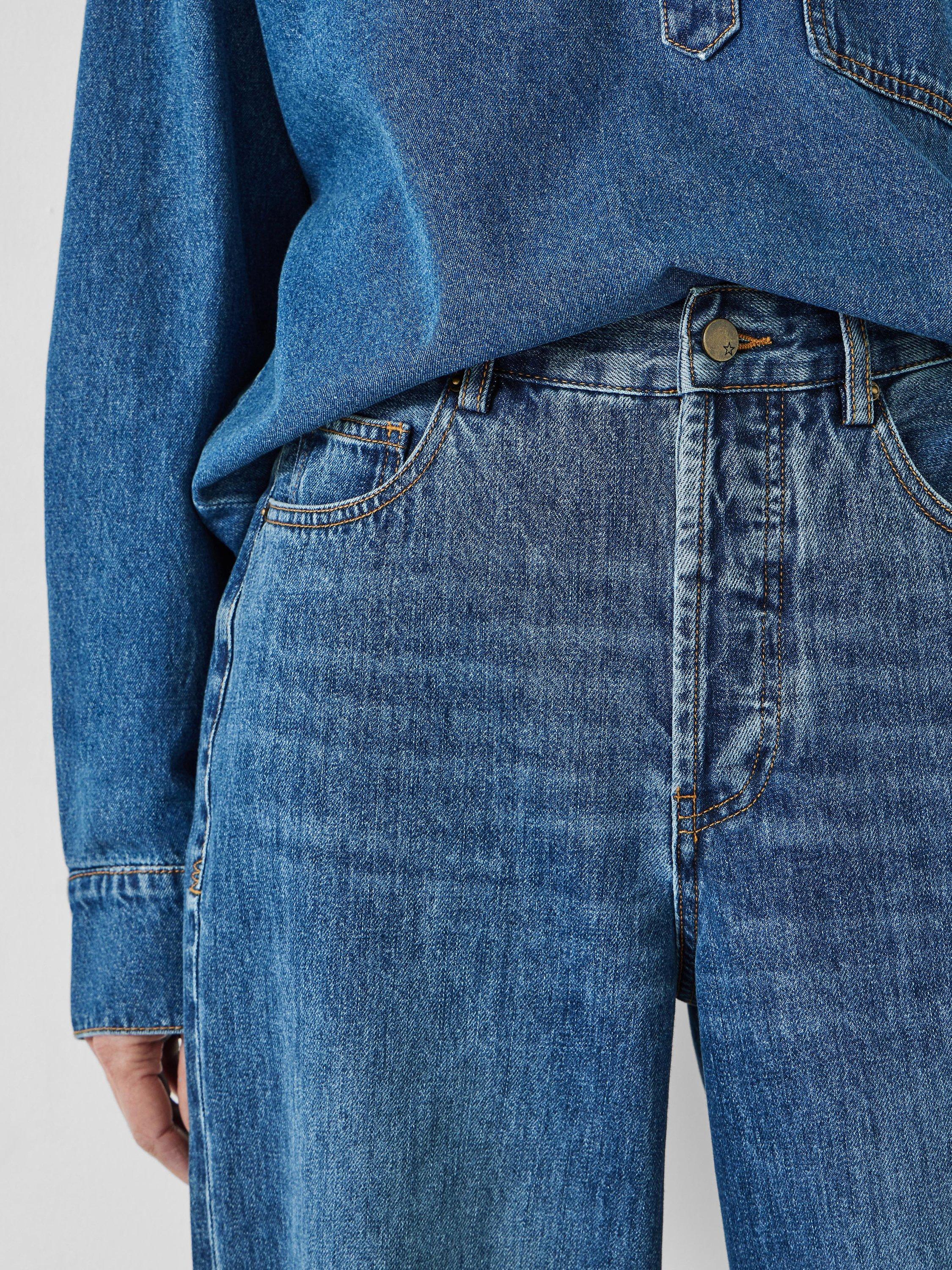 Boasting a relaxed, flattering wide-leg silhouette, these mid rise jeans from HUSH have a timeless denim finish.