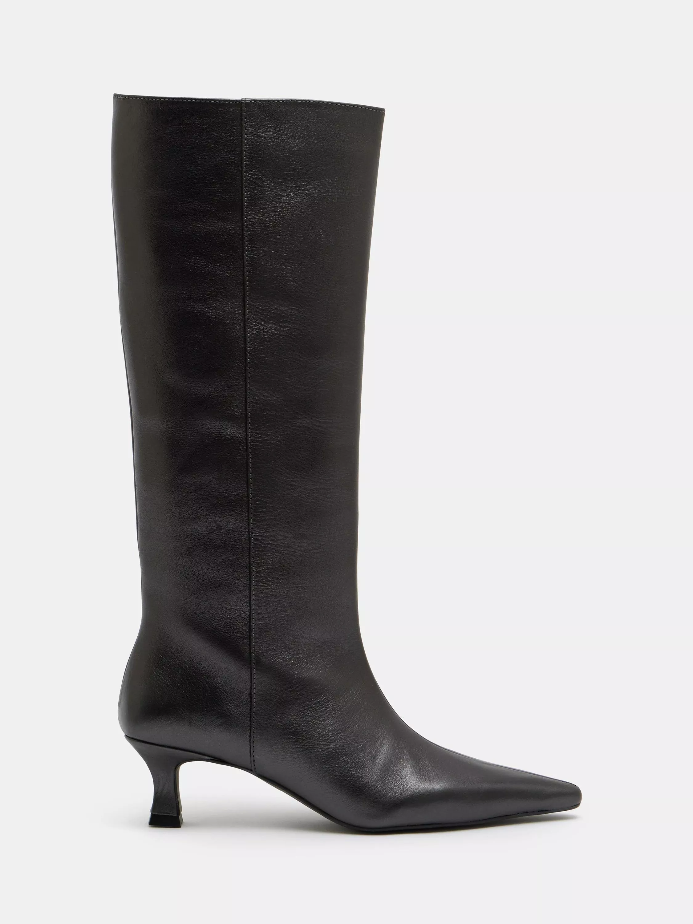 These Katlynn knee-high boots from HUSH are designed with a comfy kitten heel you can actually walk in. The generous fit around the calf gives them an effortlessly cool feel whilst the pointed toe adds a polished finish.