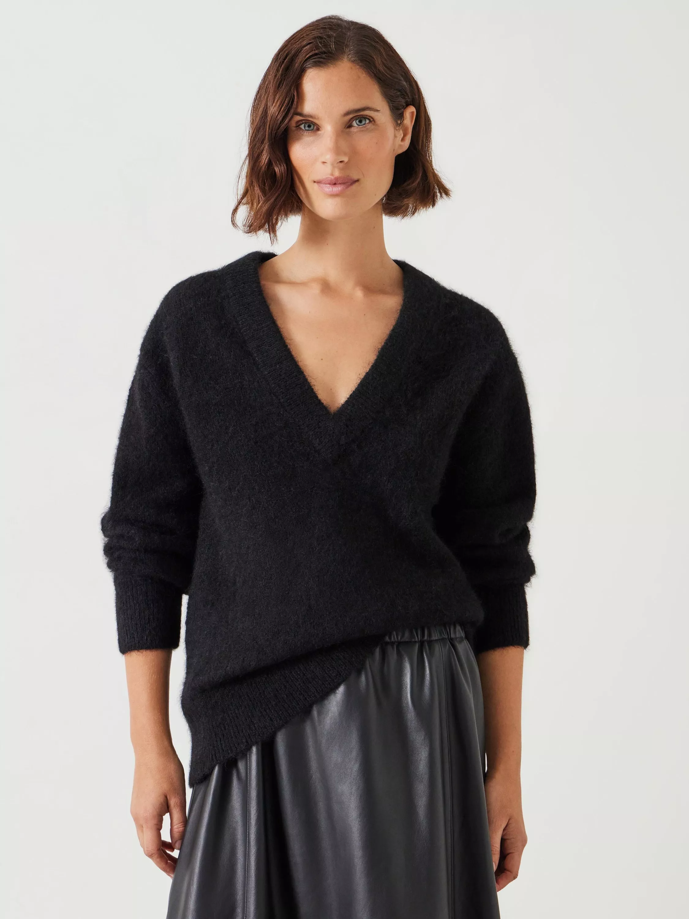 Woven from an alpaca-rich blend, this jumper is super-soft, super fluffy and super cosy - everything you look for when investing in new knitwear. The oversized fit and deep V-neckline give it an effortlessly laid-back feel, and the longer length means it's easy to layer. Tuck it into a leather skirt for a cool contrast in textures.