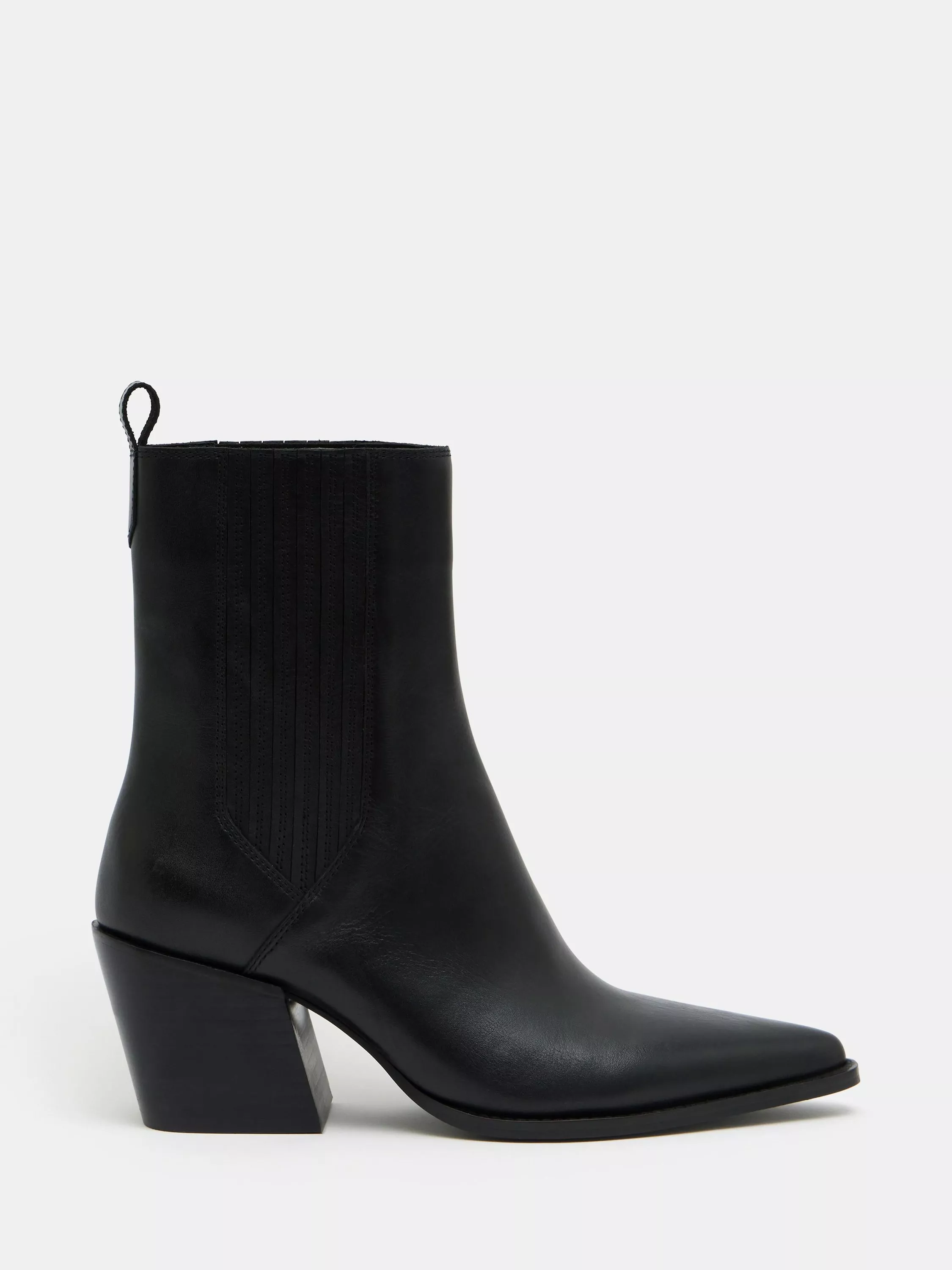 These Western boots from HUSH are a sharper take on the classic Chelsea silhouette, with an elongated toe and angular block heel. Made in smooth leather, they're the kind of shoe you can grab when your outfit needs a touch more polish. Not super tight around the ankle, you can add chunky wool socks on especially chilly days.