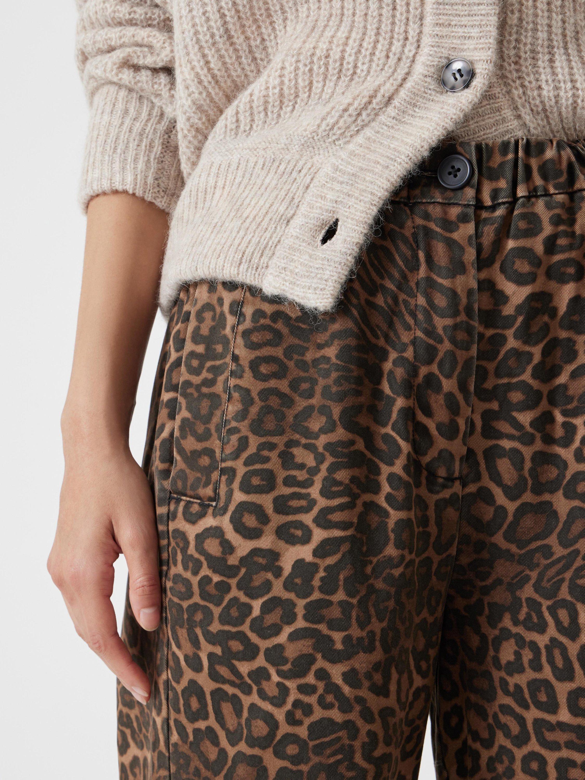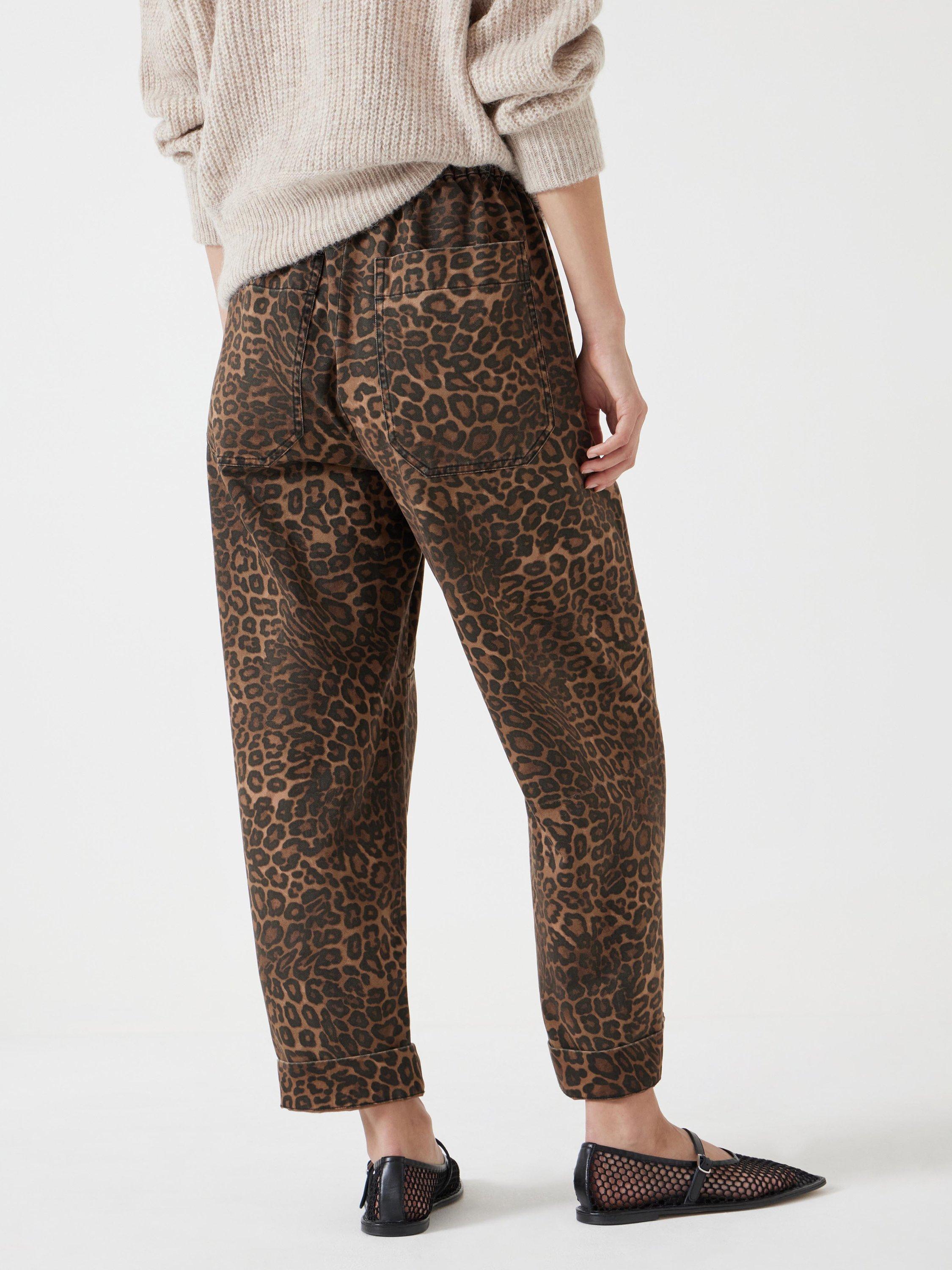 Perfectly tailored to a streamlined brief, this pair of pull on barrel leg trousers by HUSH are made from leopard printed cotton and sit naturally on the hips.