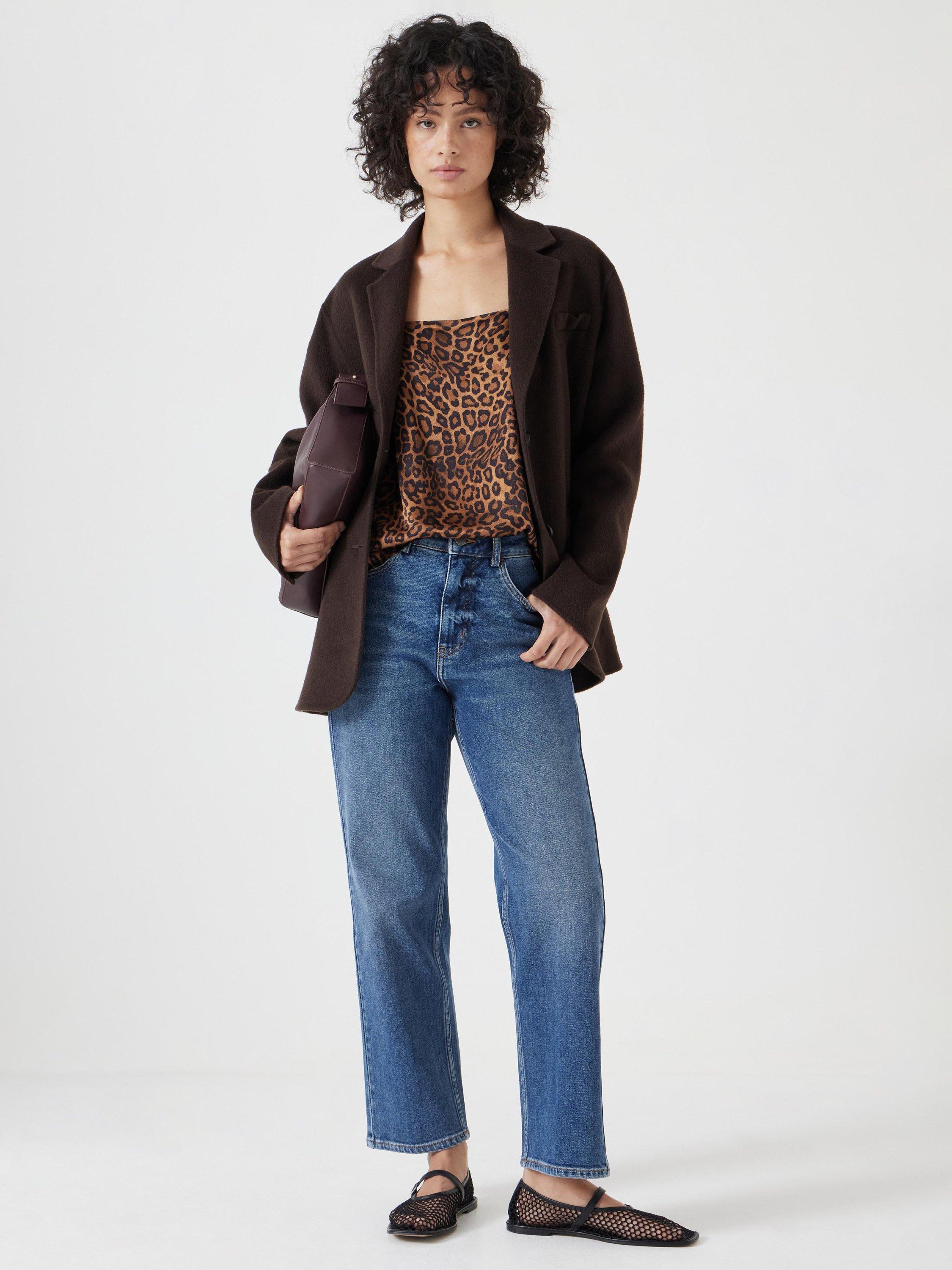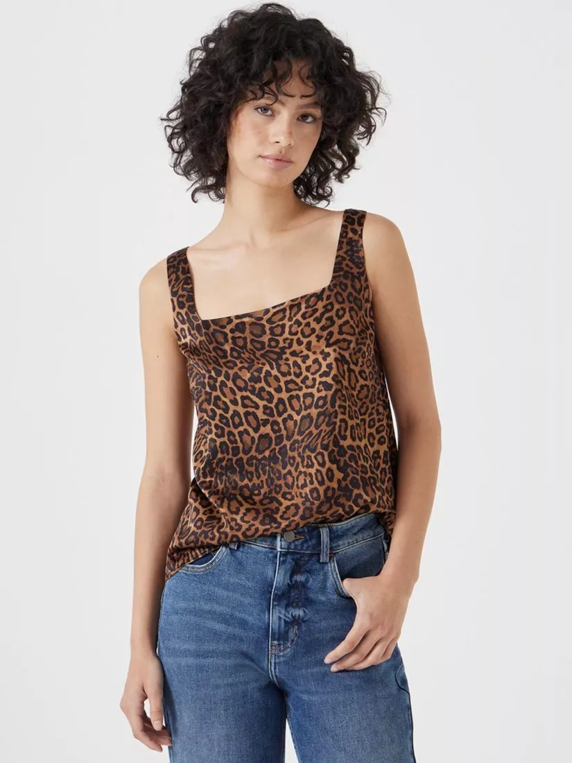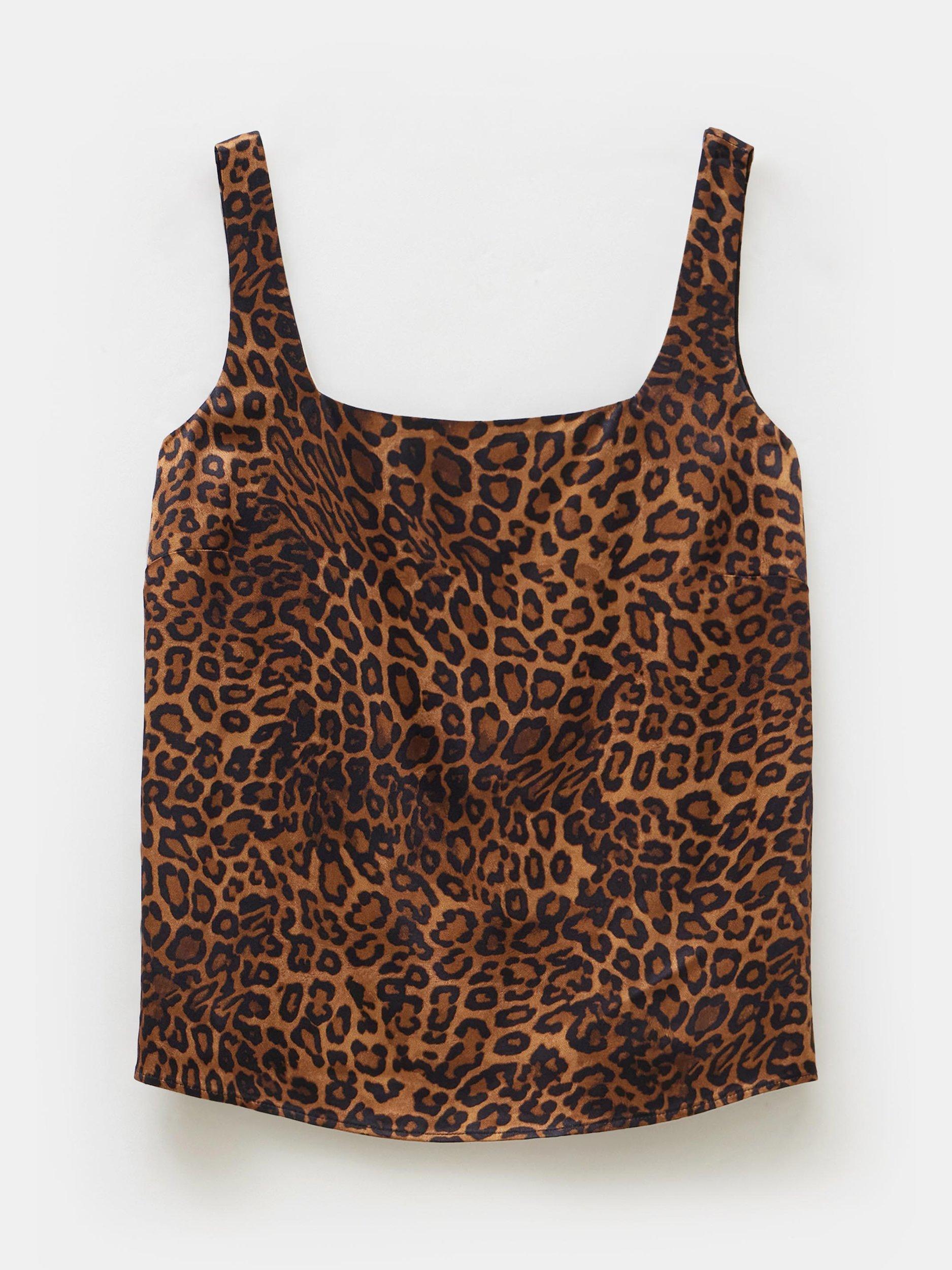 This top is fully lined for added comfort and durability. The square neckline adds a modern twist to the classic design, while the bold leopard print brings a stylish, eye-catching element.