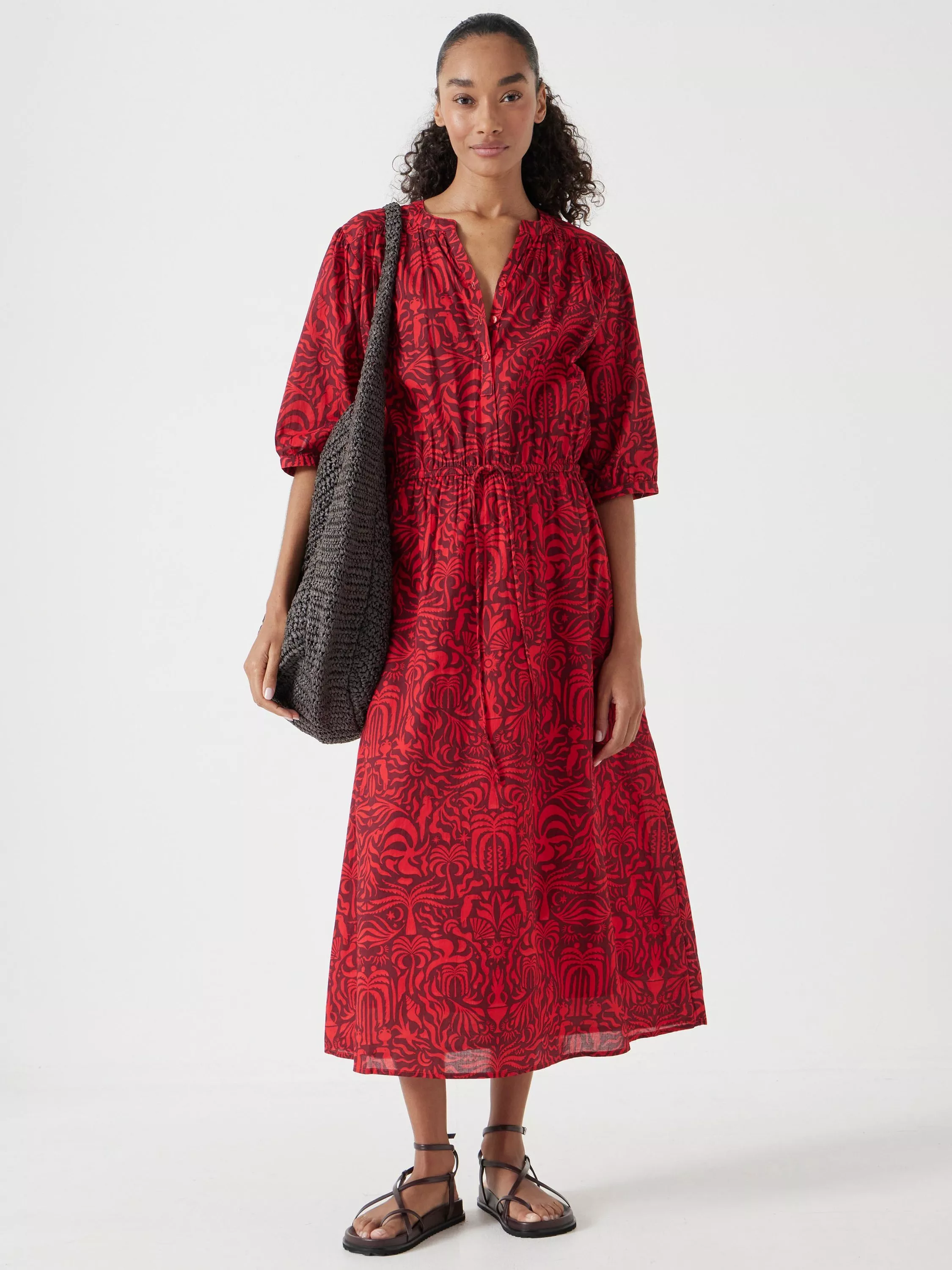 What's giving us joy this season? Besides the glorious sunshine, it's this Lhea midi dress from HUSH which automatically brings a smile to our face with its vibrant red print. Made in lightweight cotton voile that drapes beautifully, it features a drawstring tie at the waist for more ways to style it.