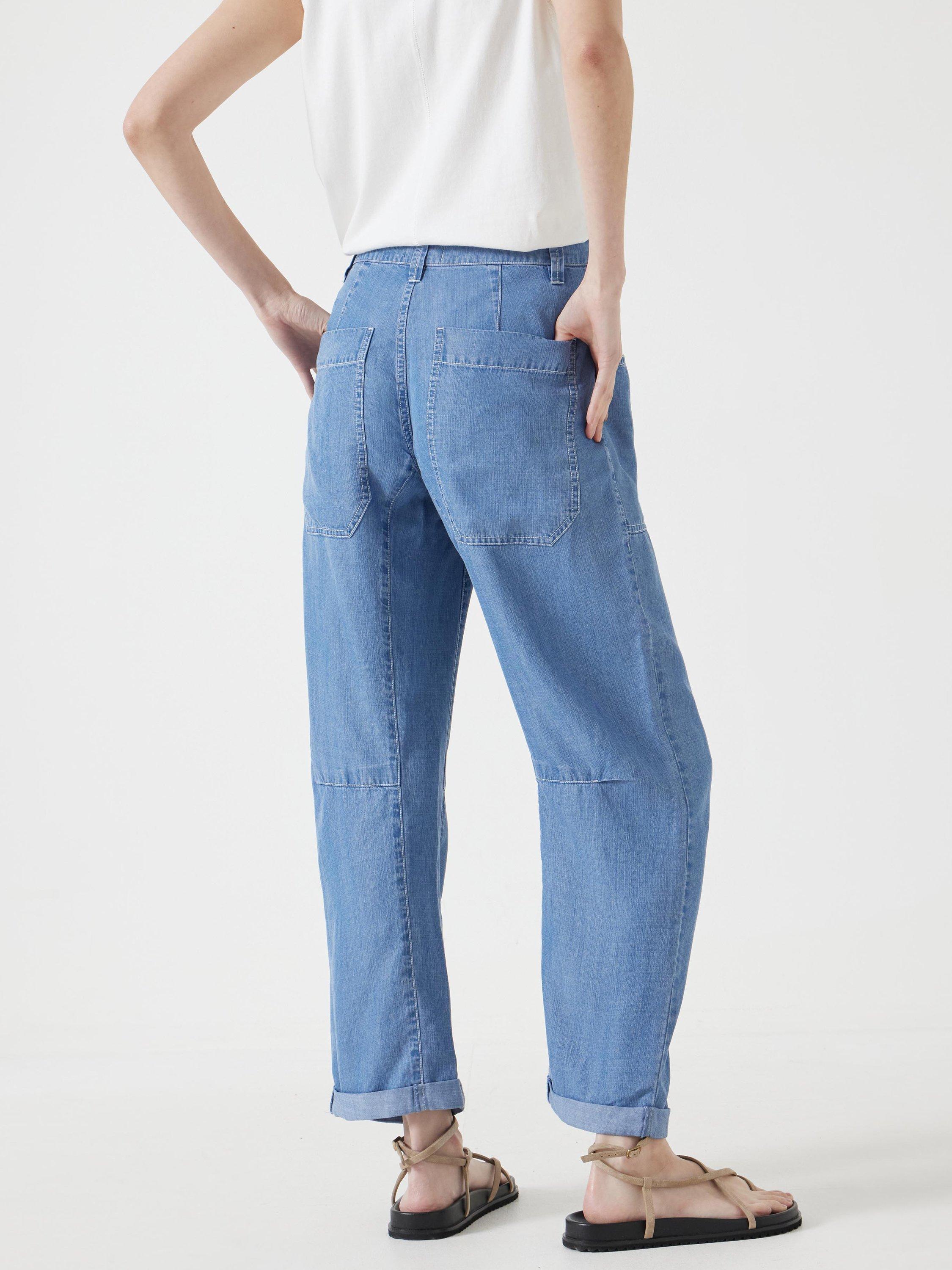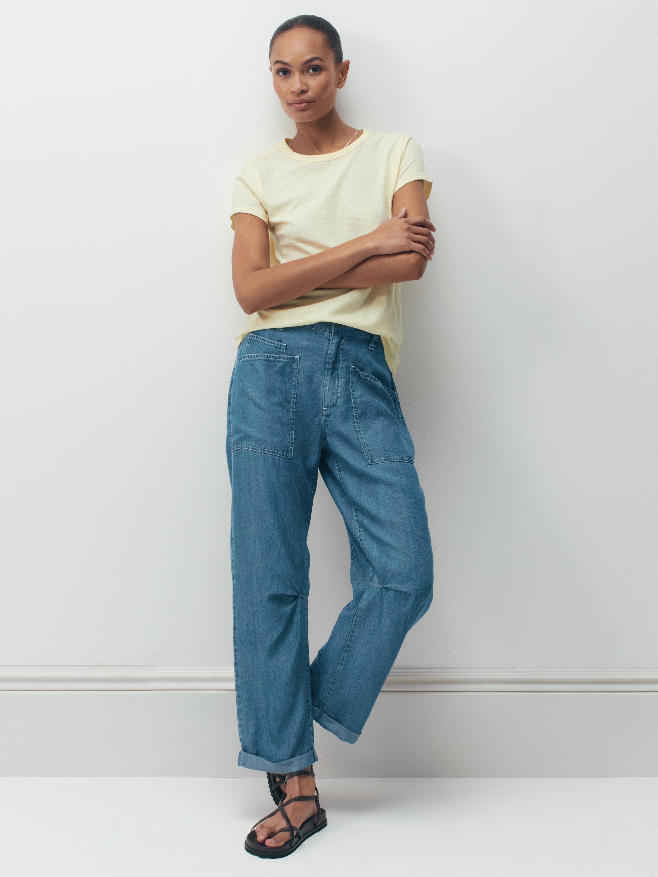 Love the barrel-leg fit of Hush's Cordi trousers? Look no further as they've created an identical pair in a lightweight chambray fabric to make the switch to summer.