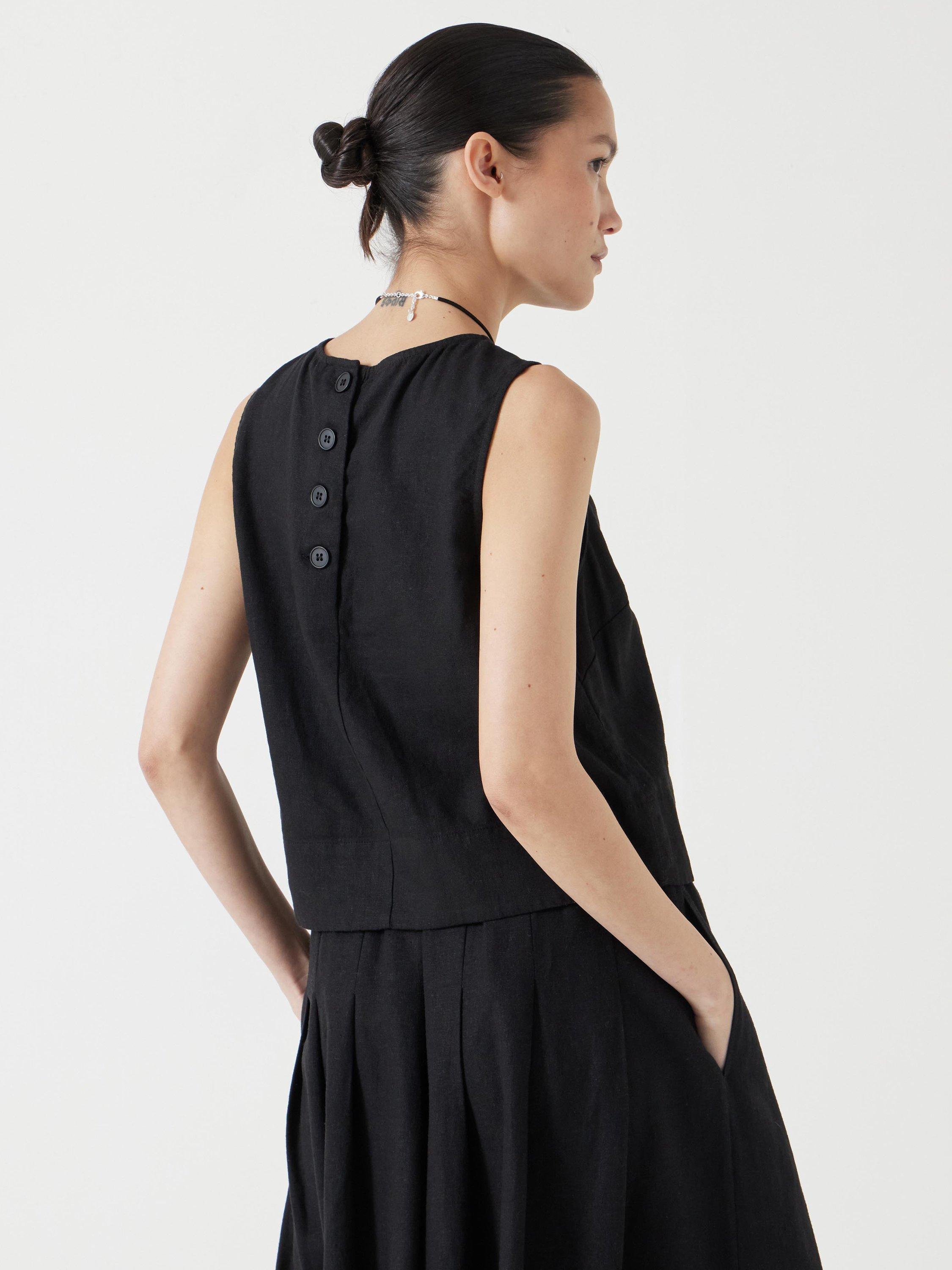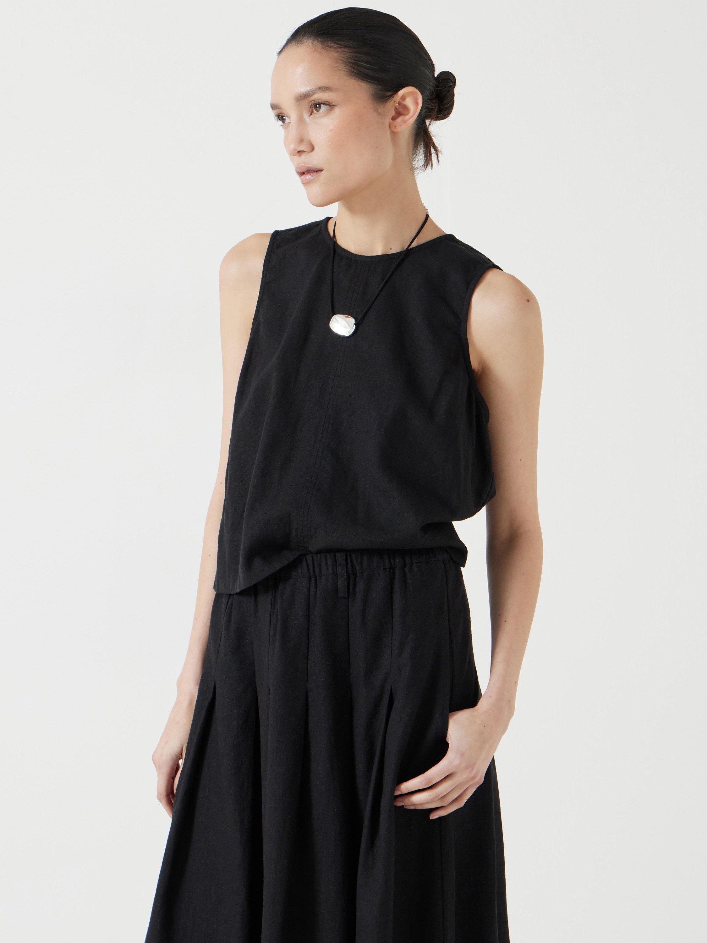 HUSHLinen Blend Vera Shell Top containing LENZING™ ECOVERO™ Viscose, Washed Black