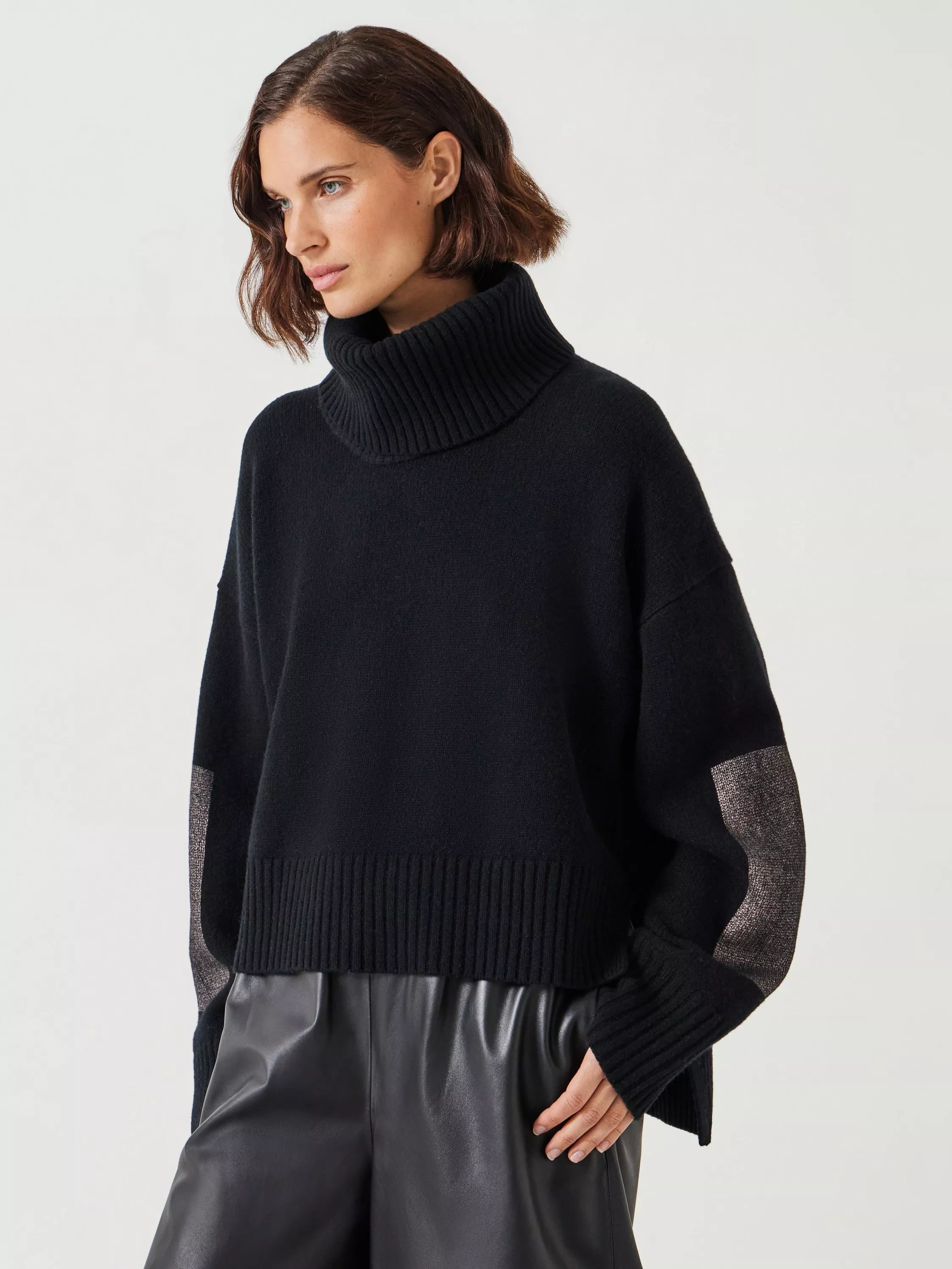 We're excited about this one. Meet Livvy: the merino wool jumper that comes with a detachable roll neck. This clever tweak gives us two different looks in one, and we're in love with the on-trend metallic patches to the sleeves. As for the fit? Oversized all the way.