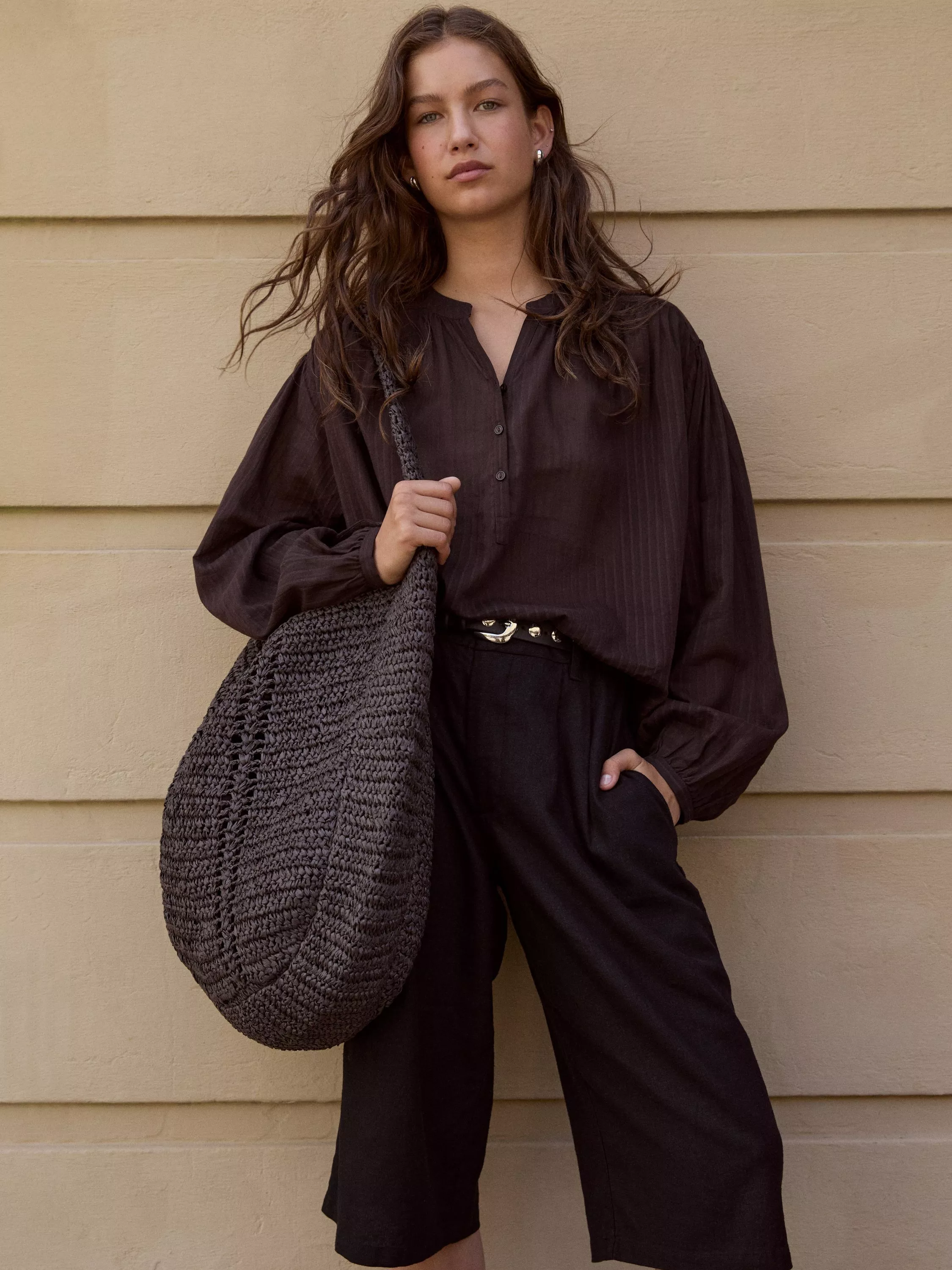 Pleated Bermuda shorts in a soft linen-viscose blend so they're drapey rather than crunchy. Tuck a simple tank top into the waistband to show off all that detail, and the cropped length makes them perfect for this time of year.