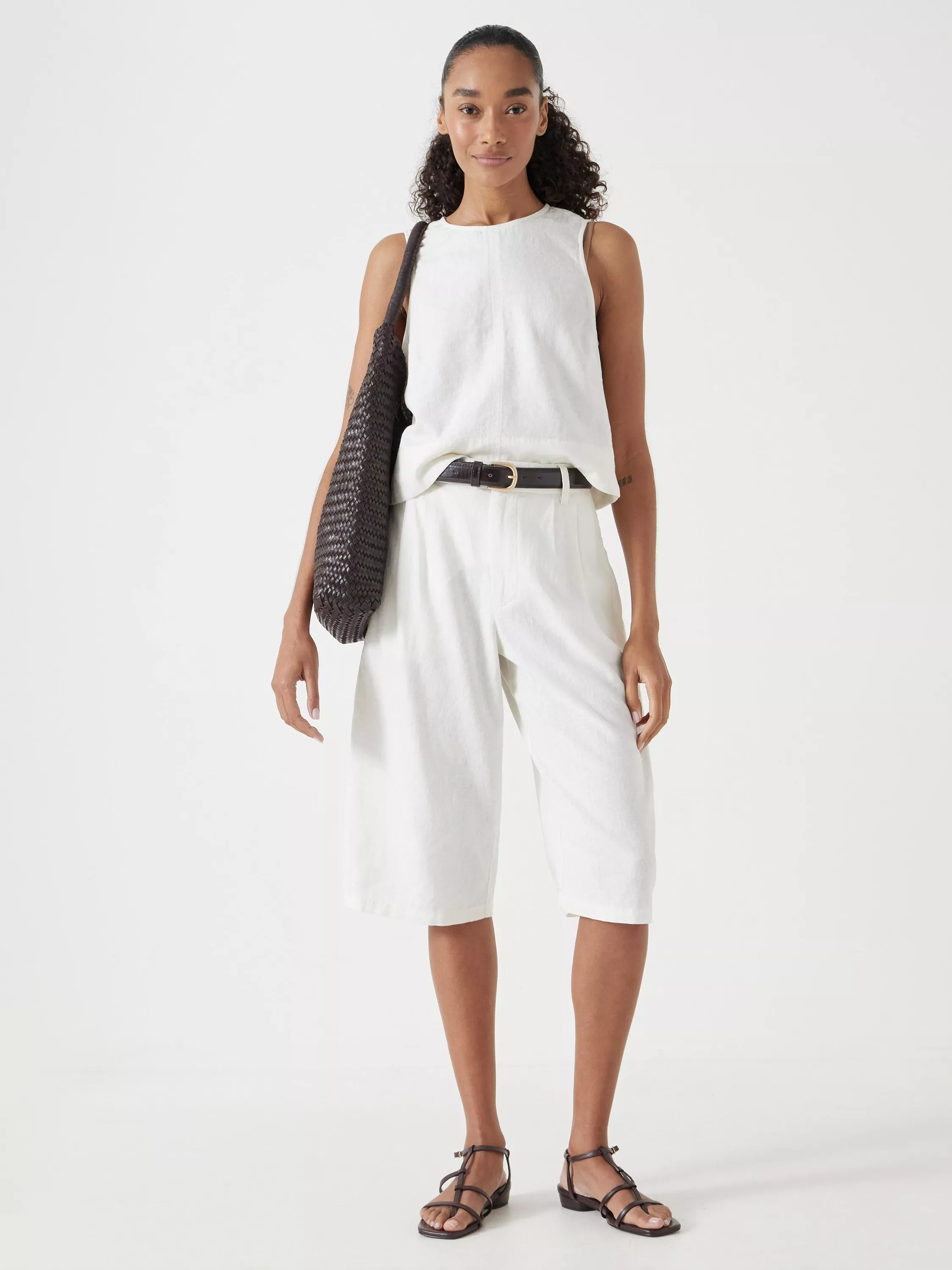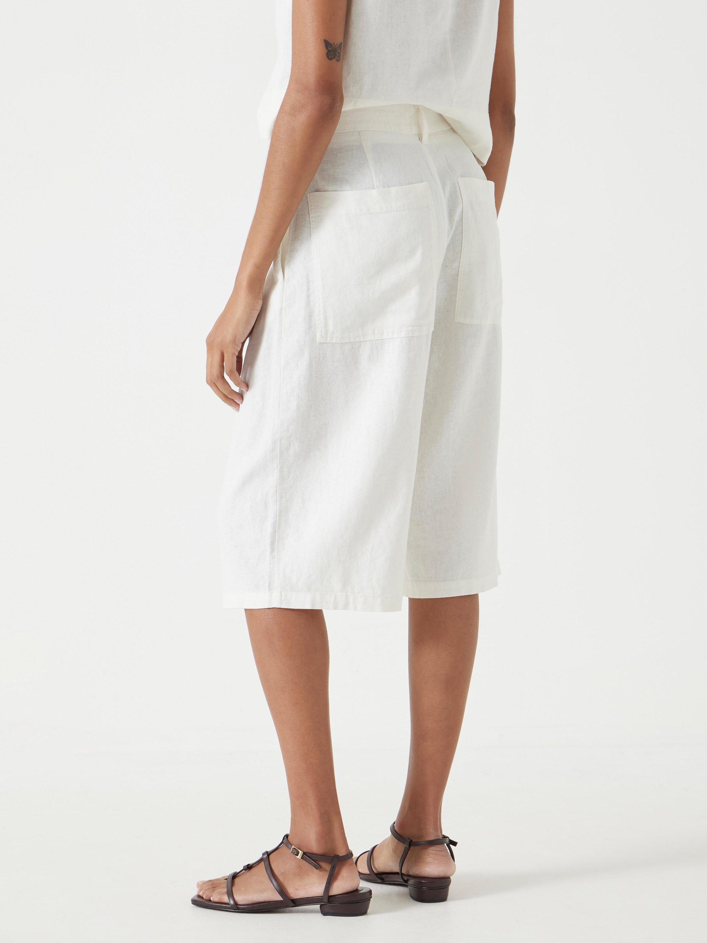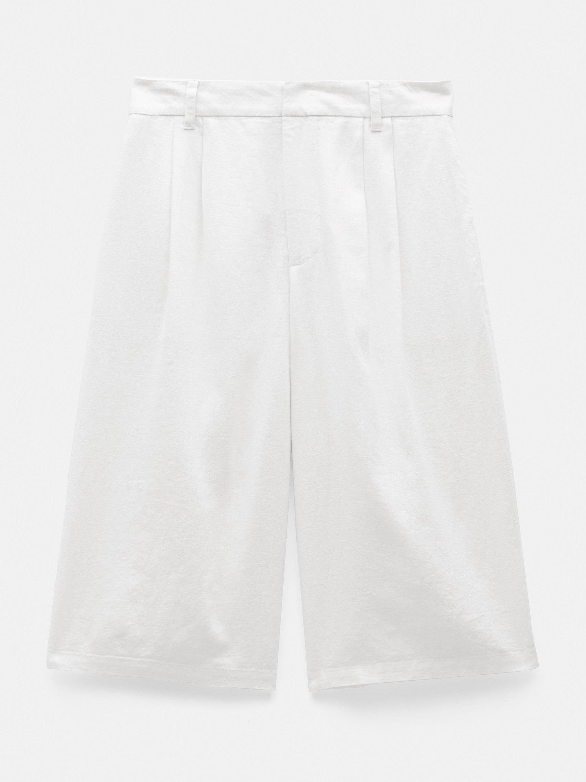 Pleated Bermuda shorts in a soft linen-viscose blend so they're drapey rather than crunchy. Tuck a simple tank top into the waistband to show off all that detail, and the cropped length makes them perfect for this time of year.