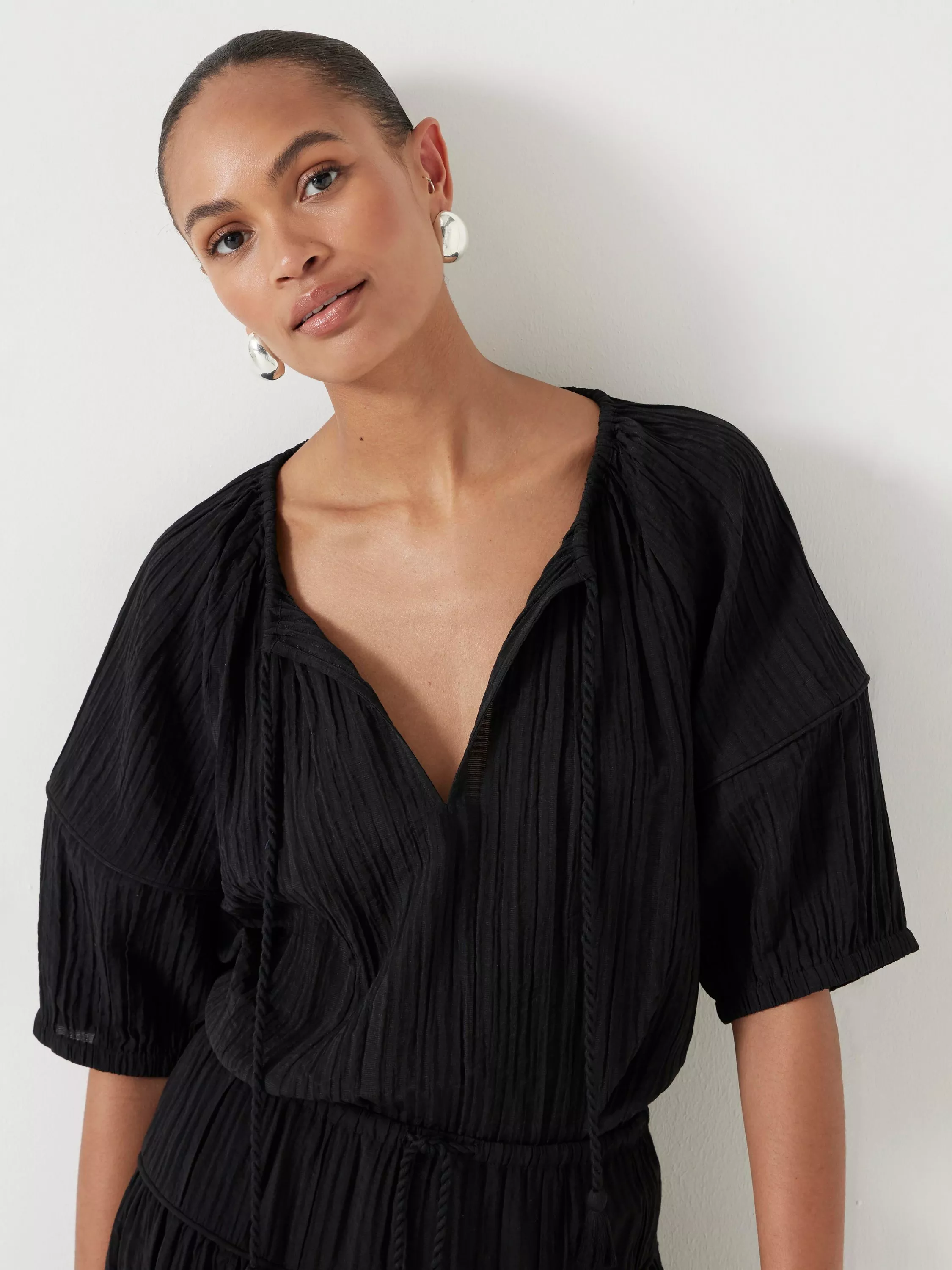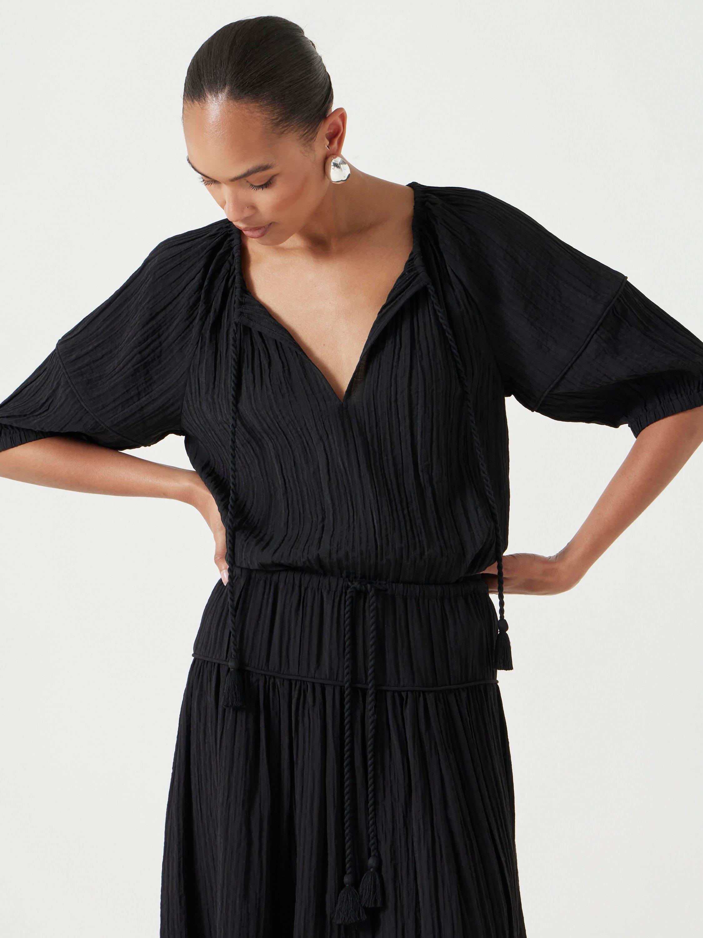 HUSHMae Crinkle Balloon Sleeve Blouse, Black, XXS
