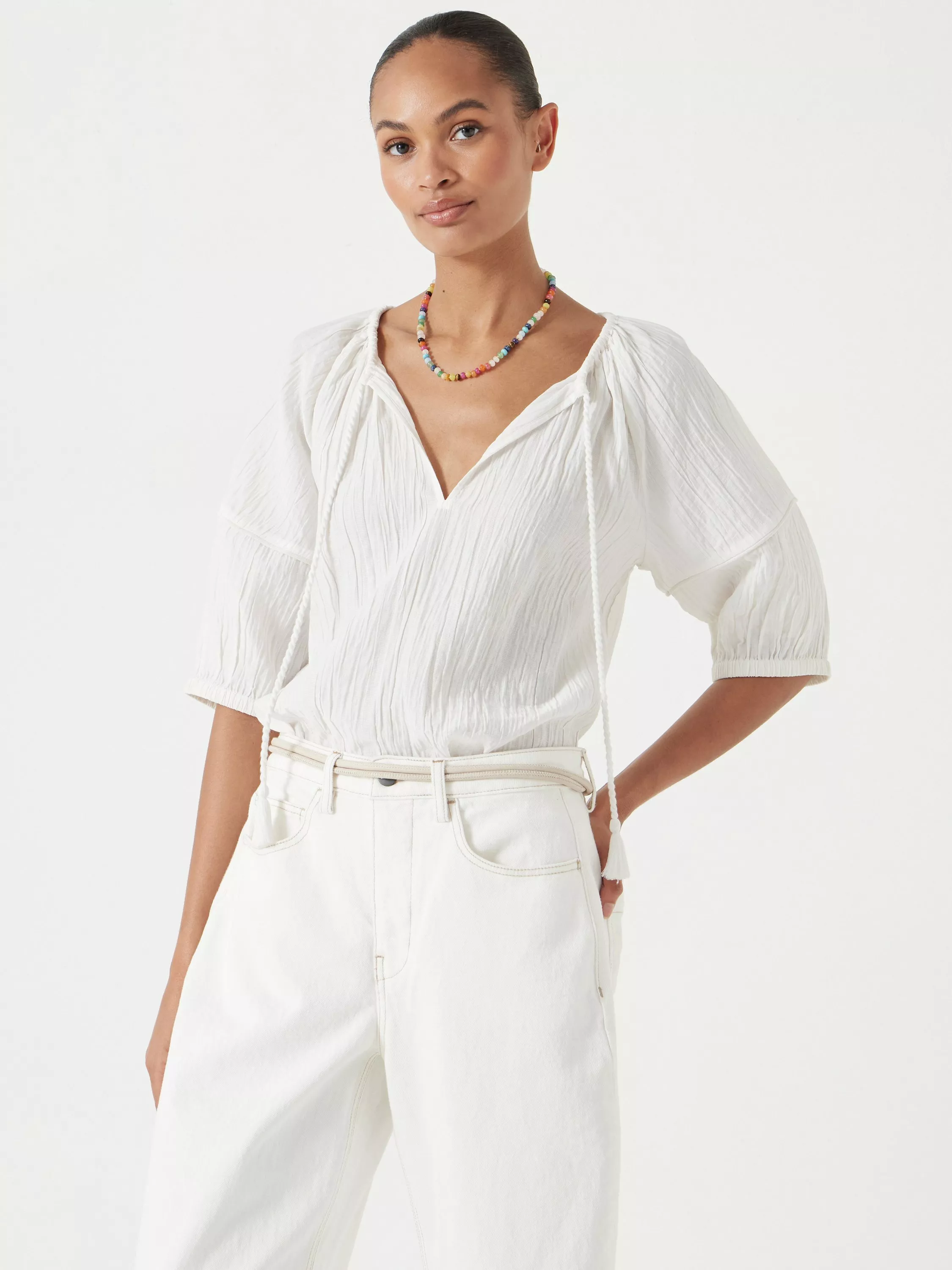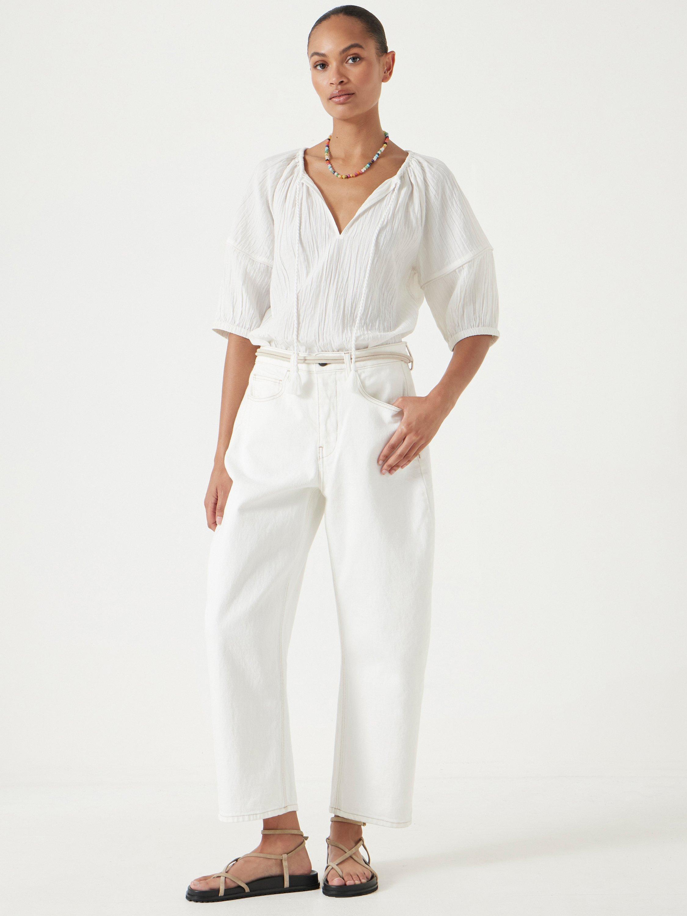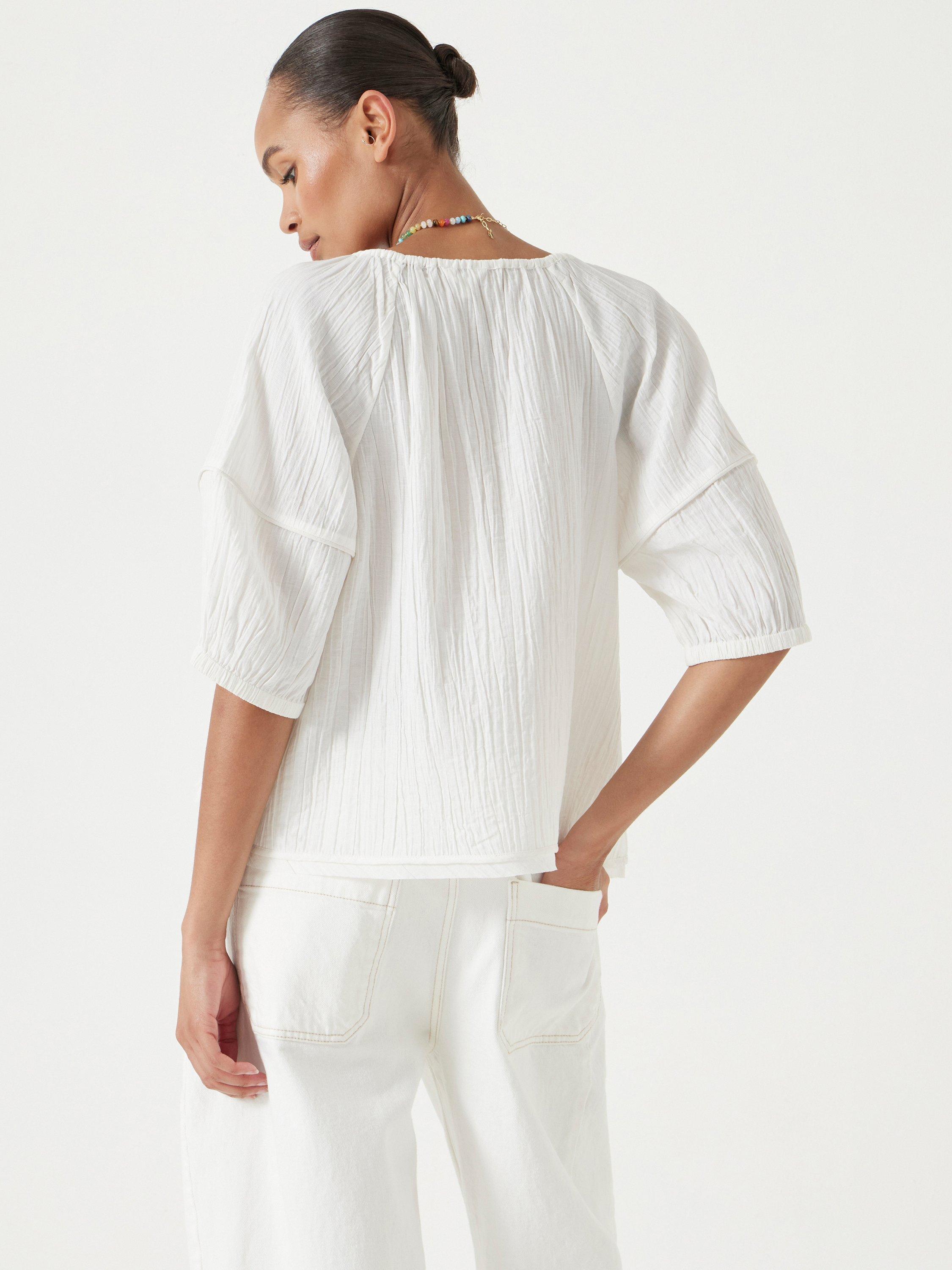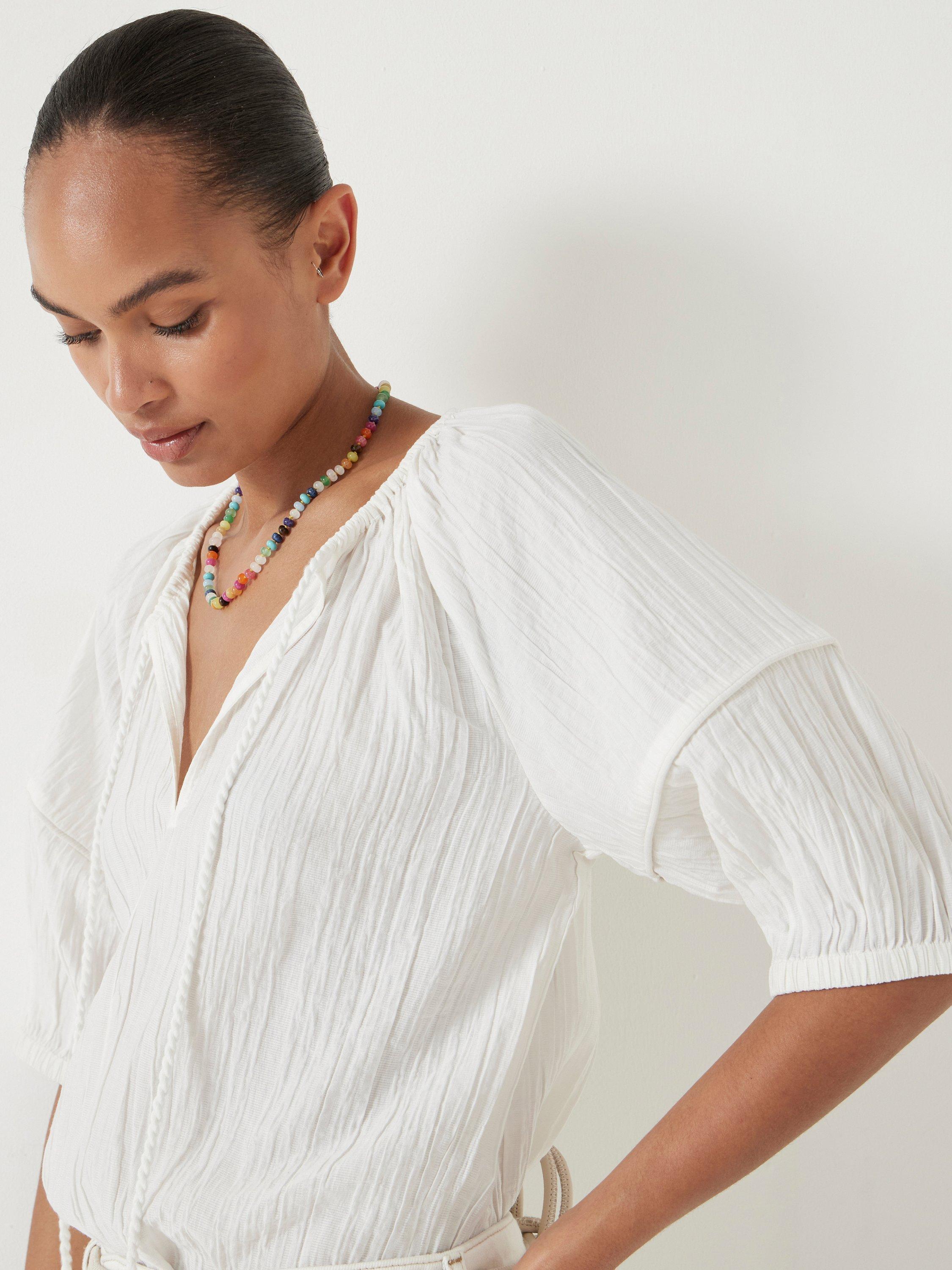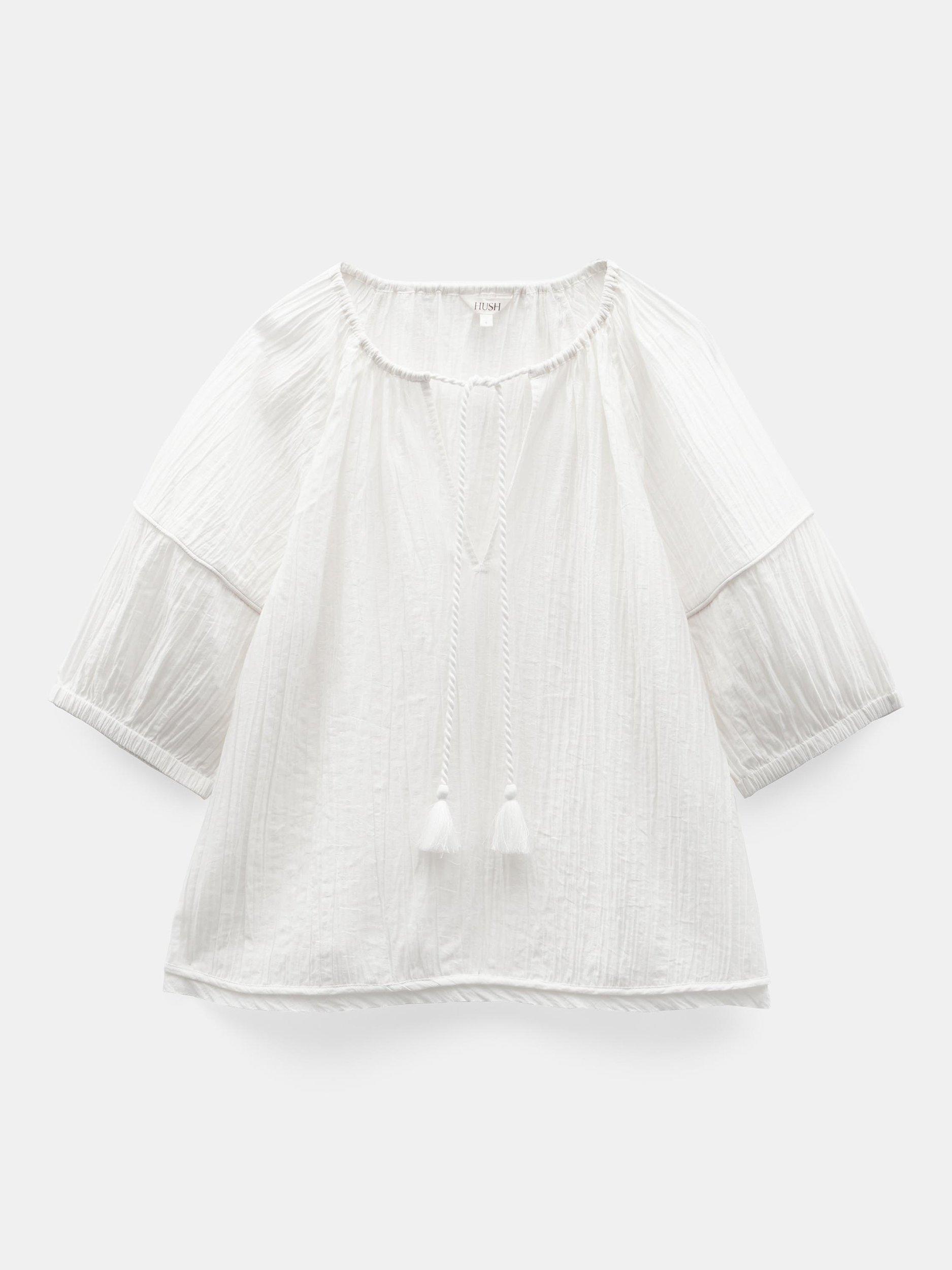 HUSHMae Crinkle Balloon Sleeve Blouse, Ecru White