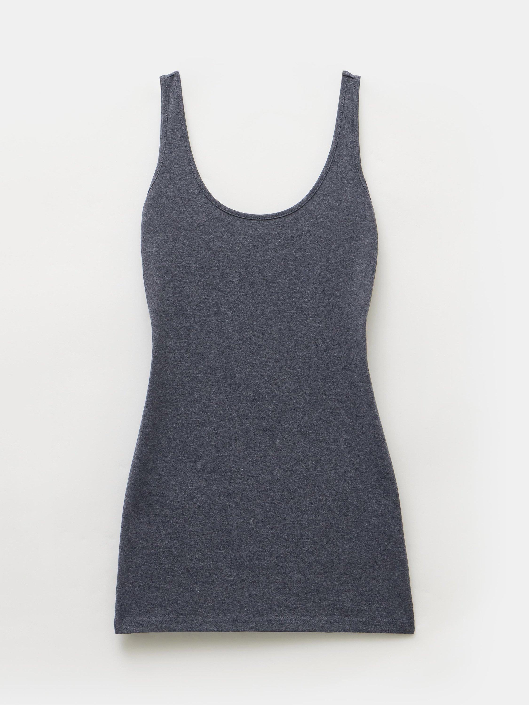 Framed with a softly rounded scoop neckline and a sleeveless design, it is made from a soft cotton blend and slips on well with tonal denim ready for the summer.