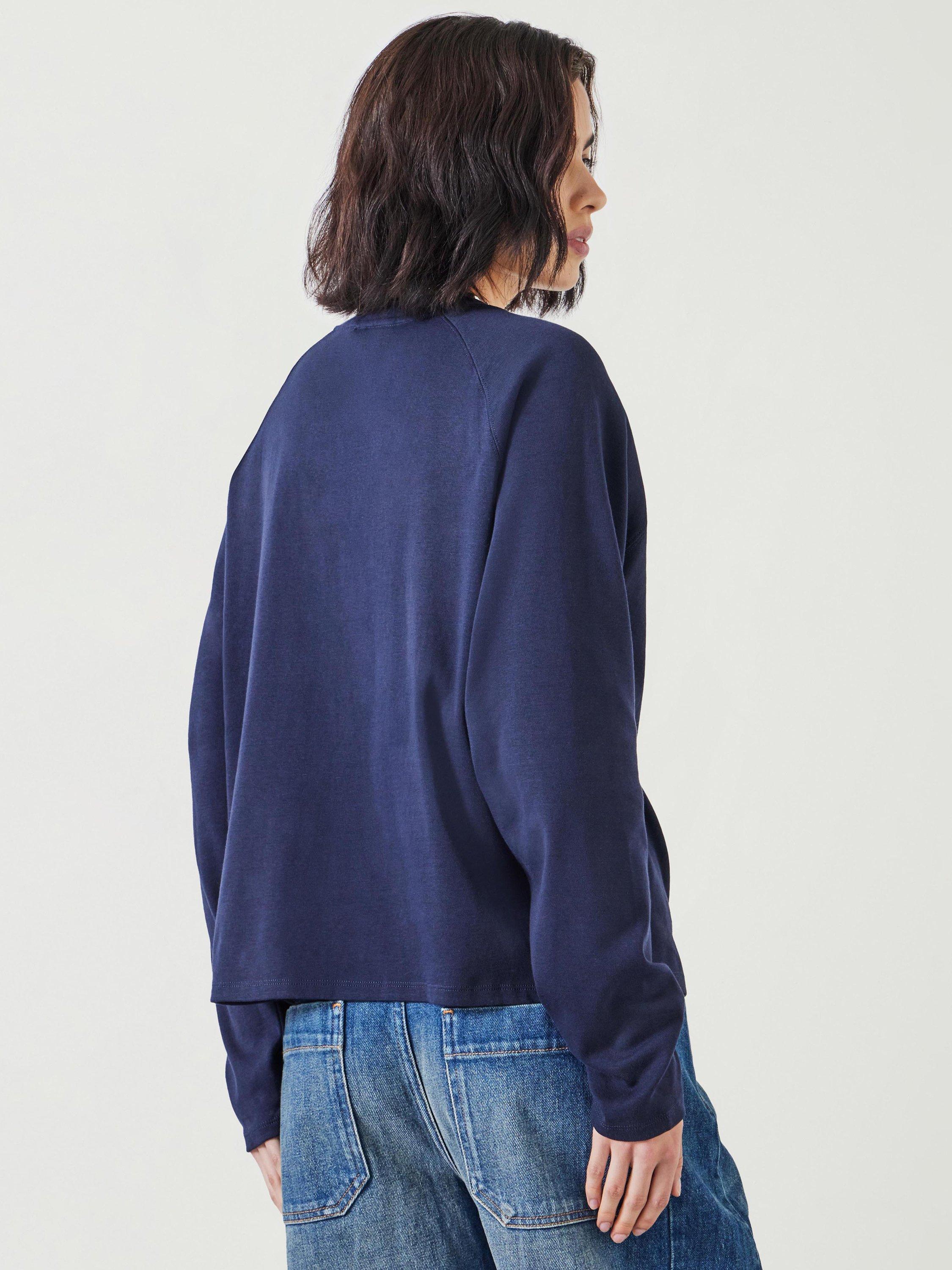 HUSH's Matilda top is one of those great styling basics everyone should have (at least one of) in their wardrobe. Pure cotton means it's soft and breathable, so we can wear it now with denim shorts as well as later in the season with wide-leg trousers. As always, HUSH have kept the shape pretty casual by opting for relaxed raglan sleeves.