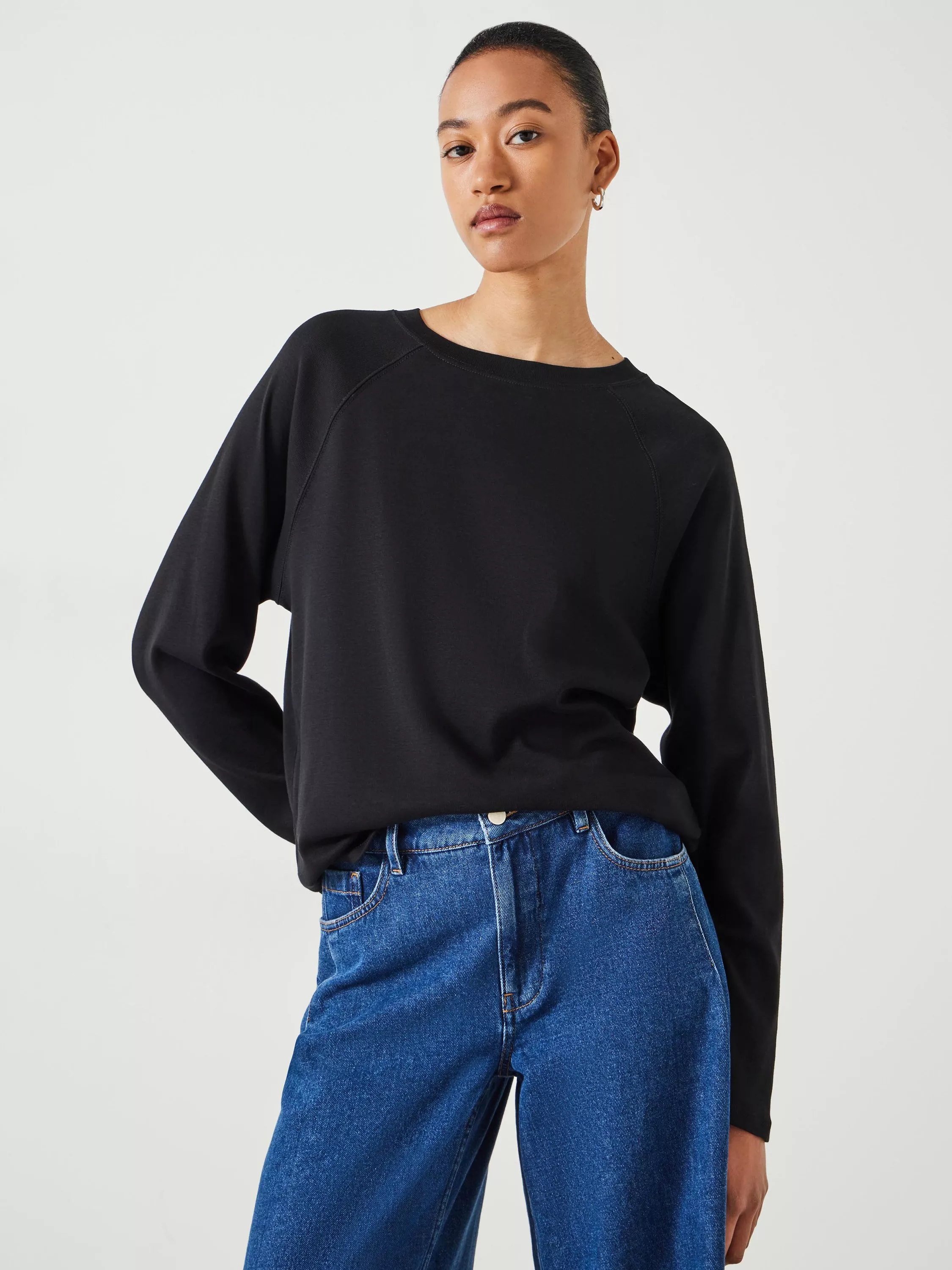 Designed with a classic crew neckline and long raglan sleeves, it is light and breathable in cotton and is an easy daytime option.