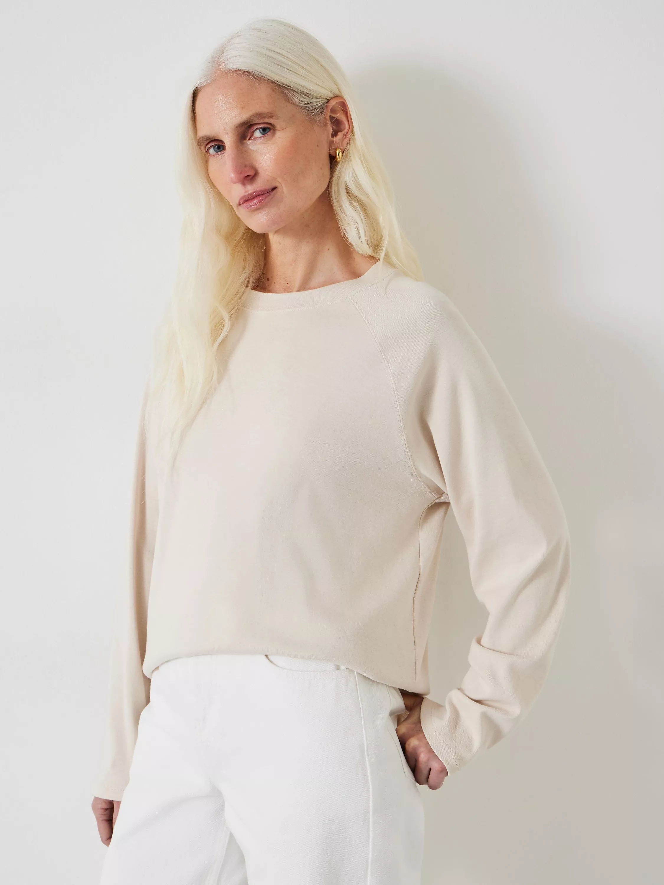 Designed with a classic crew neckline and long raglan sleeves, it is light and breathable in cotton and is an easy daytime option.