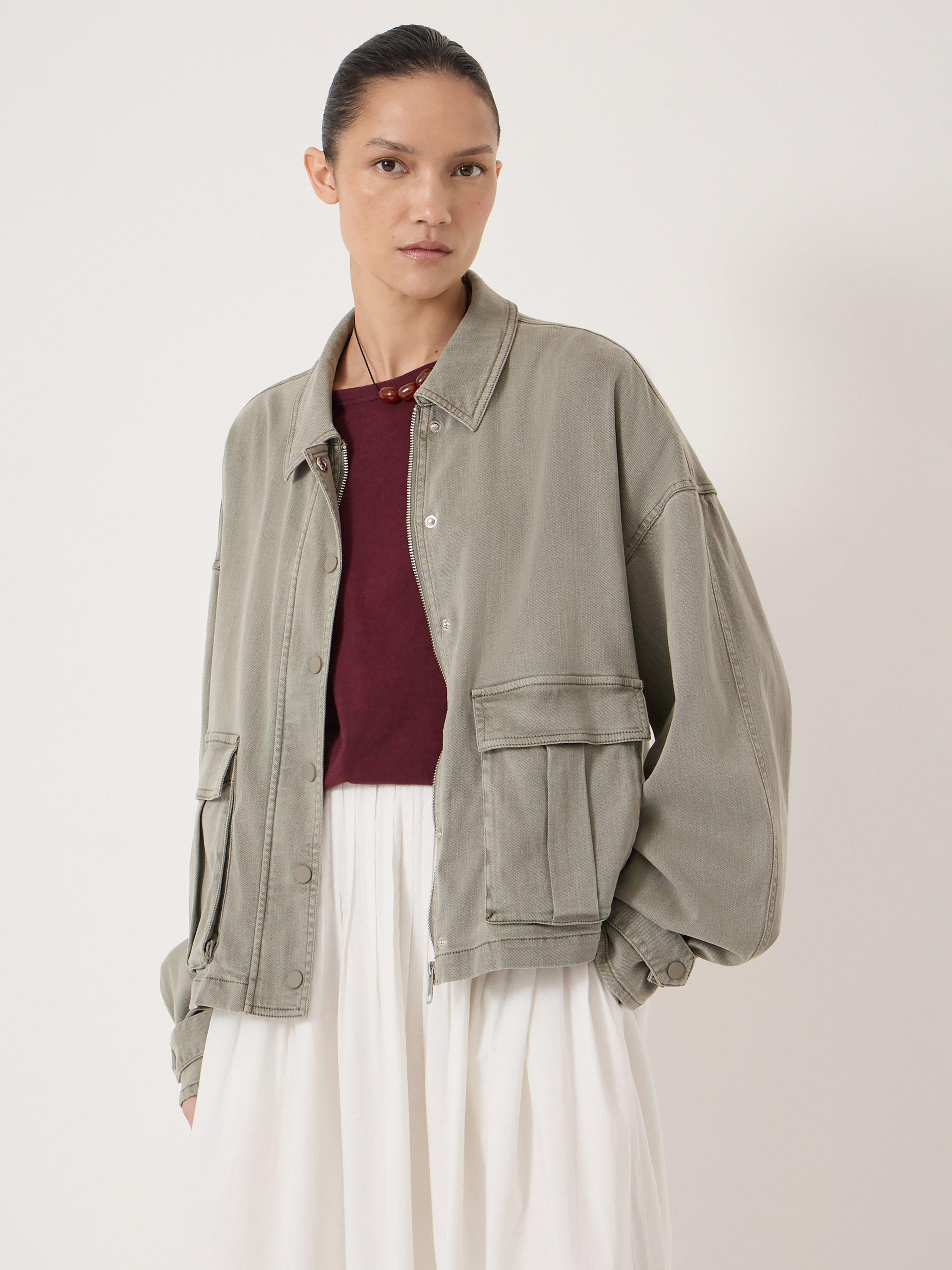 Celebrating attention to detail with its tell-tale front pockets, this utility jacket by HUSH sits at the hip for versatile coverage.