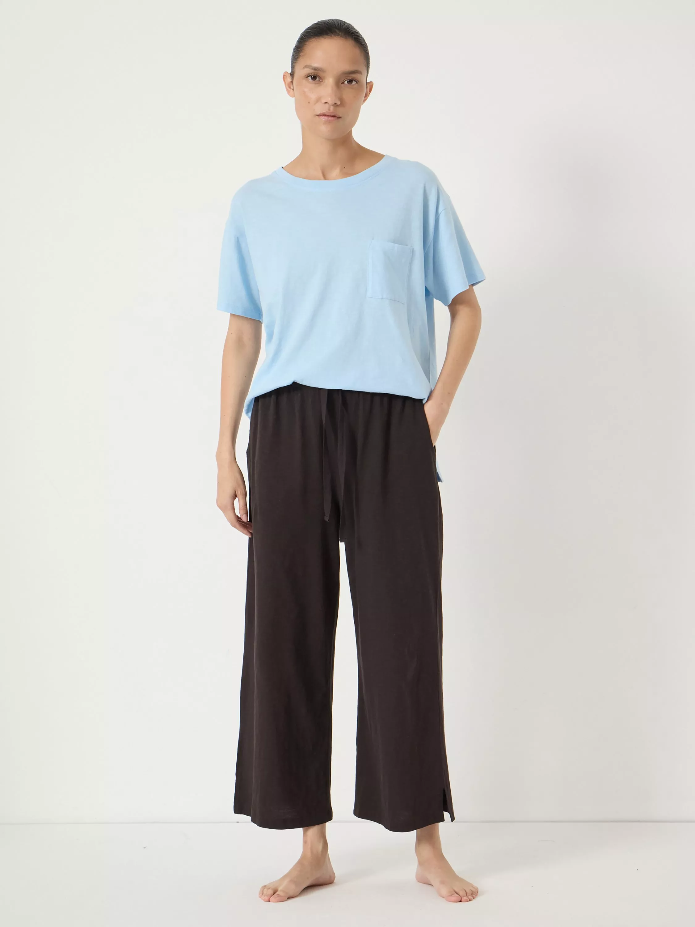 A HUSH T-shirt and joggers pyjama set. Designed to suit your pace, the ankle grazer fit, soft cotton, and round neck make relaxing feel natural.