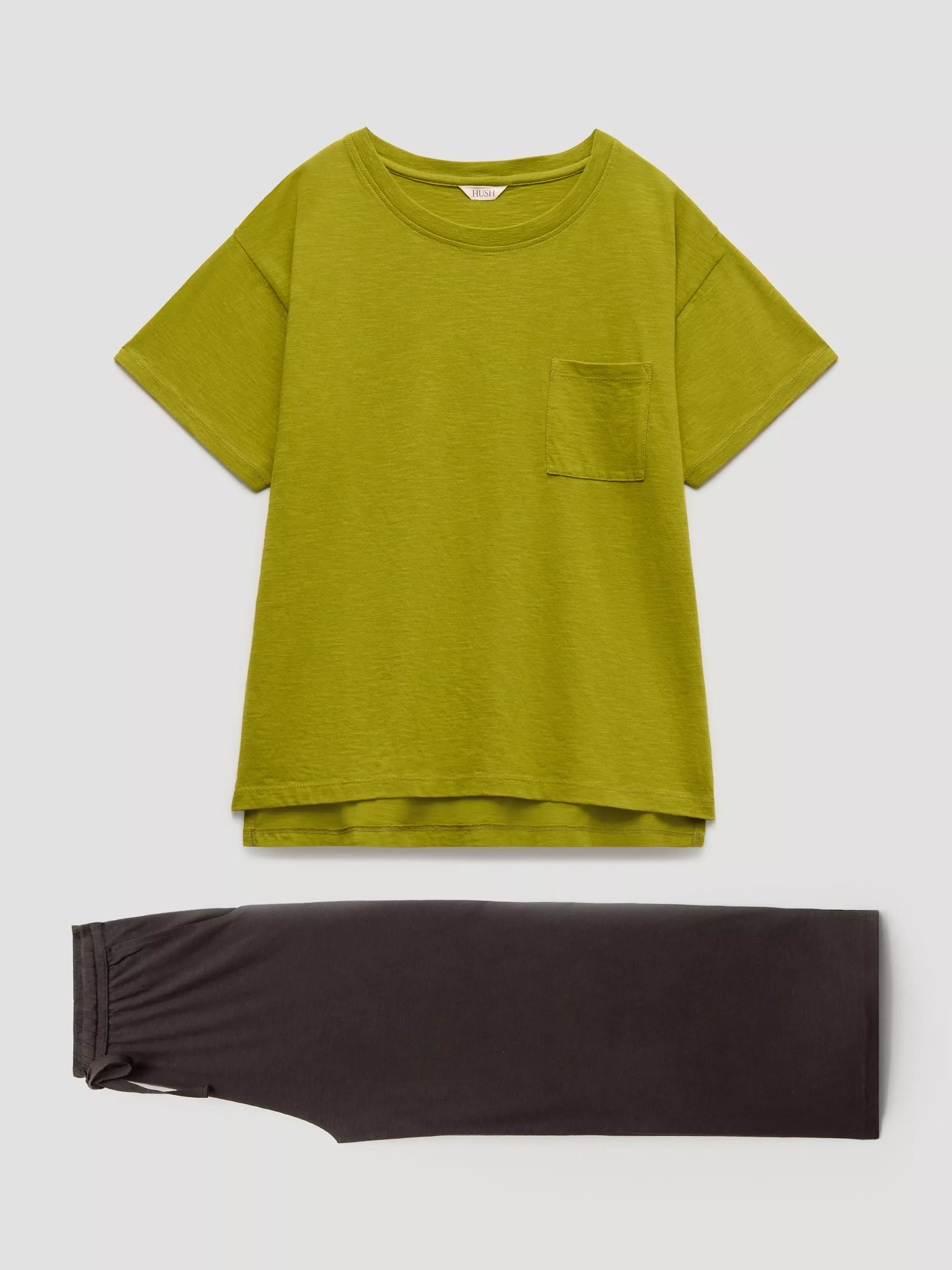 Simple, plain and perfect for lounging in, this HUSH pyjama set delivers effortless comfort and style. Made from pure cotton, it features a regular-fit round neck T-shirt with contrast wide-leg trousers. Keeping you at total ease all night long.