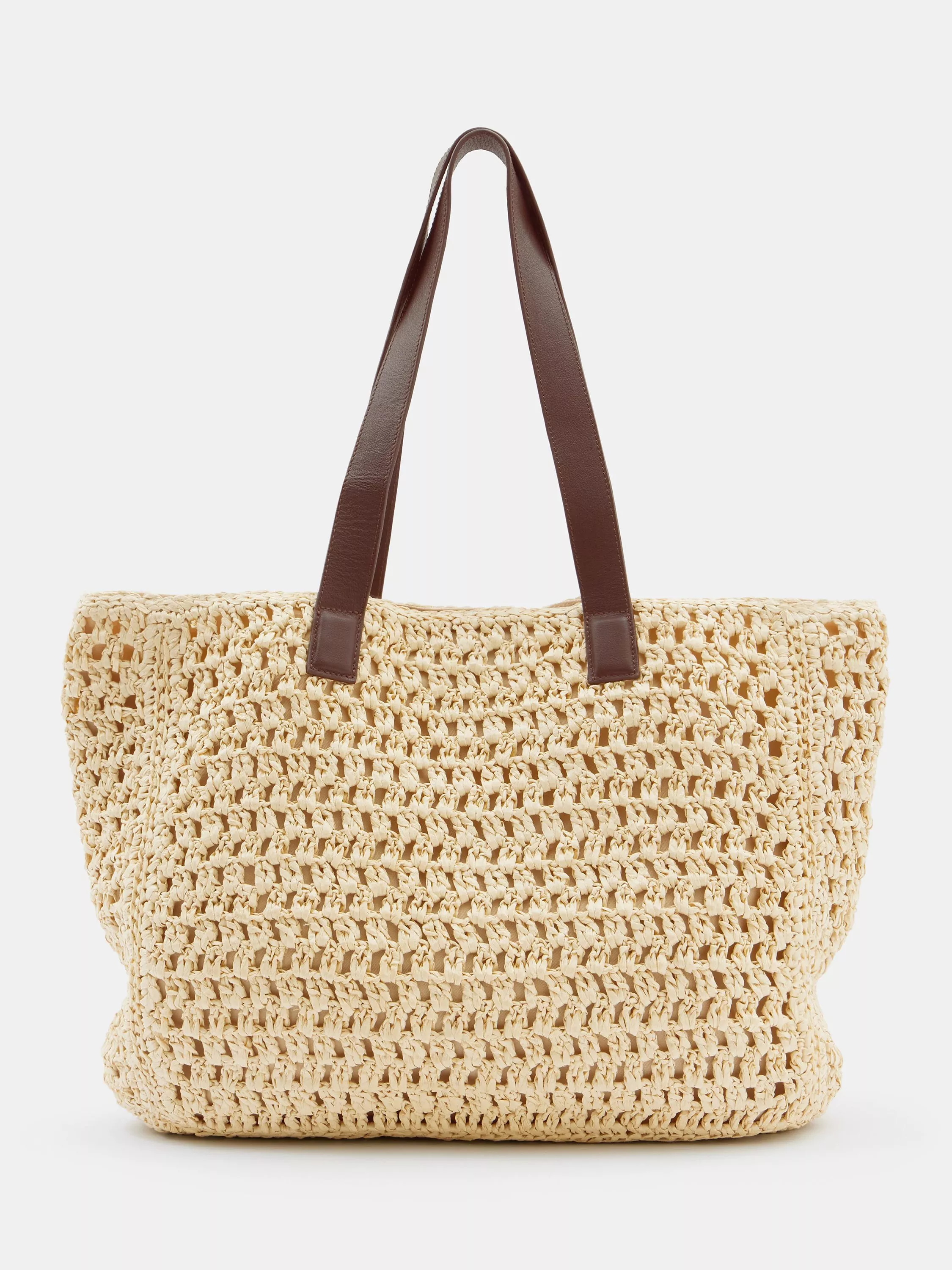 HUSHNatasha Straw Leather Tote Bag, Natural