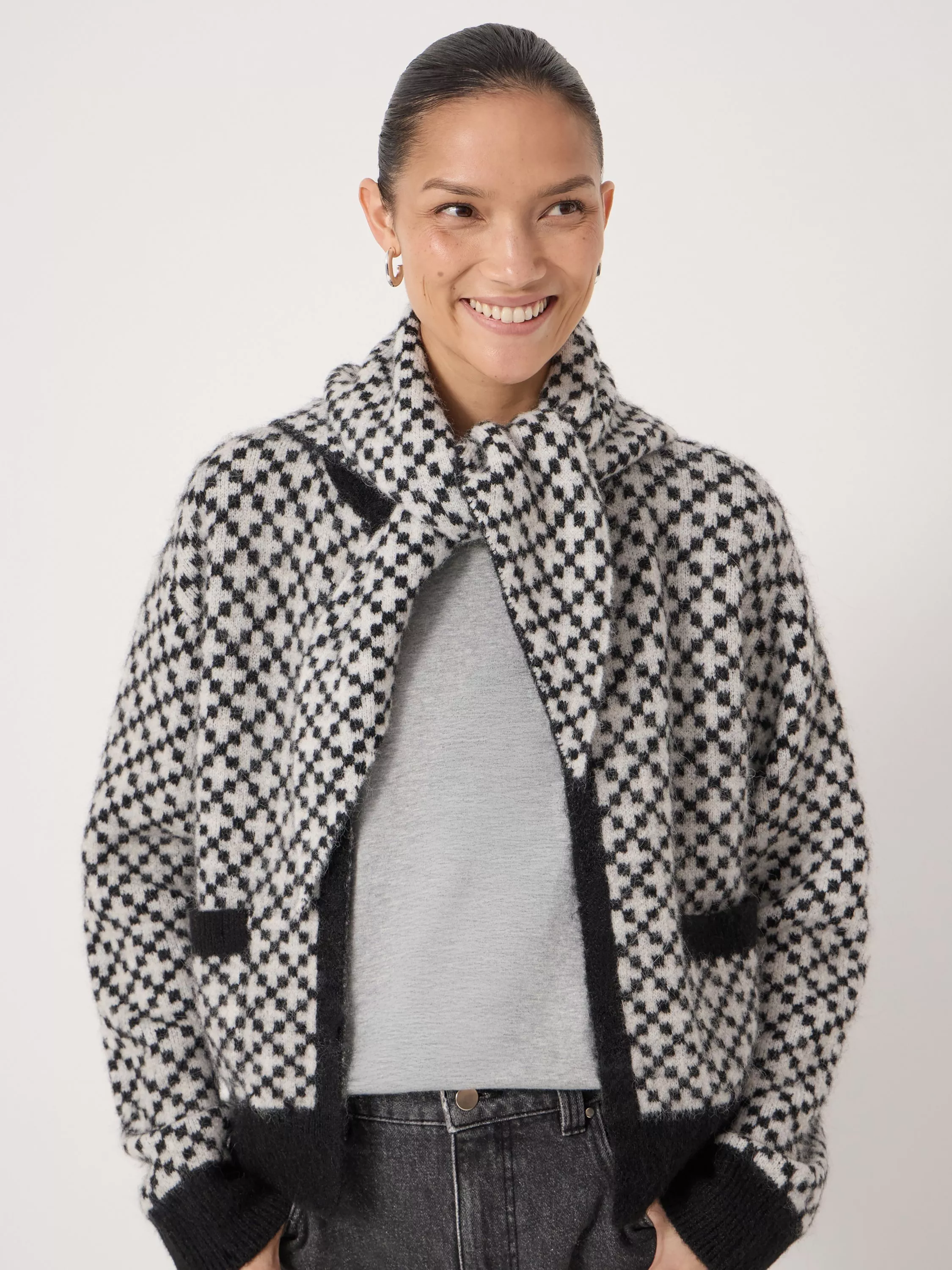 HUSHNordic Jacquard Triangle Scarf, Black