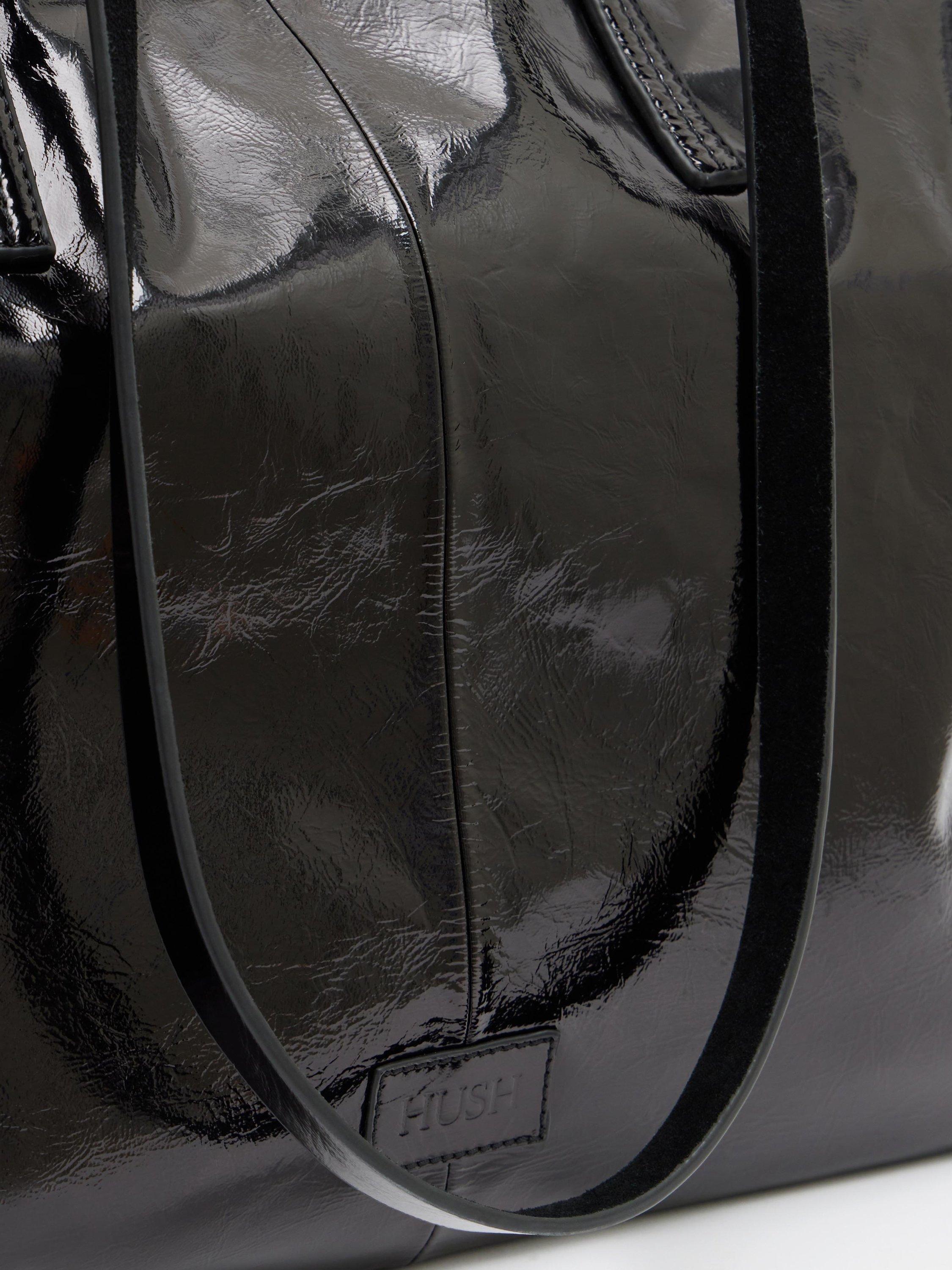 This shiny leather tote bag is giving us all the new-season feels. We love how the patent finish takes it into autumn-winter territory, and the twin straps are just the right length to fit comfortably over our shoulder. Our favourite way to style it? Clash textures - anything sheer, soft or fluffy really brings it to life.