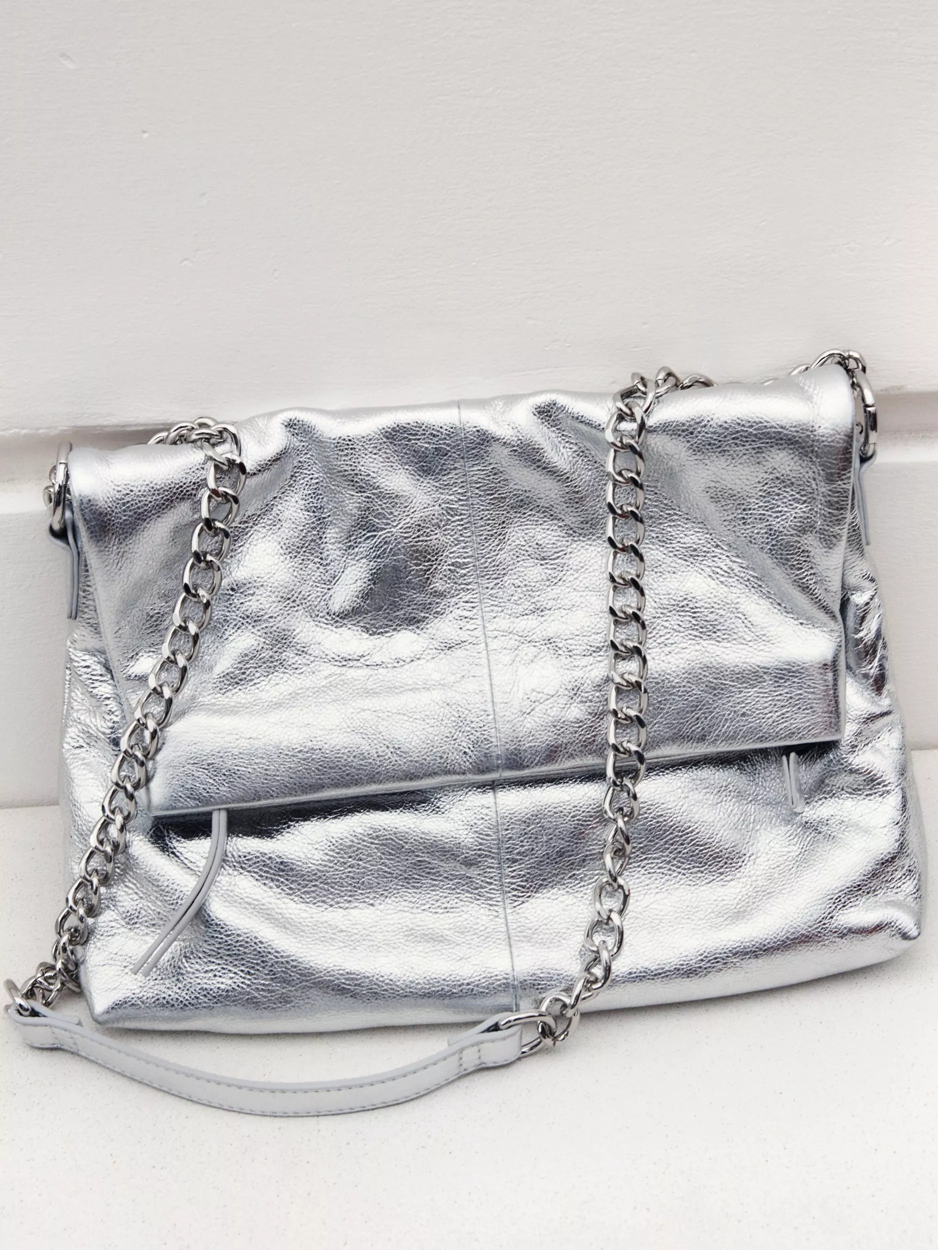 HUSHPerrie Chain Leather Crossbody Bag, Silver